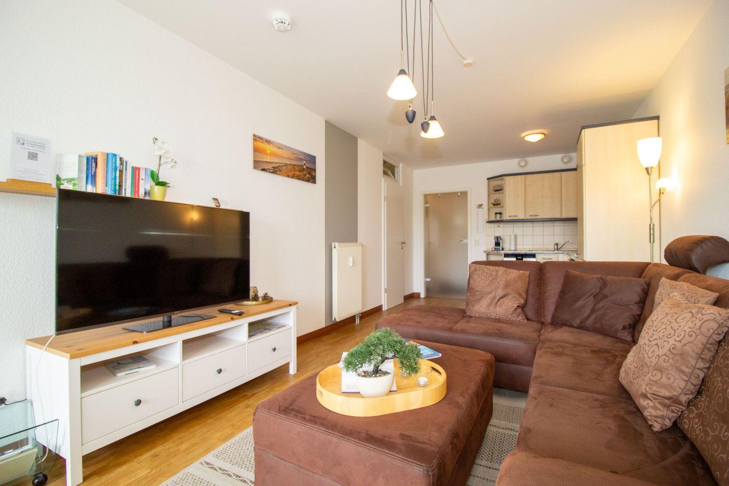 Die Ferienwohnung punktet mit einem unschlagbaren Wellnessangebot. In der Kurpark-Residenz können unsere Urlaubsgäste kostenlos das hauseigene Schwimmbad und die Sauna nutzen. Für Fragen stehen unsere Mitarbeiter täglich an der Rezeption des Hauses zur Verfügung. In den Sommermonaten 2026 gehört außerdem ein eigener Strandkorb zu dieser Ferienwohnung. Ein Parkplatz in der Tiefgarage ist ebenfalls im Preis enthalten.
