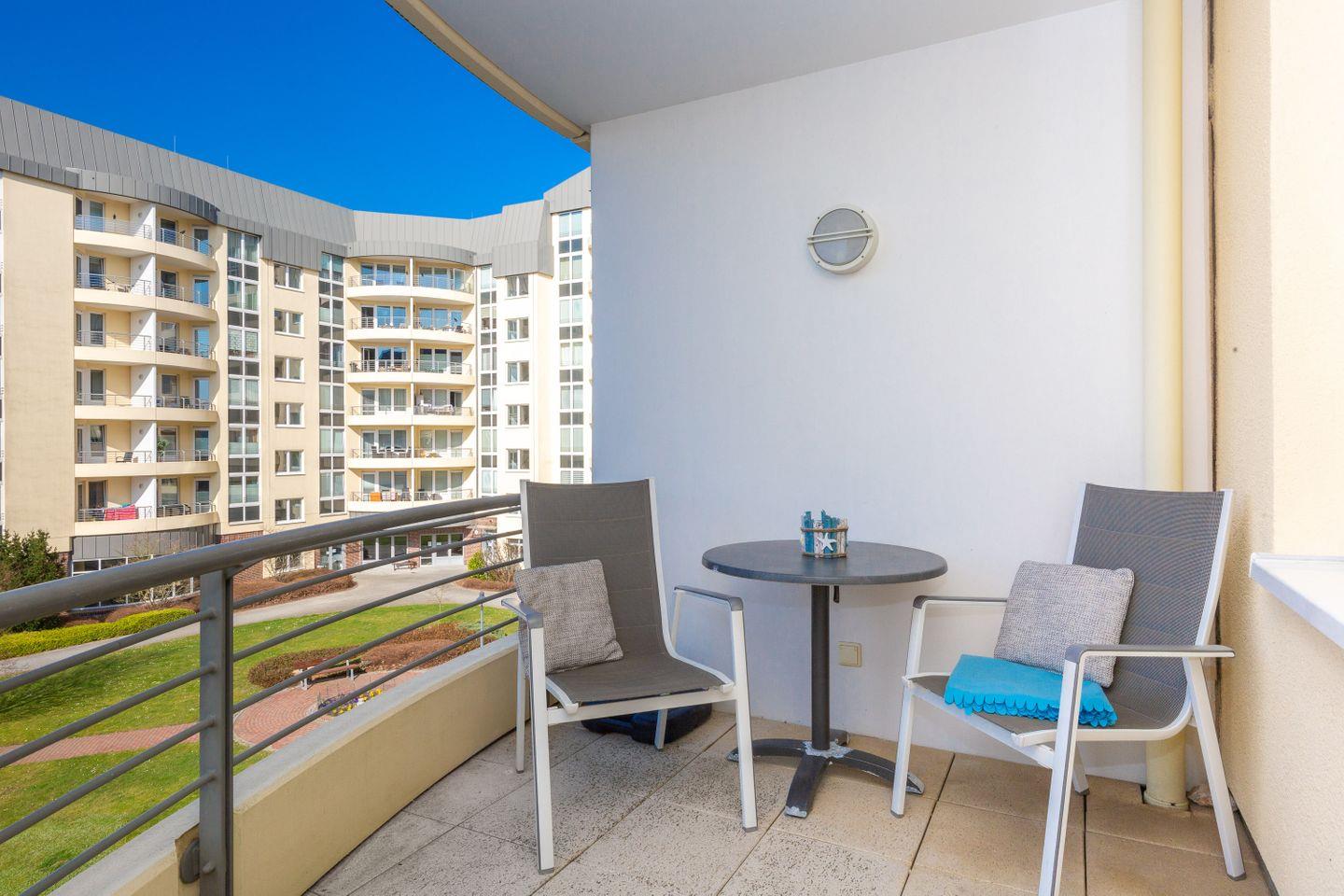 Aufstehen, rausgehen, Meeresluft genießen – kein Problem in dieser Ferienwohnung. Die windgeschützte Loggia lädt jederzeit ein, die frische Nordseeluft in aller Ruhe zu genießen.