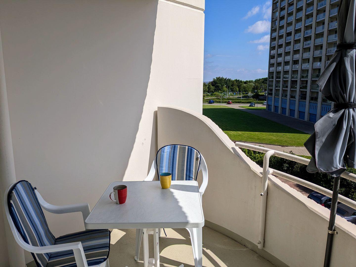 Auf dem Balkon der Ferienwohnung können Sie es sich jederzeit auf den Balkonmöbeln gemütlich machen, die frische Meeresluft einatmen und den Ausblick genießen.