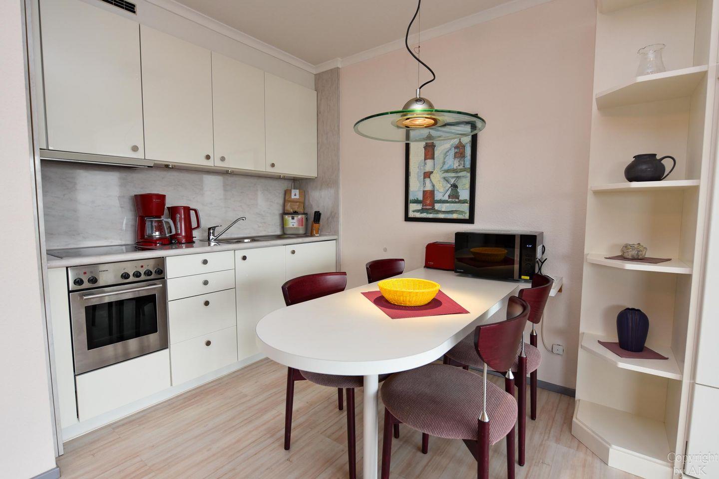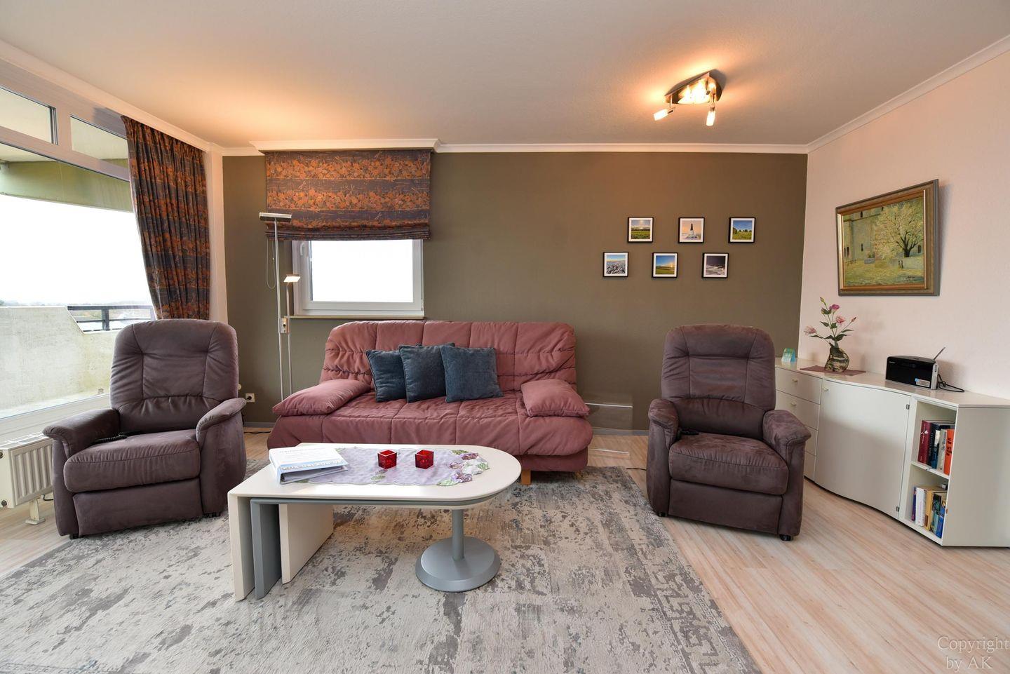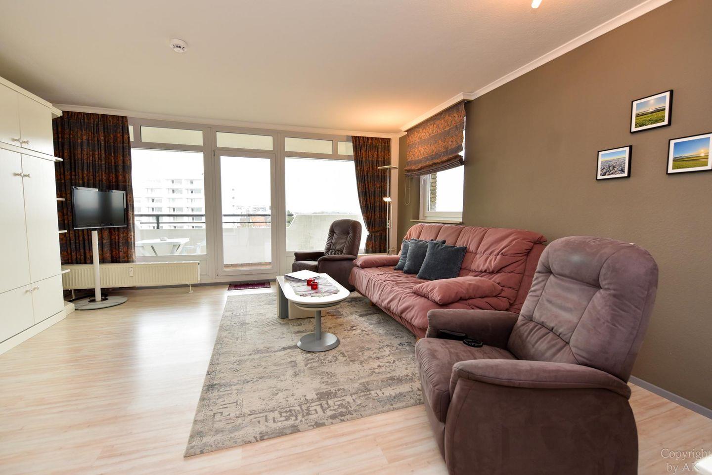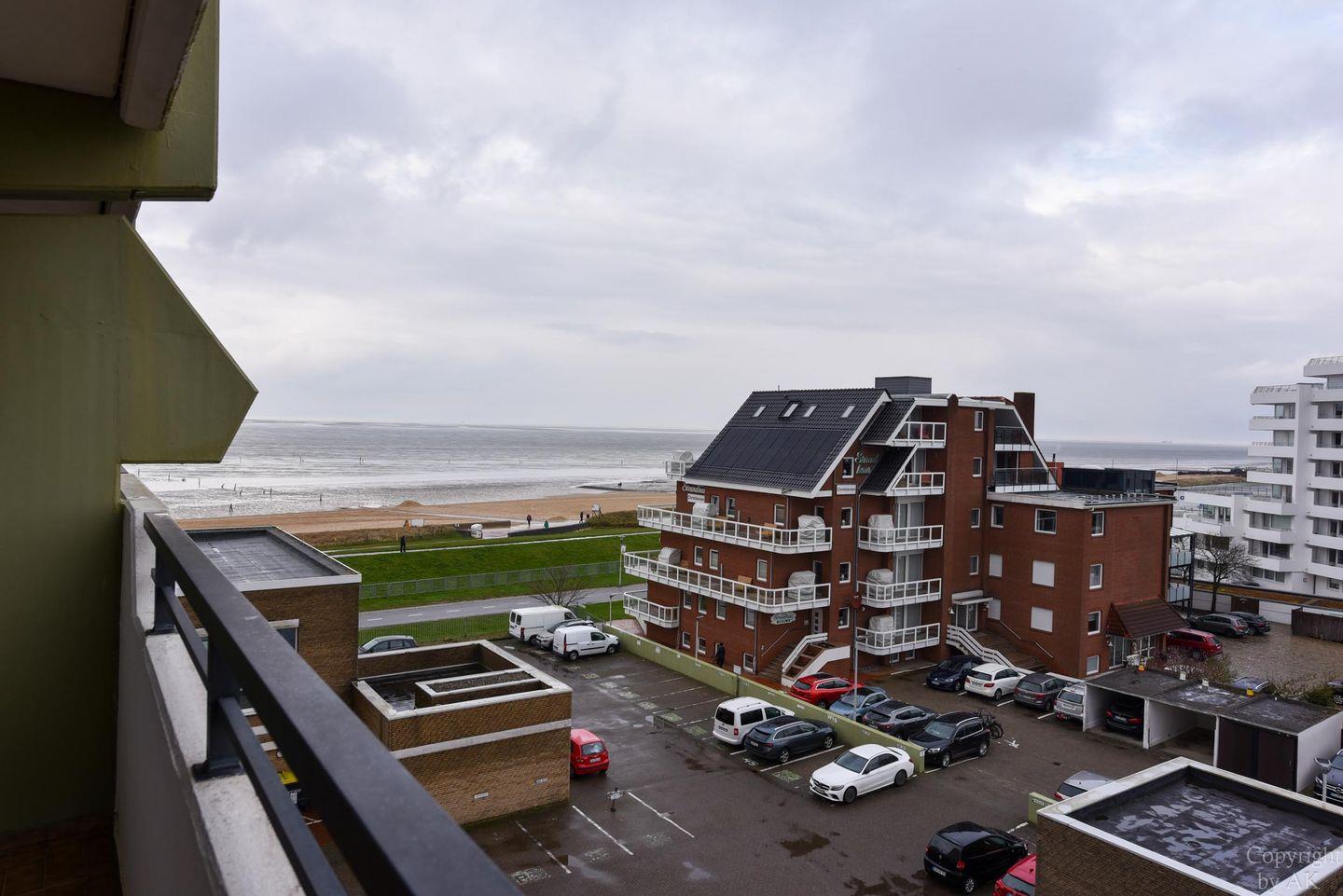 Die Eckwohnung Nr. 69 im Haus Panorama befindet sich in der 4. Etage und bietet einen Seeblick auf den Weltschifffahrtsweg. Vom Balkon aus können Gäste die vorbeiziehenden Schiffe beobachten und die maritime Atmosphäre genießen.