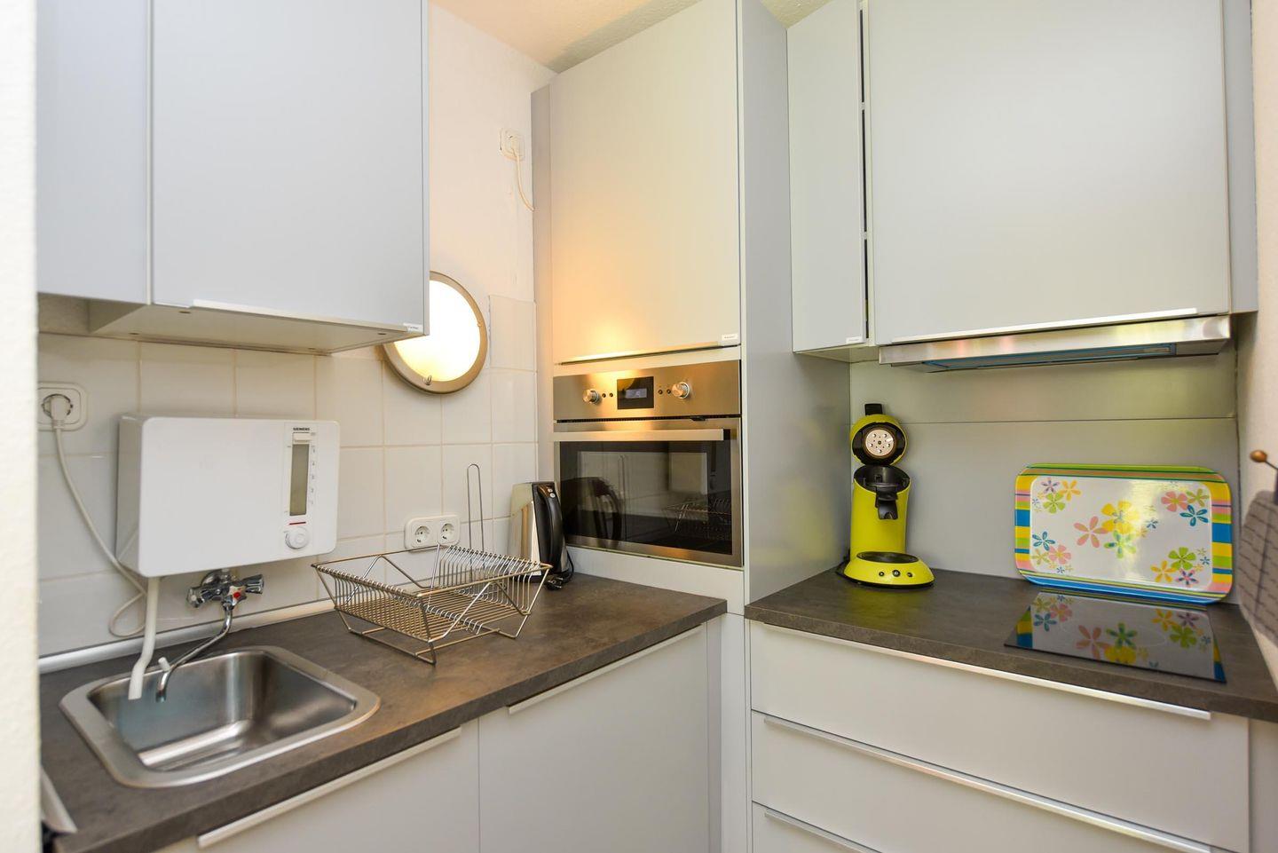 In der Wohnung stehen Ihnen Annehmlichkeiten wie ein Kühlschrank, eine Mikrowelle und SAT-TV zur Verfügung. Zudem genießen Sie kostenloses WLAN, um auch im Urlaub mit Ihren Liebsten in Kontakt zu bleiben. Ihr Fahrzeug können Sie bequem auf dem nummerierten Pkw-Stellplatz in der Tiefgarage parken (Einfahrtshöhe 185cm).
