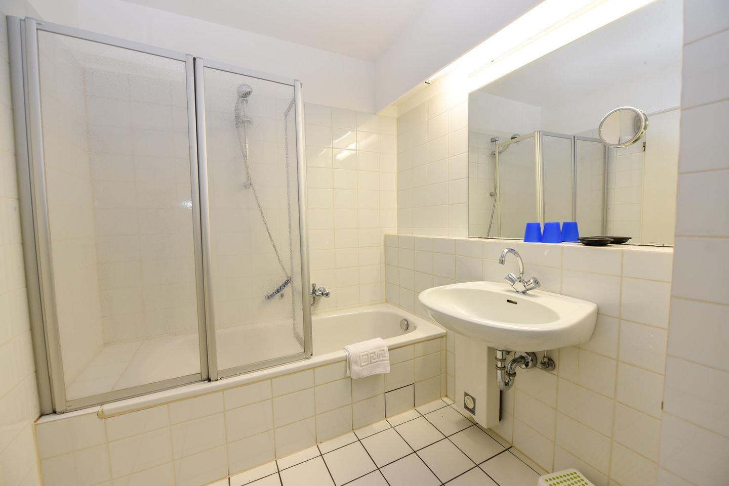 Die Wohnung bietet alles, was Sie für einen angenehmen Aufenthalt benötigen. Sie verfügt über ein komfortables Schlafzimmer mit zwei Einzelbetten (105cm hoch!) sowie ein gemütliches Wohnzimmer mit einem praktischen Schlafsofa. Die Küchenzeile ist bestens ausgestattet und das moderne Badezimmer ist mit einer Dusche und einem WC versehen.