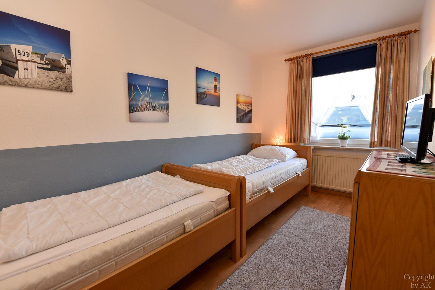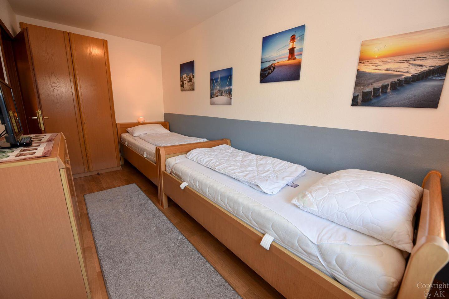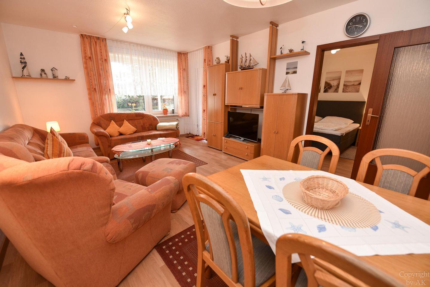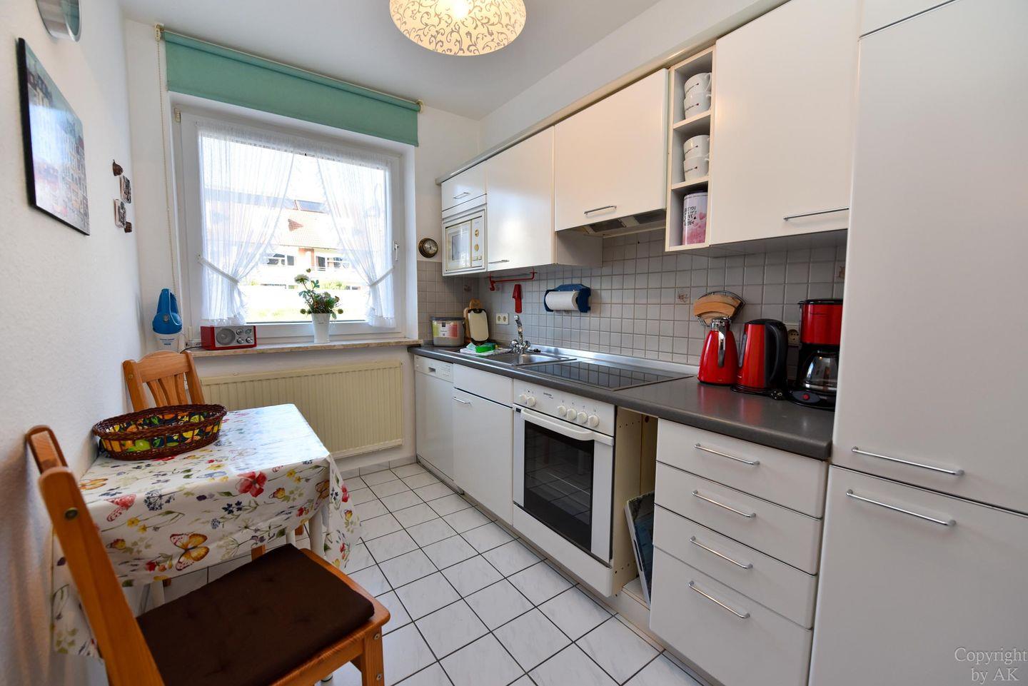 Das neu Renovierte und Modernisierte Schlafzimmer verfügt über ein Boxspringbett sowie einem geräumigen Kleiderschrank. Der 2 Schlafbereich bietet mit zwei Einzelbetten für 2 weitere Personen eine Schlafmöglichkeit. Die Küche mit dem kleinen Essplatz ist gut ausgestattet und bieten Ihnen die Möglichkeit den Kaffee oder das Abendessen getrennt vom Wohnbereich zu bereiten. Der Wohn- und Essbereich mit Zugang zur Süd/West Terrasse mit angrenzendem Garten ist komfortabel eingerichtet und bietet viele Sitzmöglichkeiten.