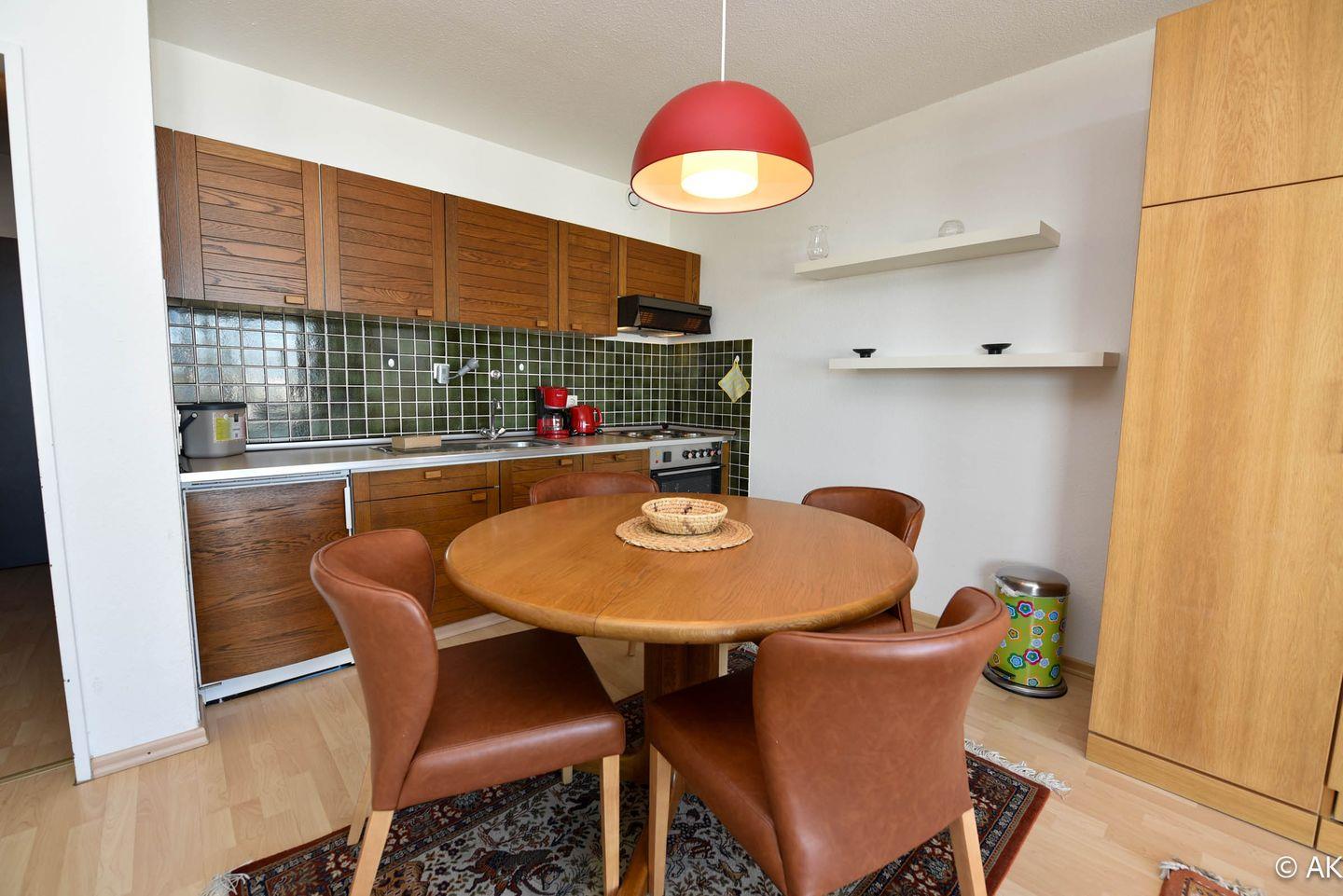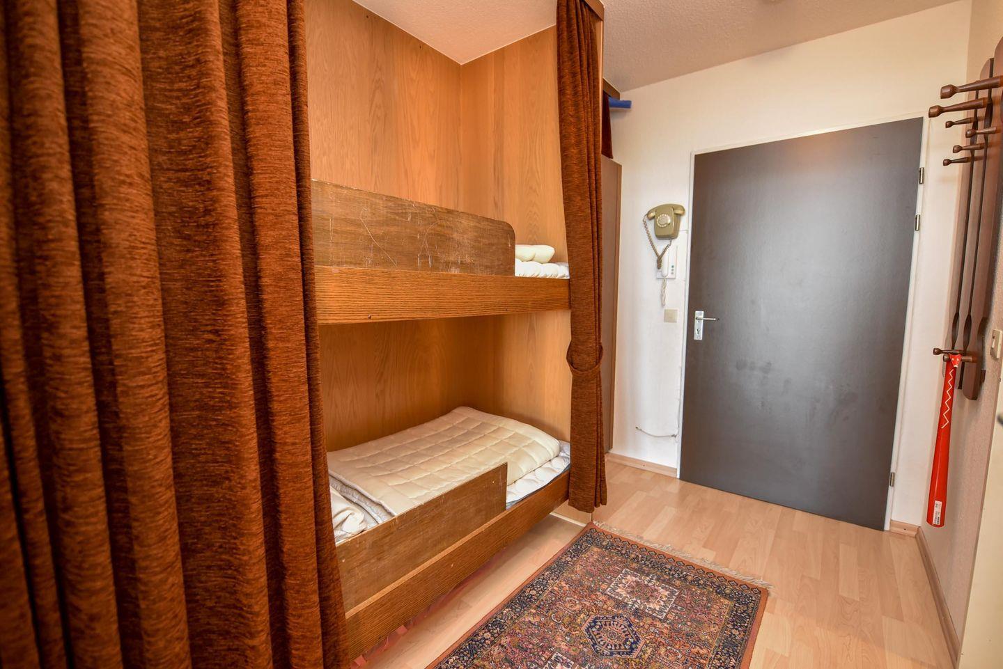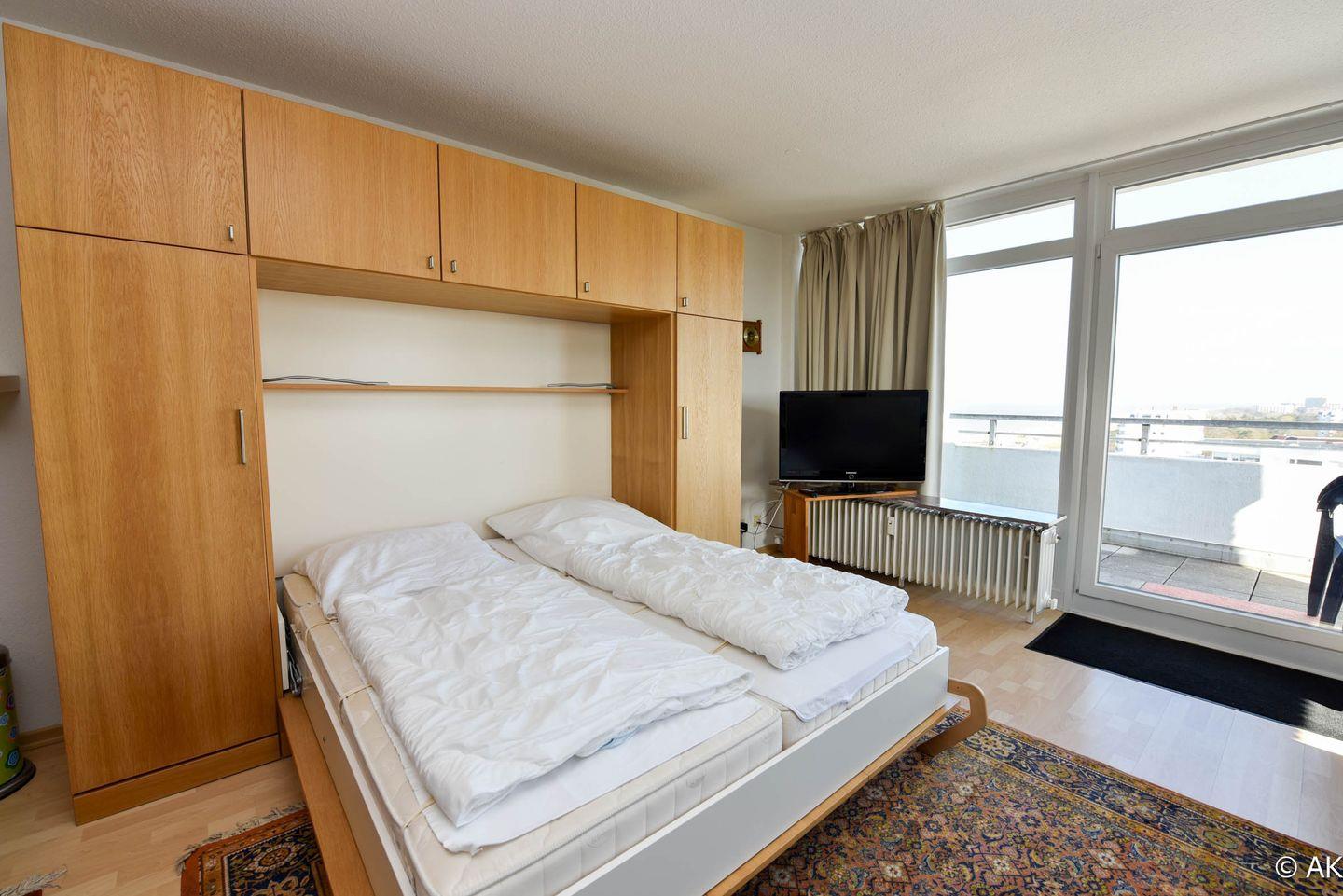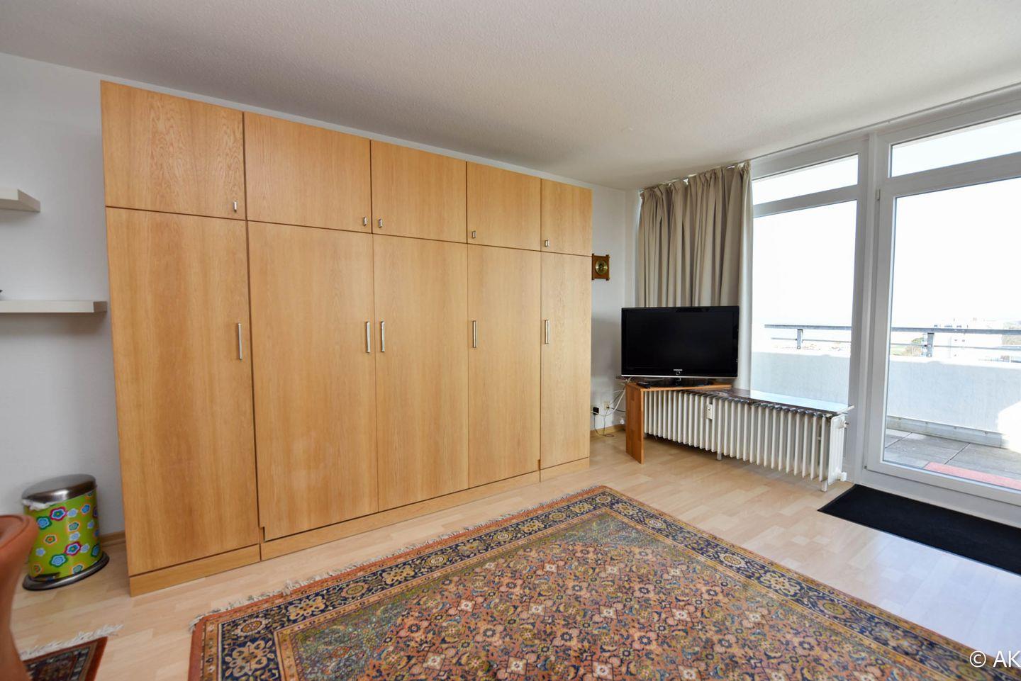 Die gut durchdachte Wohnung besteht aus einem kombinierten Wohn- und Schlafraum, der mit zwei praktischen Schrankbetten ausgestattet ist. Die integrierte Küchenzeile bietet einen Kühlschrank, eine Kaffeemaschine, einen Wasserkocher, einen Toaster und einen Elektroherd. Für Ihre Unterhaltung stehen ein Flachbildfernseher und ein Radio zur Verfügung. Das Badezimmer ist mit einer Dusche und einem WC ausgestattet. Zudem verfügt die Wohnung über einen Balkon, der zum Verweilen einlädt. Ein Tiefgaragenstellplatz für Ihr Auto ist ebenfalls im Angebot enthalten.