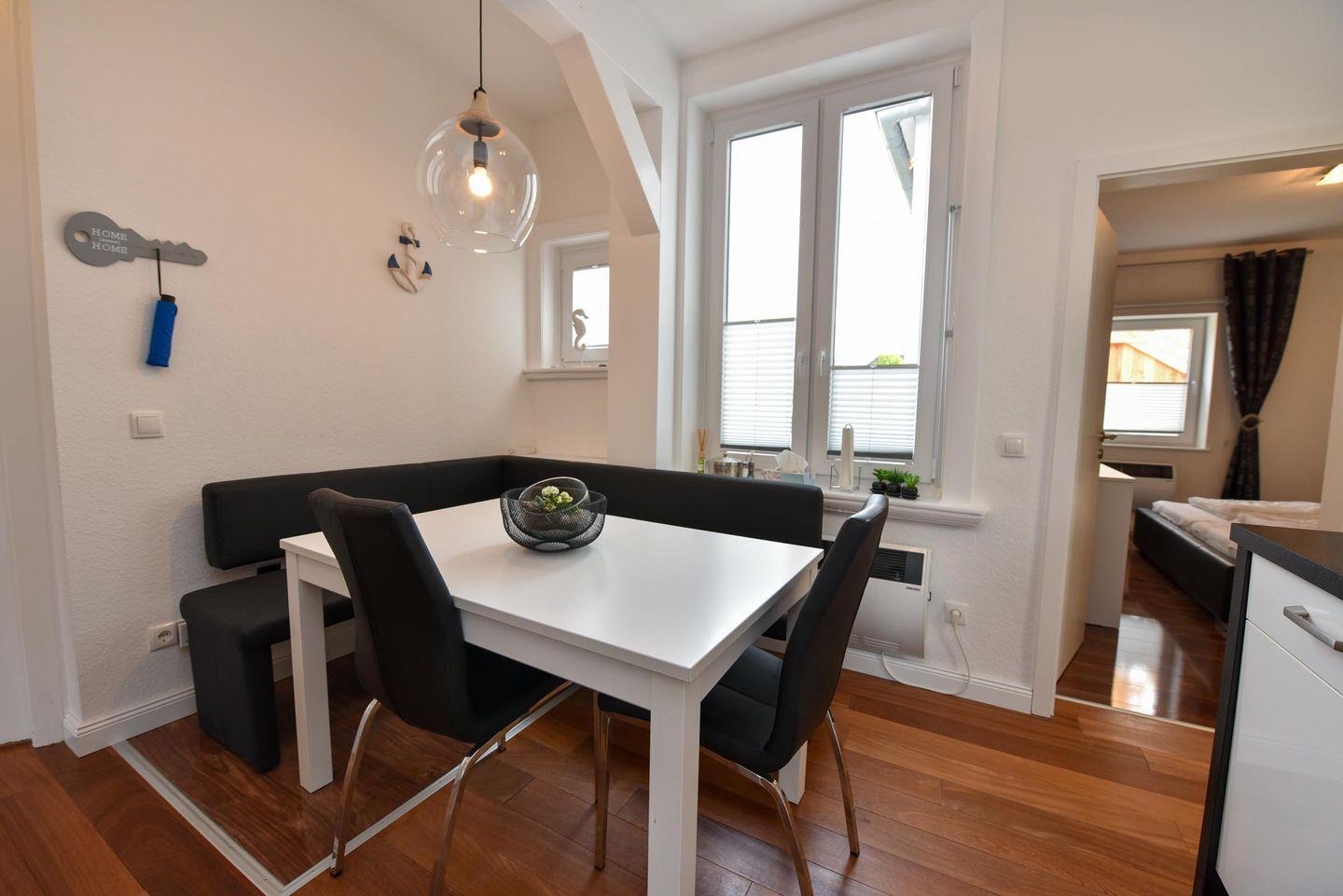 Die Wohnung Brise 1 im Erdgeschoß ist eine Wohnung für vier Personen, mit einem Wohnzimmer, zwei Schlafzimmern mit je zwei Schlafplätzen, einem Badezimmer, sowie einem Koch- und Essbereich. Zur Ausstattung der Küche zählen unter anderem Herd, Backofen, Microwelle, Kühl- und Gerfrierkombination, Geschirrspüler, Kaffeemaschine, Wasserkocher uvm.