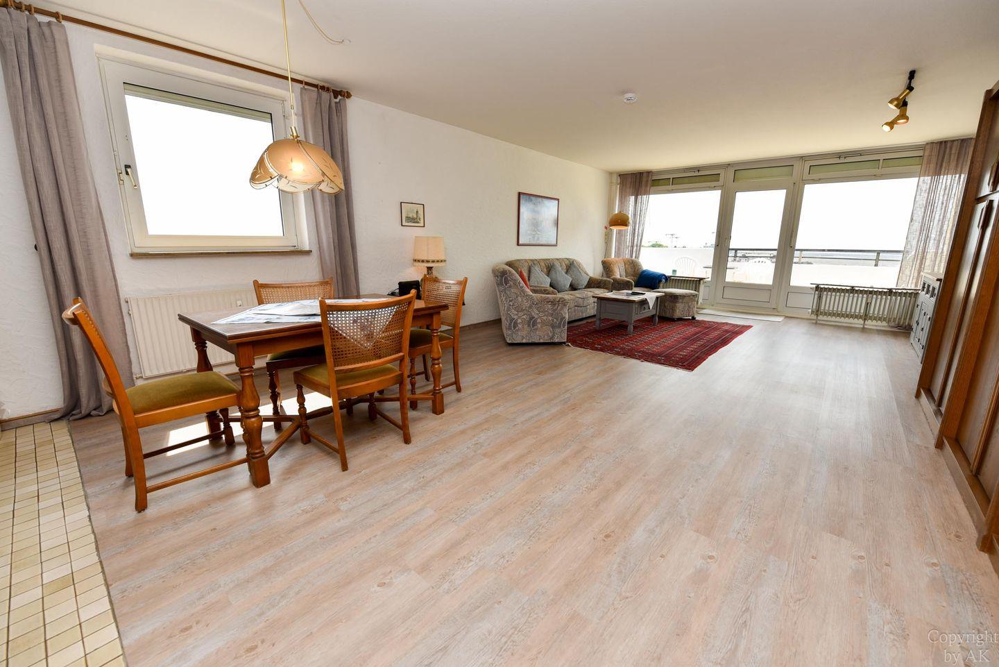 Die Eckwohnung Nr. 105 im Haus Panorama liegt in der 8. Etage und bietet einen malerischen Seeblick in Richtung der Insel Neuwerk und den Sonnenuntergang.
