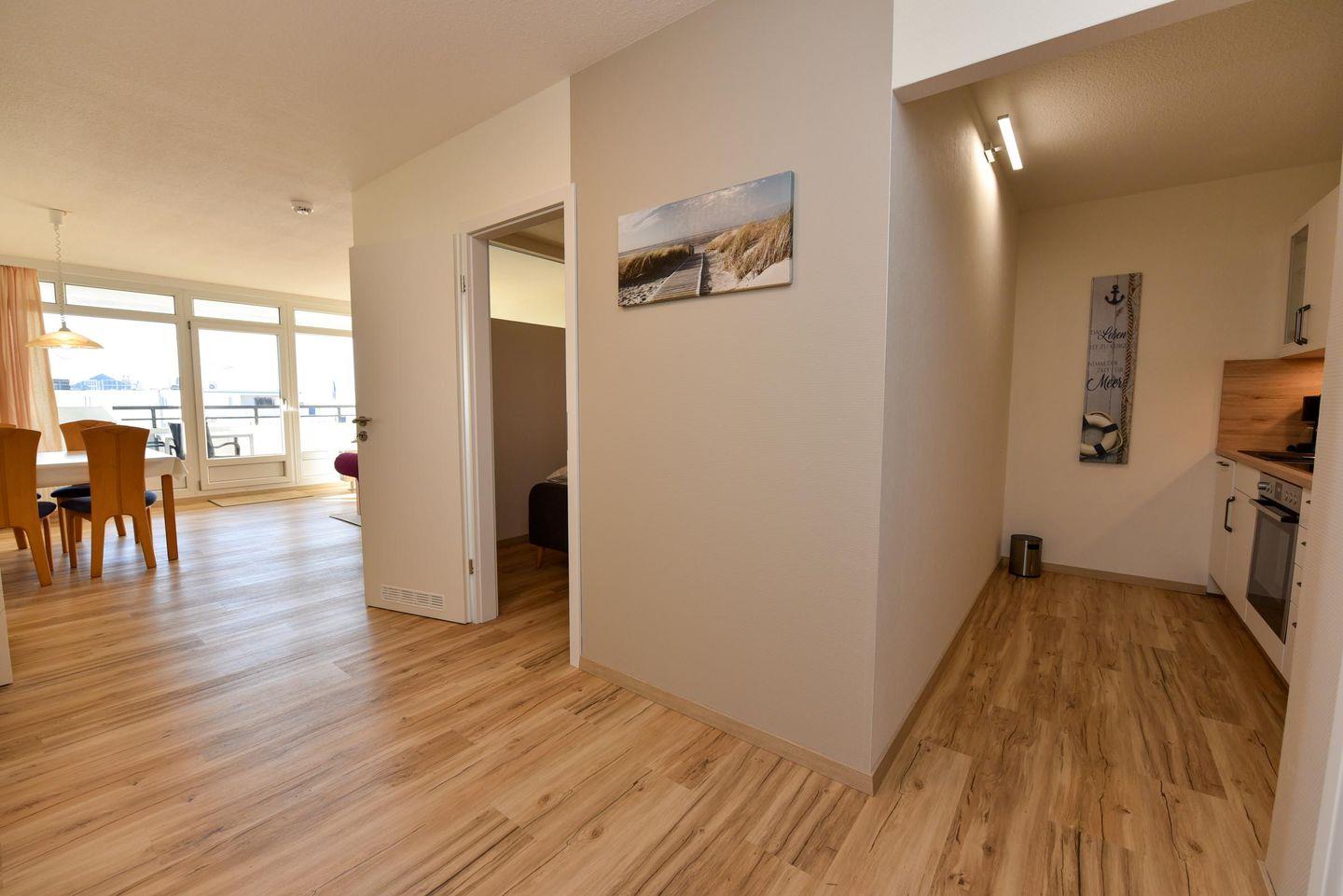 Die gemütliche Wohnung Nr. 86 in der 6. Etage mit Seeblick in Richtung Neuwerk wurde 2022 komplett renoviert.