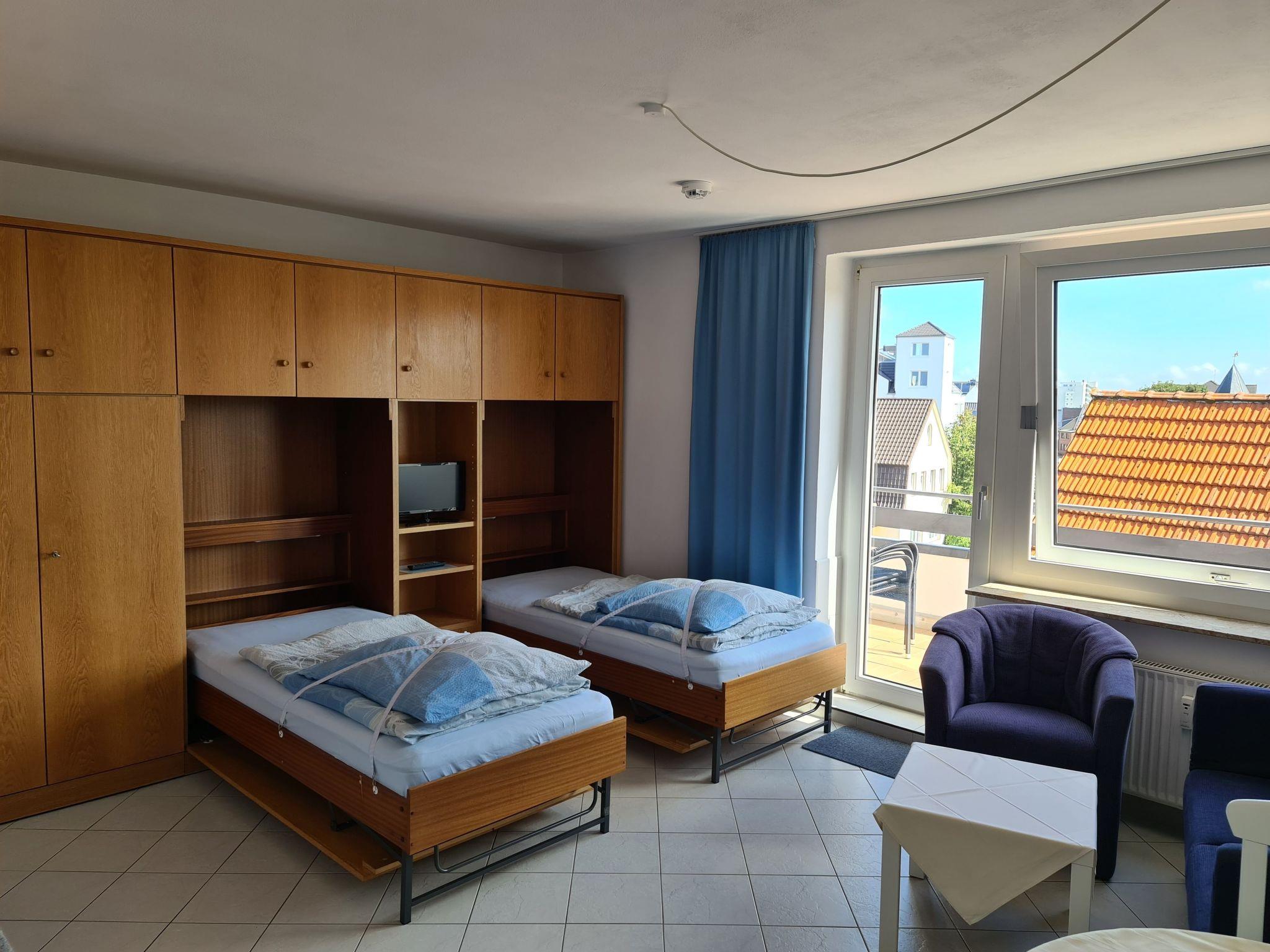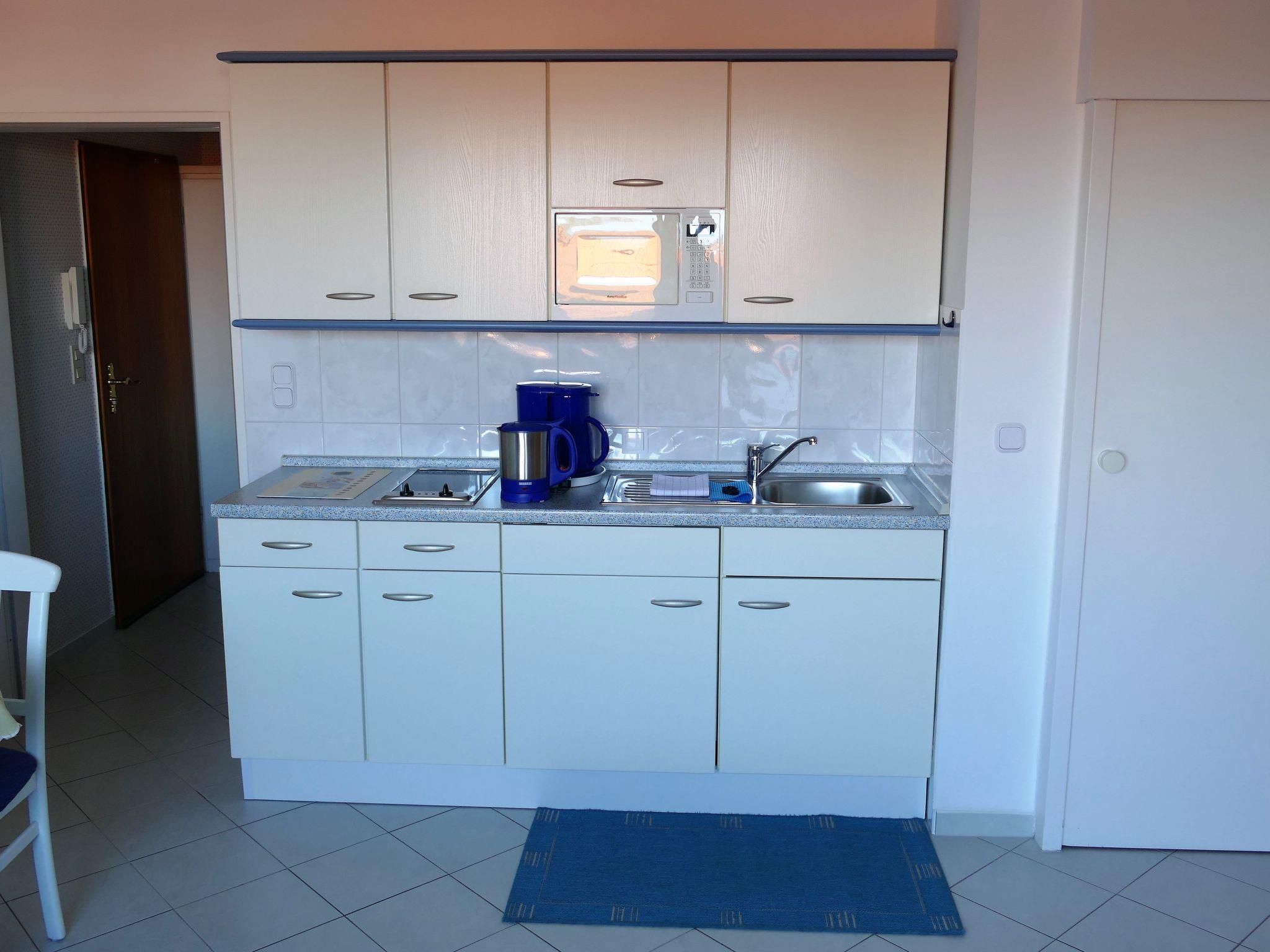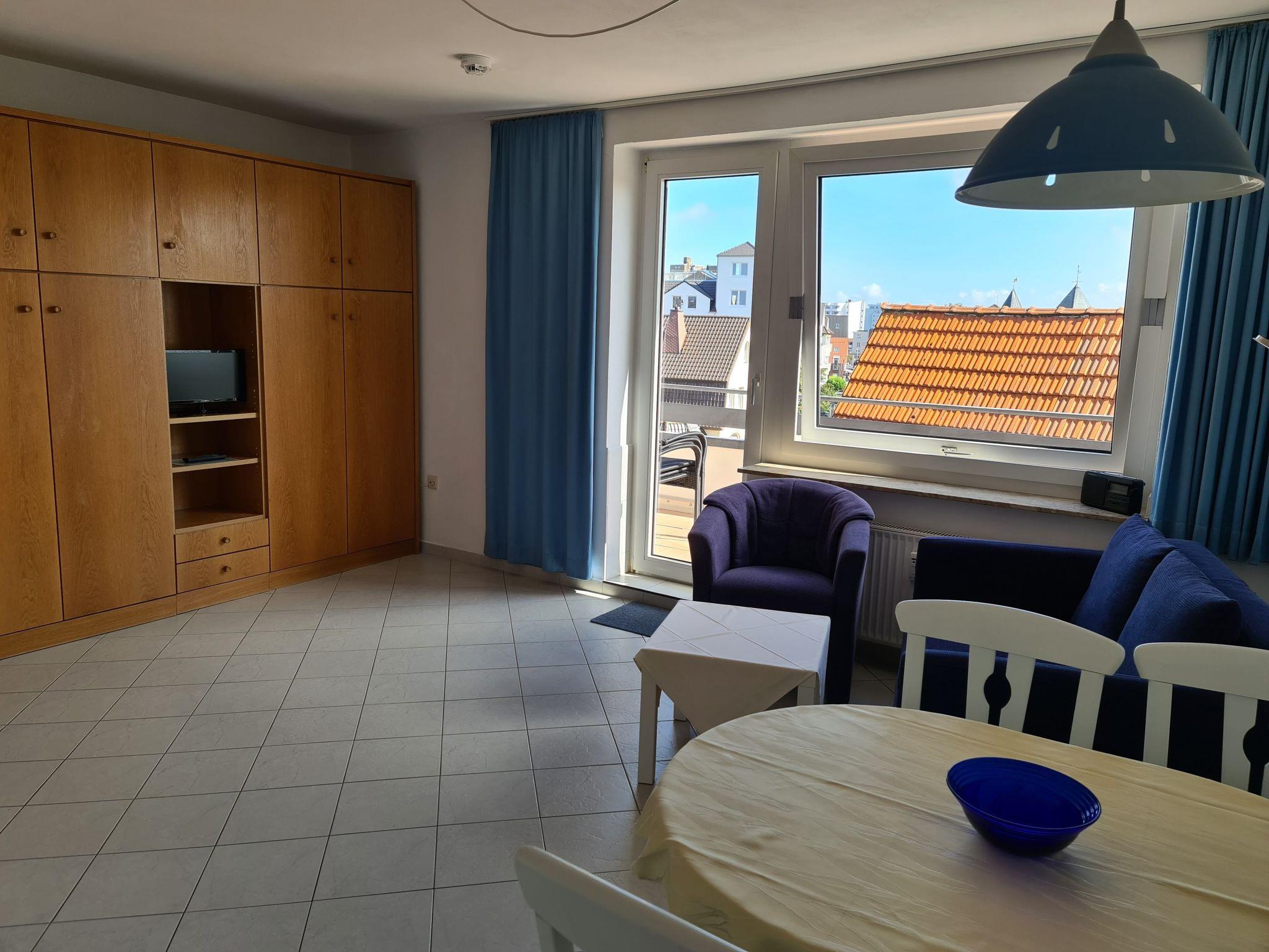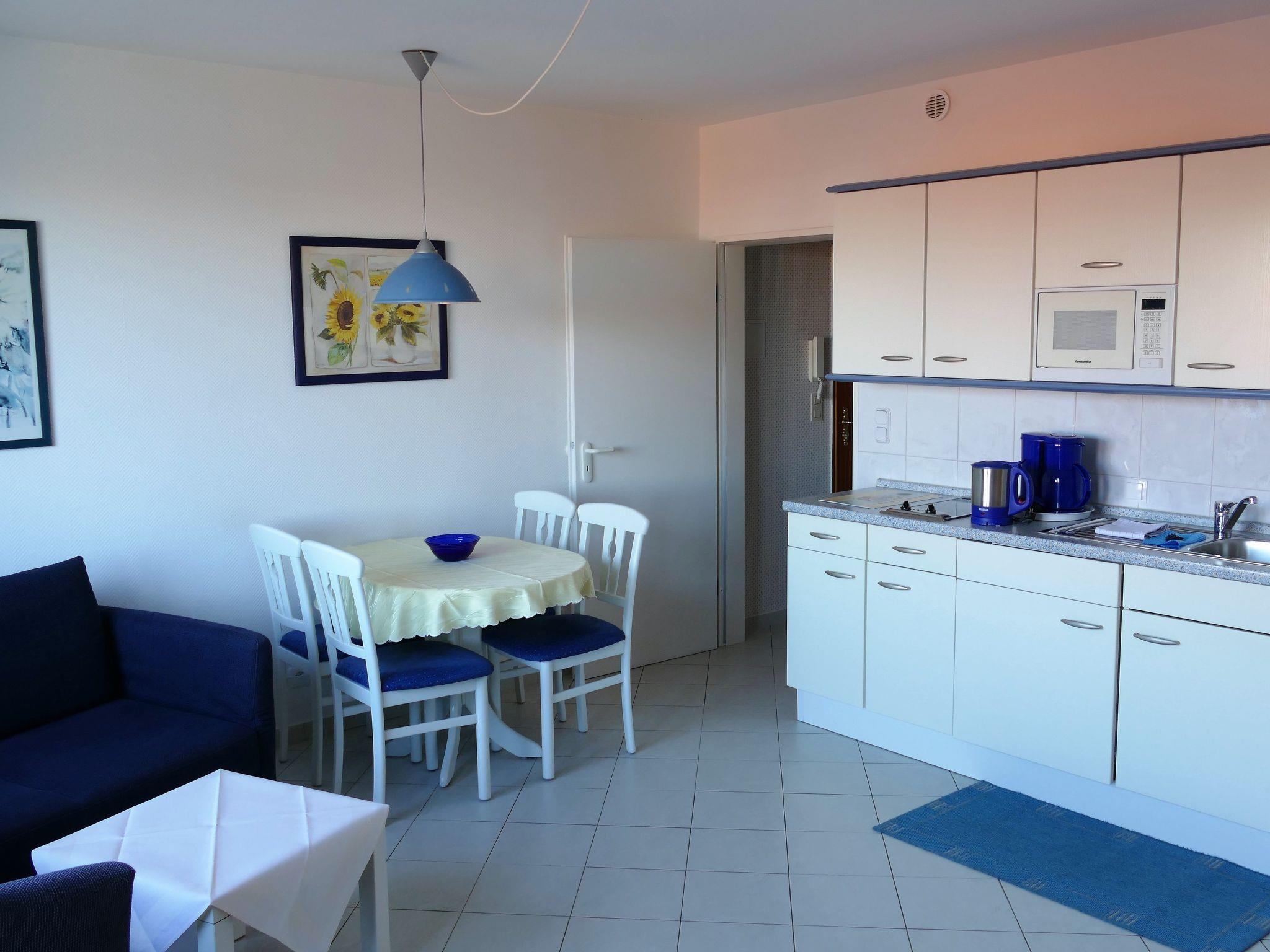This is a lovely 37m² two-room apartment on the second floor. It is fully-equipped and furnished for up to four people. The bedroom is furnished with a French bed (140cm wide). The combined living room and bedroom has two separate cupboard beds. The kitchen unit is equipped with a ceramic hob, microwave, satellite TV and a radio. The bathroom has a shower and WC. The apartment is tiled throughout and suitable for allergy sufferers. A balcony and a car parking space are provided. Only dogs are allowed as pets.