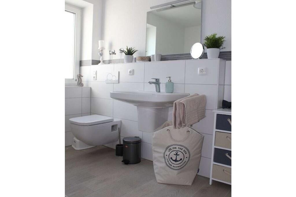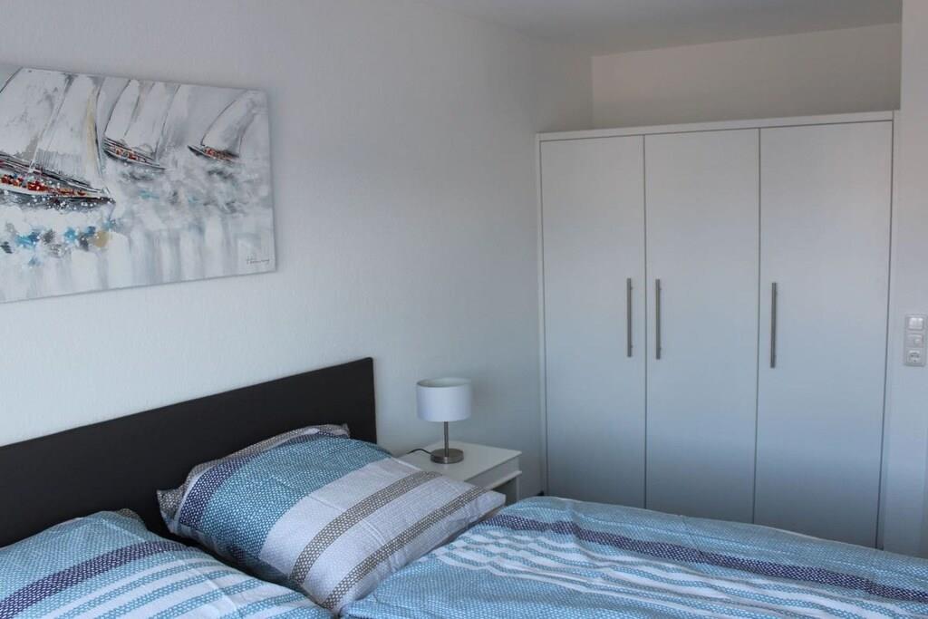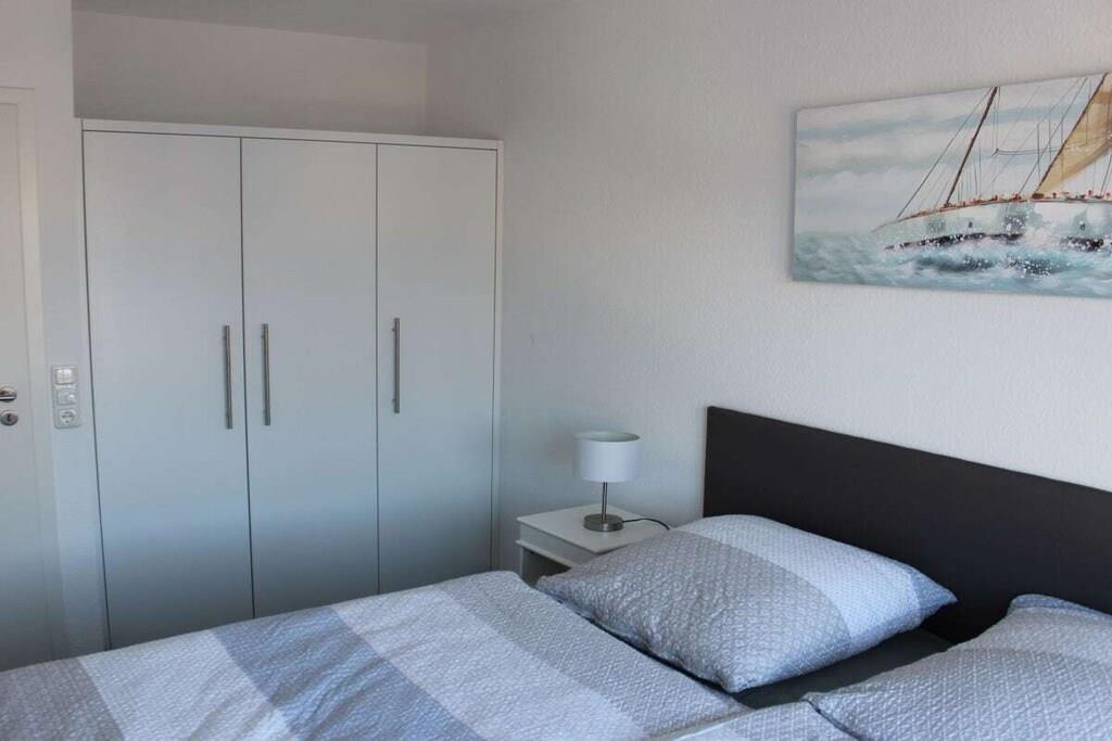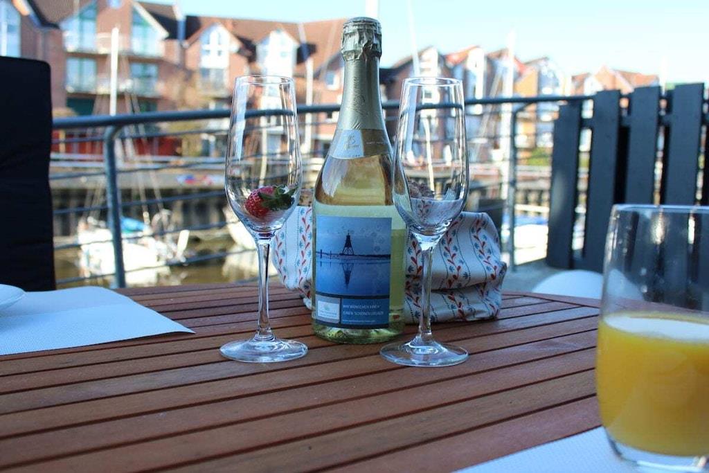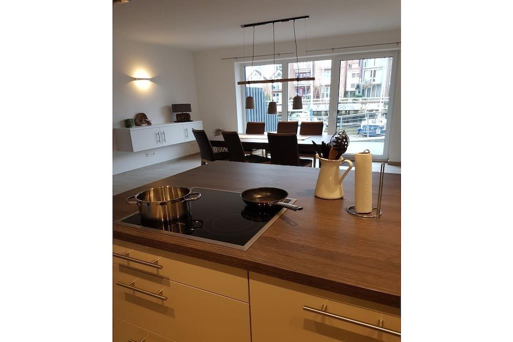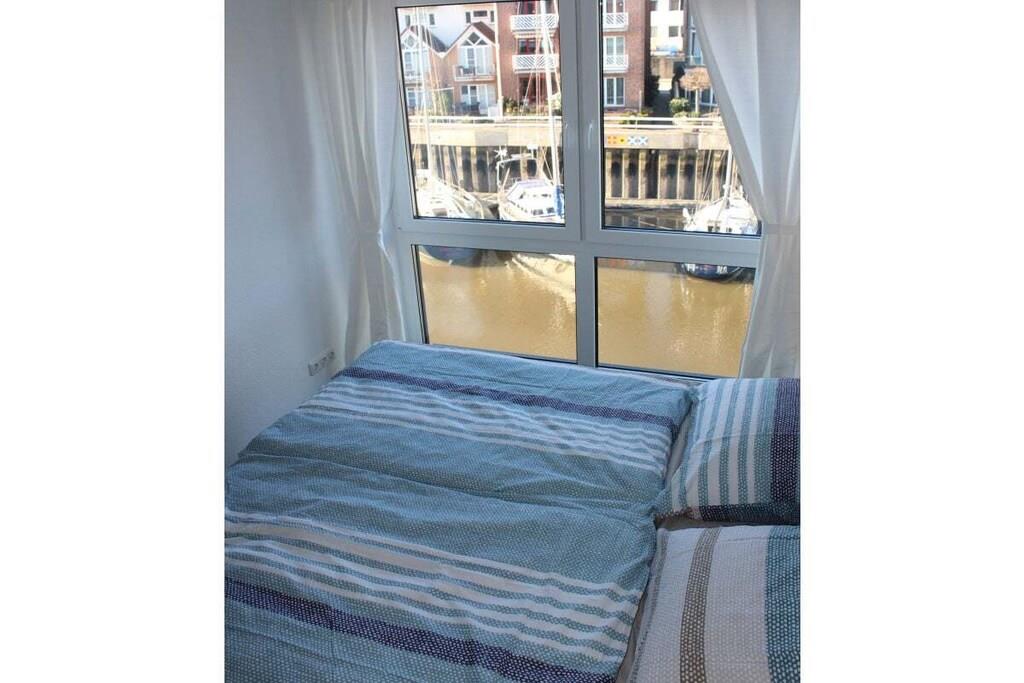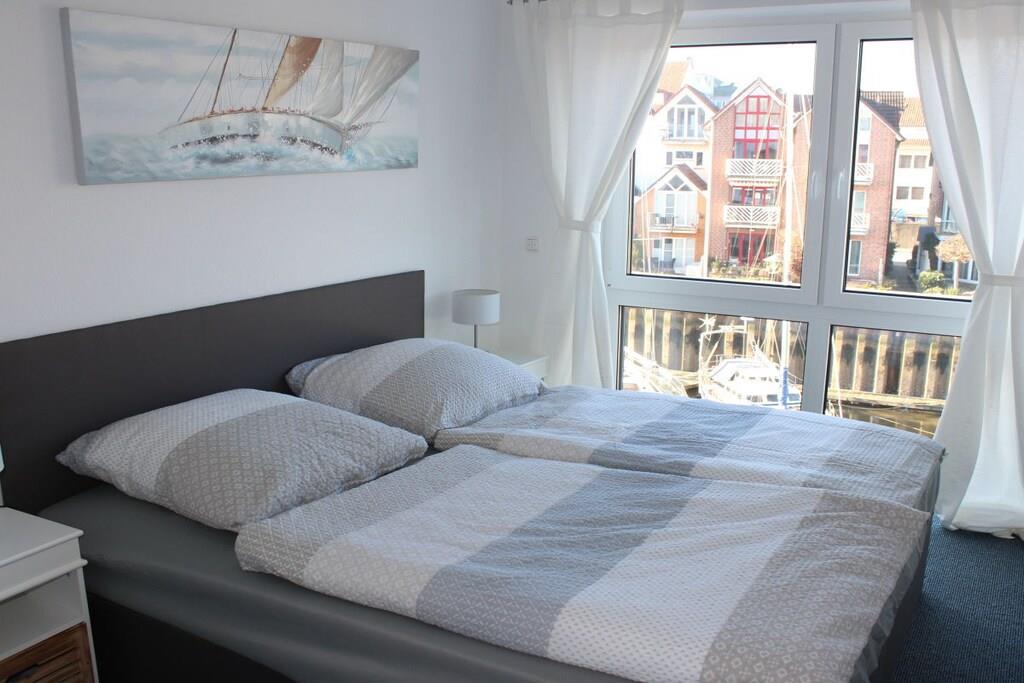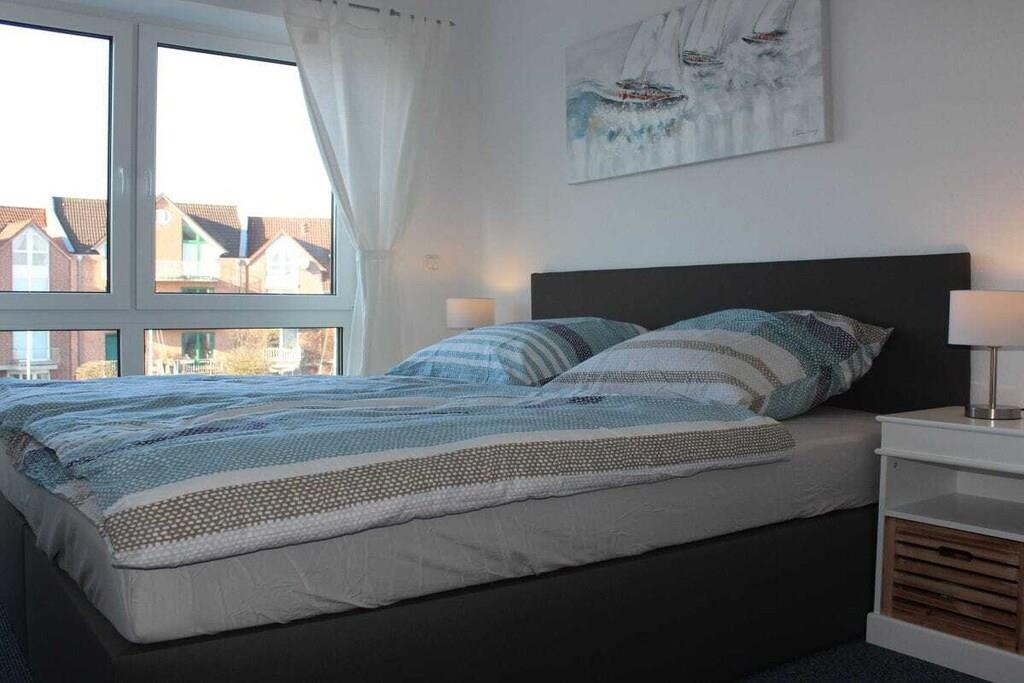 Centralt beliggende ferielejlighed i havnen i Cuxhaven. Lejligheden er i tre etager. Stueetagen har et rummeligt køkken med spisebord og seks stole, en stor terrasse med havemøbler, et gæstetoilet og et garderoberum. På første sal er der soveværelse, et stort badeværelse med bruser og sauna samt en balkon. Anden sal har to soveværelser, et stort badeværelse med bruser og badekar. Tredje sal, husets højdepunkt, er mezzaninen. Denne etage har stuen med en stor sofa, perfekt til afslapning, og en stor balkon med havemøbler.
