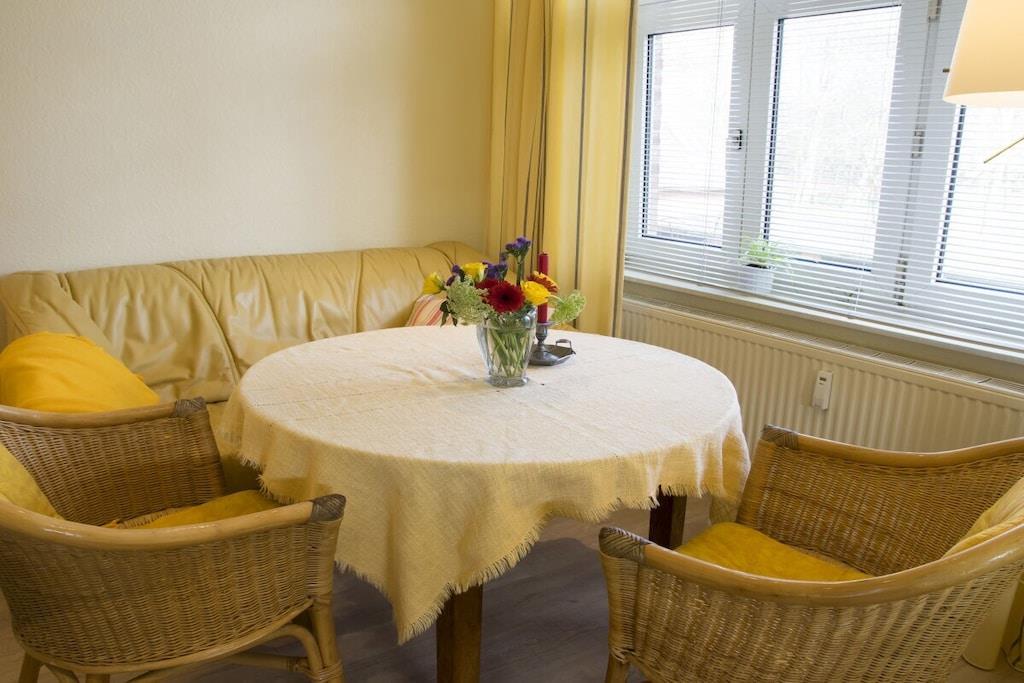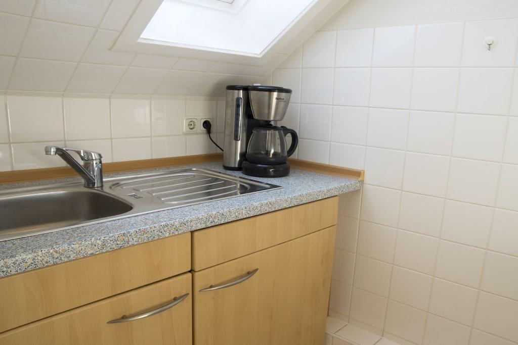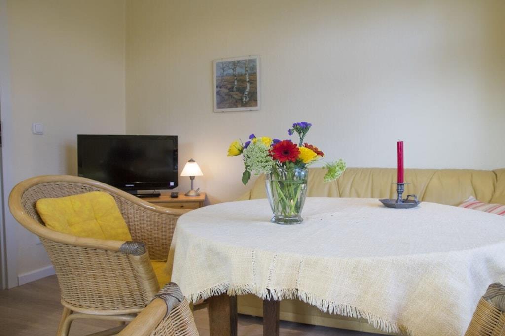 Lejlighed til 2 personer (25 kvm) på 1. sal Opholds- og soveområde med 2 enkeltsenge, spisebord og siddepladser. Tekøkkenet er tilgængeligt fra stuen. Badeværelset har bruser og toilet. Ankomst mellem kl. 13.00 og 14.00