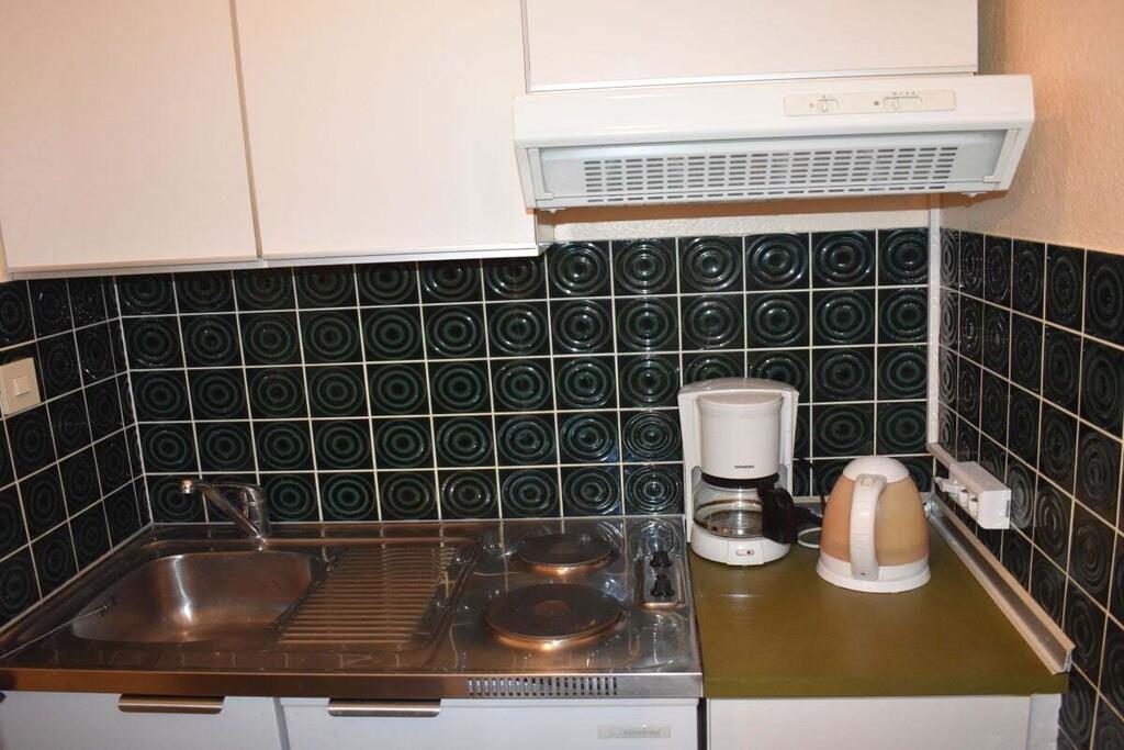 Lille lejlighed på cirka 20 kvadratmeter, egnet til to personer, der søger indkvartering under udforskning af Cuxhaven. Den har en dobbeltseng, et lille tekøkken og et lille brusebad. Adgang til haven, siddepladser og liggestole er tilgængelige. Parkering er tilgængelig bag bygningen. Cykelopbevaring og et vaskerum er tilgængelige mod et gebyr. Ankomst er mellem kl. 13.00 og 14.00.