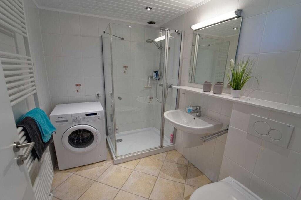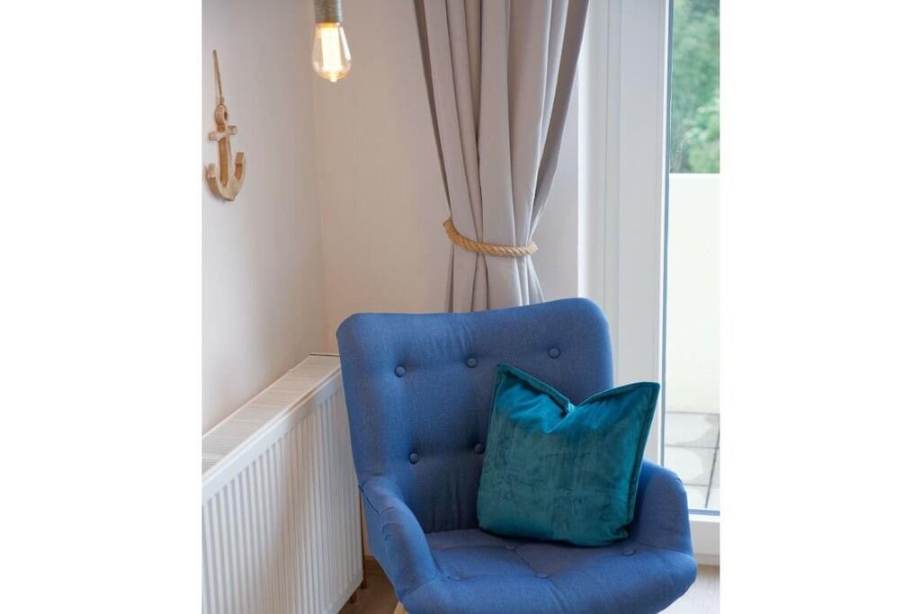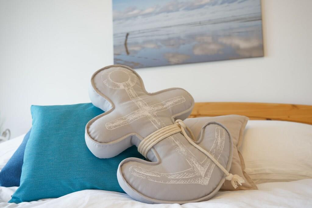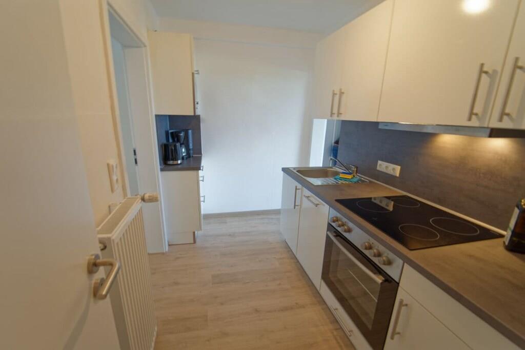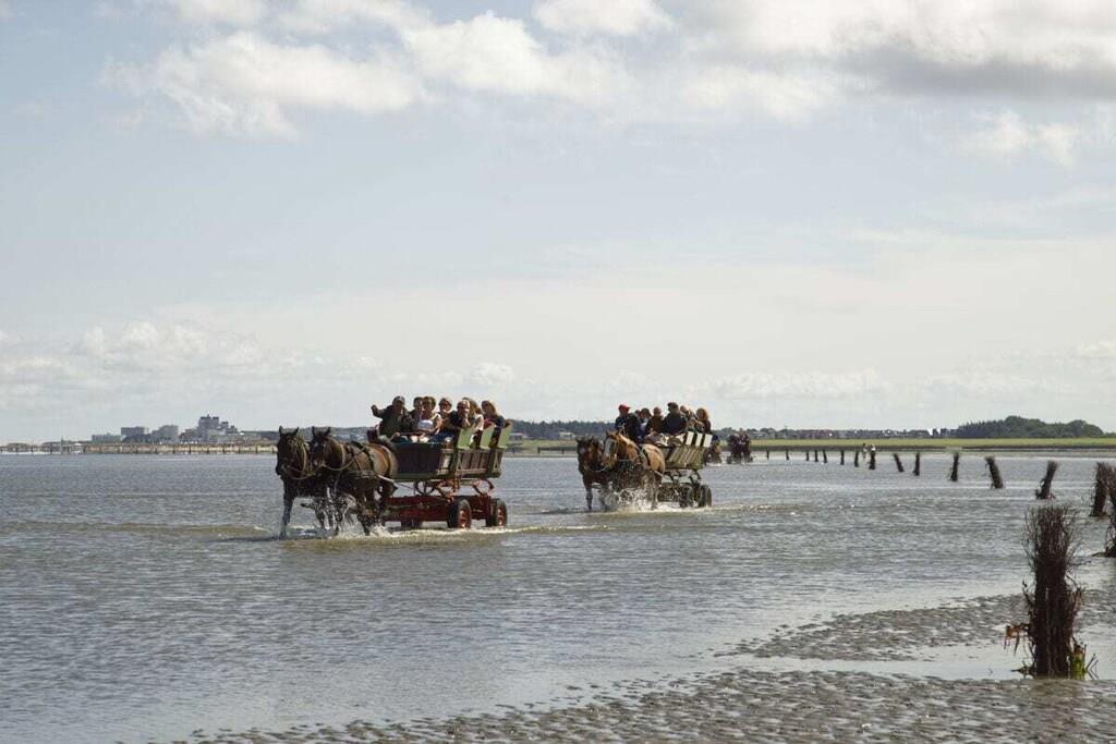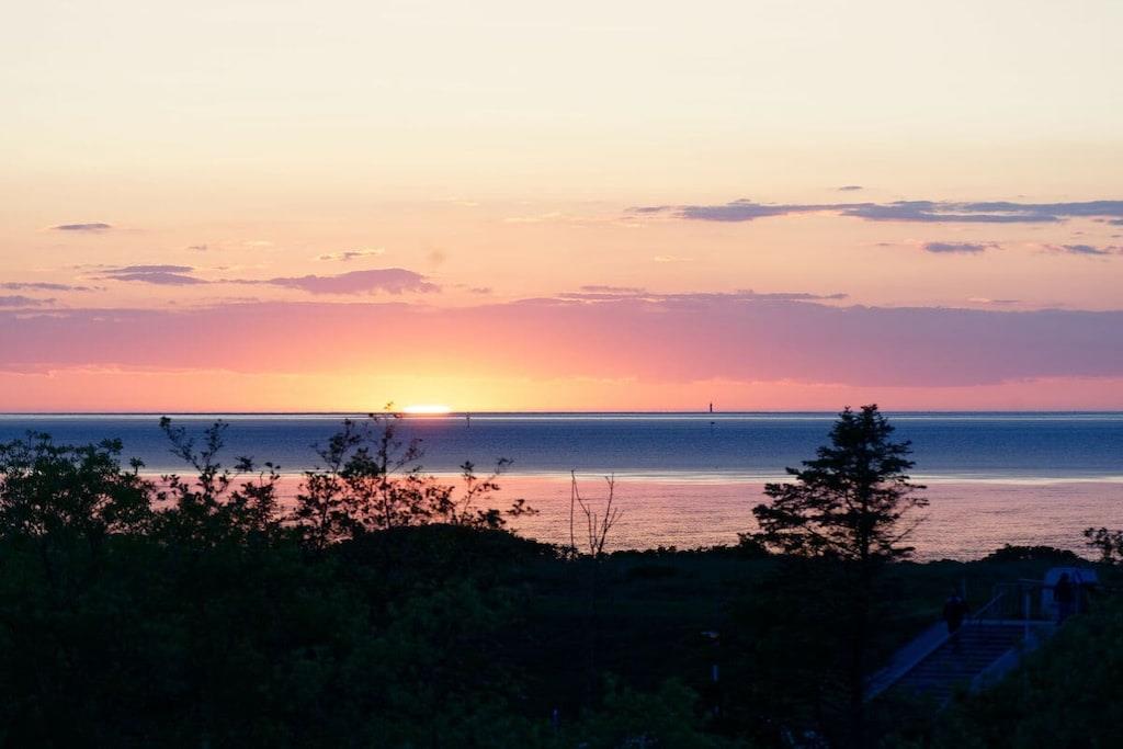 Nyd en afslappende ferie i vores kærligt møblerede lejlighed med enestående havudsigt. Vores lyse ferielejlighed (81 m², 3. sal) i moderne landlig stil ligger lige bag diget (200 m til stranden) og tilbyder masser af plads til 4 personer og en baby/tumling. Der er en barneseng og en højstol til rådighed. Lejligheden har to rummelige soveværelser, hver med en dobbeltseng, samt en stue og spisestue med panoramaudsigt over Nordsøen og den internationale sejlrute. Badeværelset med bruser/toilet har også en vaskemaskine. Det moderne og fuldt udstyrede køkken tilbyder al komfort, herunder keramisk kogeplade, ovn, mikrobølgeovn, opvaskemaskine og køleskab med frostboks. Den solrige sydvendte balkon har en vidunderlig udsigt over det omkringliggende grønt. Gratis Wi-Fi. To LG Smart TV'er giver dig mulighed for at se dine yndlingsprogrammer med din Netflix- eller Amazon-konto (osv.). Der er gratis parkering lige foran bygningen. Udlejningskontoret ligger i bygningen. Bemærk venligst, at der ikke er elevator.