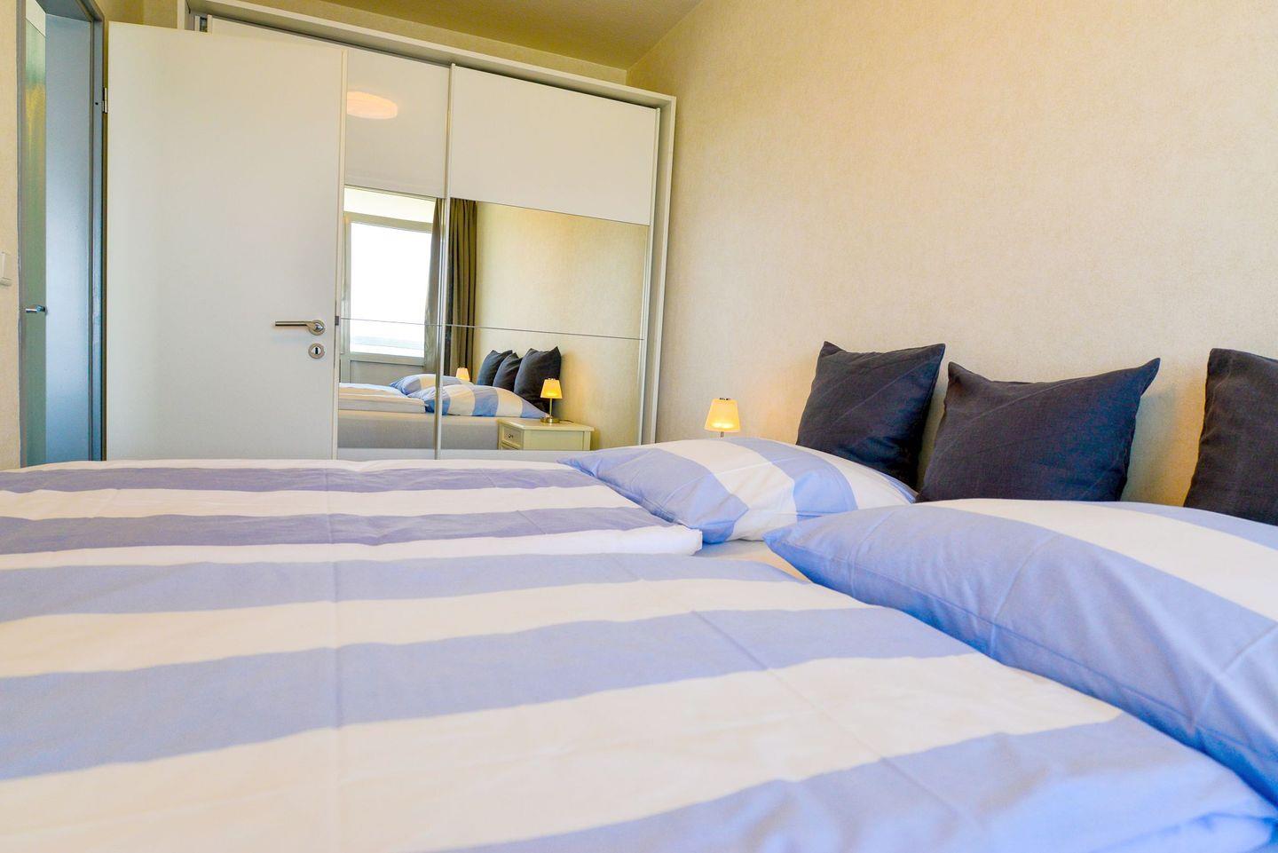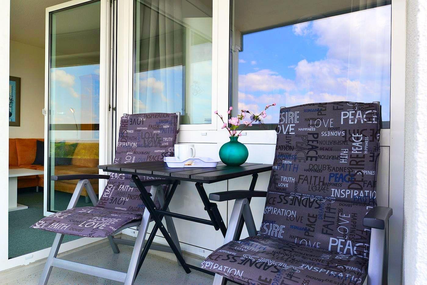 Freuen Sie sich auf wundervolle Stunden mit Panoramablick aufs Meer in dieser schön eingerichteten und hellen Ferienwohnung mit nordischem Charme. Die Wohnung ist vollwertig ausgestattet und darauf ausgerichtet, Ihnen ihren Urlaub so entspannt wie möglich zu gestalten. Die Küche ist komplett ausgestattet, das Wohnzimmer verfügt über einen TV und das Bad über eine Dusche. Besondere Momente und Entspannung garantiert der überdachte Balkon, der vom 13. Stock aus eine wunderbare Panoramseesicht bietet. Urlaubern, die Wert auf Entspannung und Wellness legen, können wir das für Sie kostenlose hauseigene Schwimmbad und die Sauna (gegen Münzeinwurf) nur wärmstens empfehlen.