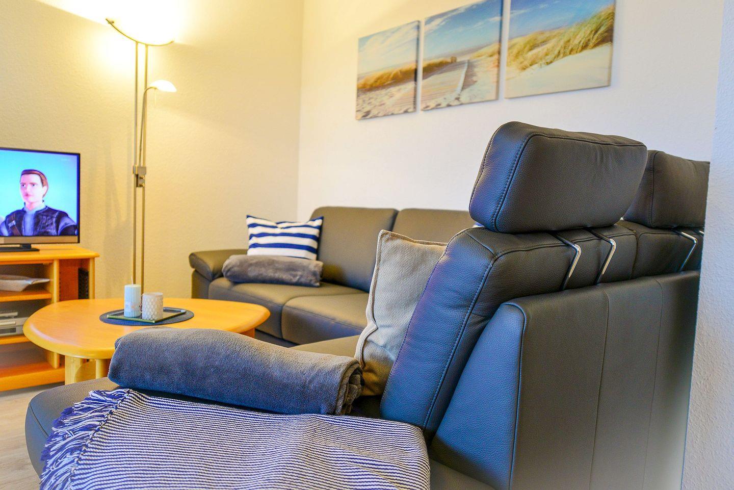 Die schöne Ferienwohnung begrüßt Nordseeurlauber auf 58m² mit gemütlichem Ambiente und nordischem Charme. Lehnen Sie sich entspannt zurück und lassen Sie den Alltag das sein, was er ist. Dank der umfassenden Ausstattung garantiert Ihnen diese Ferienwohnung ein wunderbares Urlaubsgefühl ohne Abstriche. Die vollausgestattete Küchenzeile eignet sich, um auch ein besonderes Dinner vorzubereiten, der Wohnbereich lädt zu gemütlichen TV Abenden ein und das kostenlose WLAN bietet Konnektivität. Der Strand ist nur 200 Meter von der Ferienwohnung entfernt und mit einem kurzen Spaziergang schnell zu erreichen. Der Balkon mit seitlicher Seesicht, lädt dazu ein, erholsame Stunden mit frischer Meeresluft nach einem langen Tag am Meer zu verbringen.