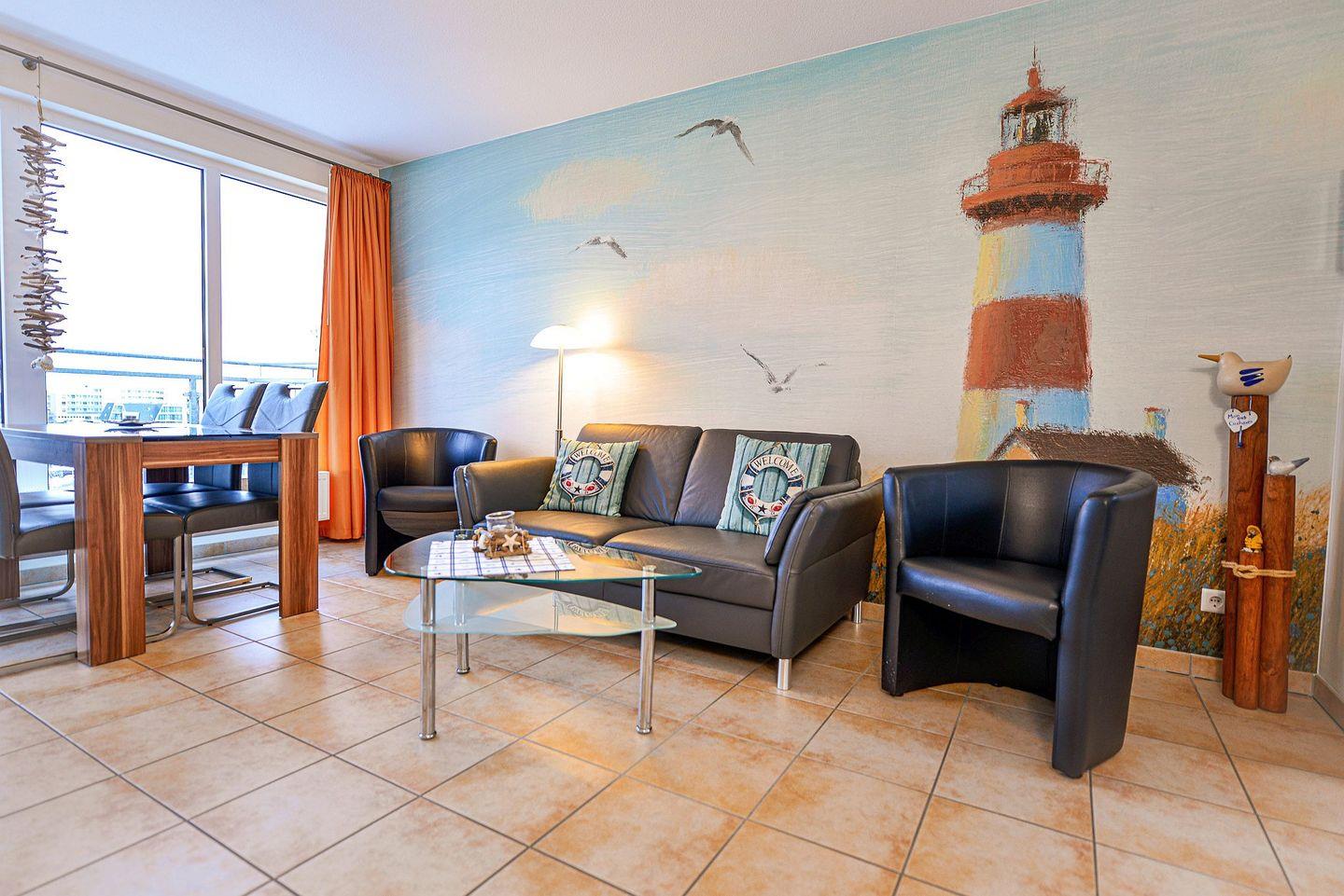 Auf ca. 50 m² Wohnfläche im 4. Obergeschoss bietet das stilvolle Penthouse Platz für bis zu 4 Personen. Zwei separate Schlafzimmer, ein modernes Tageslichtbad, eine voll ausgestattete Küchenzeile sowie ein gemütlicher Wohnbereich mit TV sorgen für Komfort und eine entspannte Urlaubsatmosphäre.