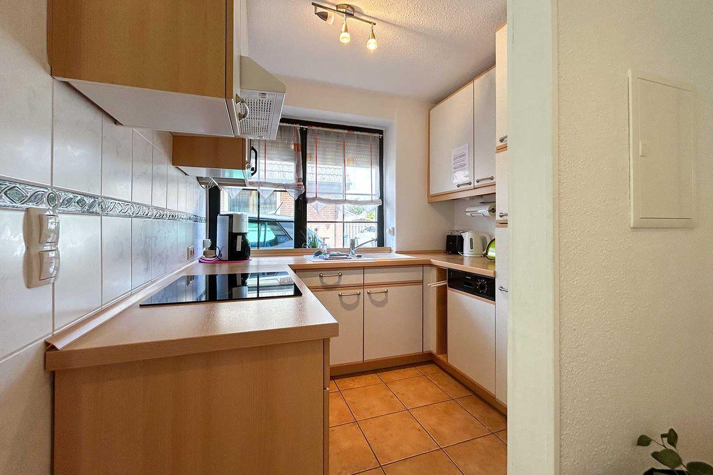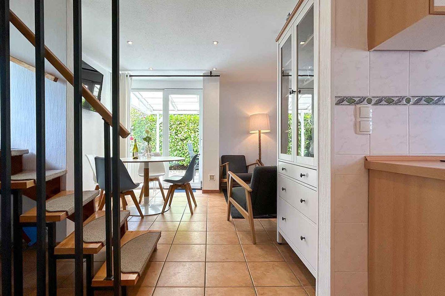 Im Erdgeschoss erwartet Sie ein heller und gemütlicher Wohn-/Essbereich mit einer überdachten Terrasse. Die separate Küche ist vollständig ausgestattet und das moderne Duschbad mit WC rundet das Angebot ab.