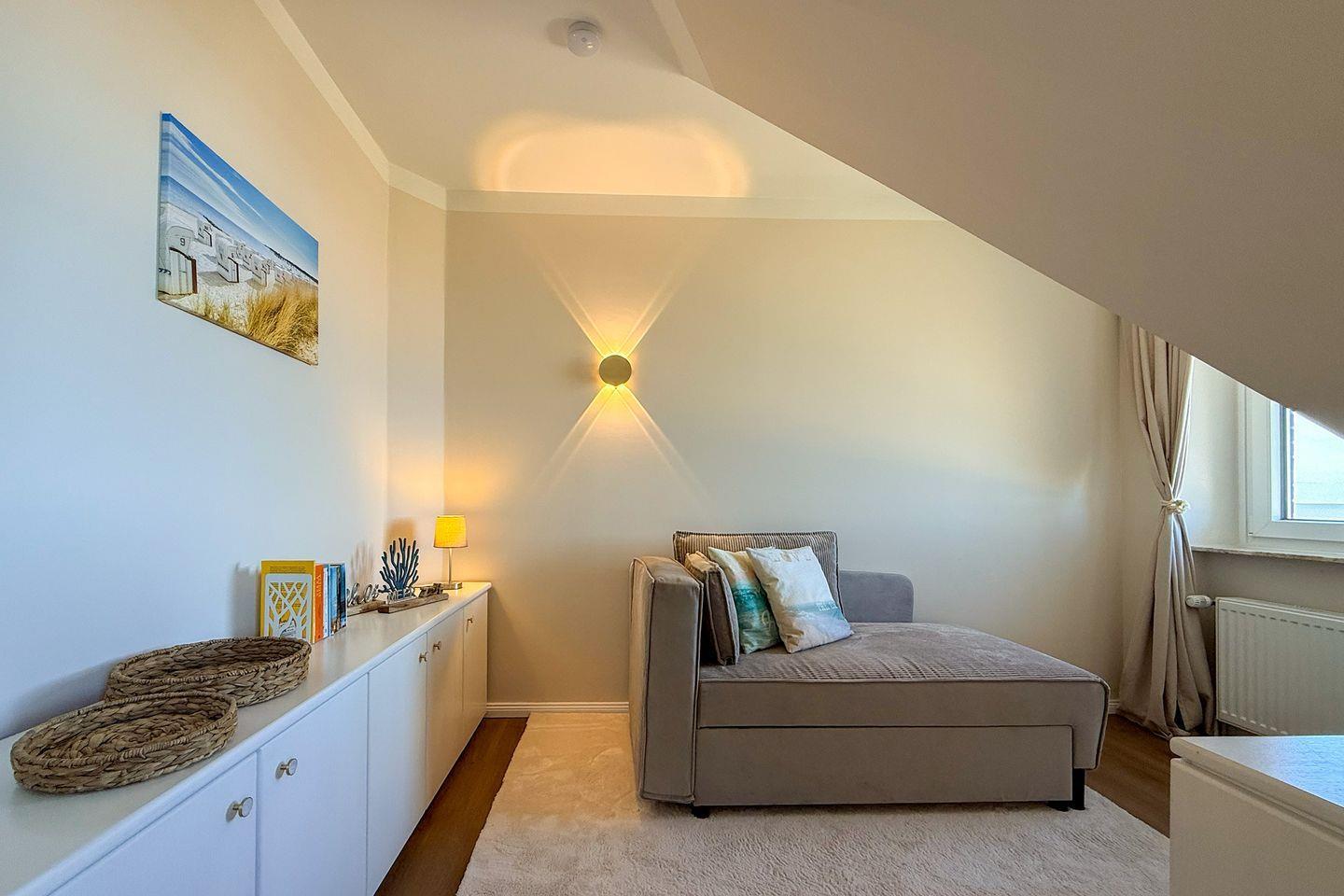 Das gemütliche zusätzliche kleine Schlafzimmer ist mit einem Daybed für eine Person ausgestattet.