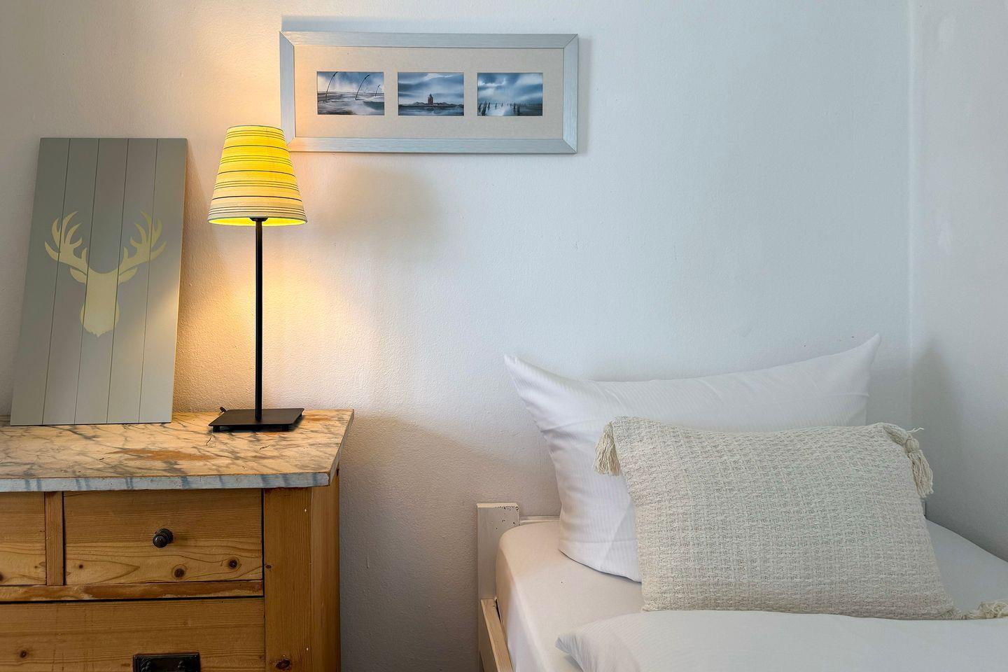 Die Wohnung eignet sich hervorragend für bis zu drei Personen und ist besonders familienfreundlich konzipiert: Neben dem separaten Schlafzimmer, das für erholsame Nächte sorgt, gibt es auf dem Schlafsofa im Wohnzimmer eine zusätzliche Schlafmöglichkeit. Dies bietet Flexibilität und Komfort für Familien mit Nachwuchs. Der offene Wohnbereich ist durch eine gemütliche Sofaecke ergänzt, die ideal zum Entspannen nach einem Tag am Meer oder bei Ausflügen ins Watt einlädt. Für gemeinsame Mahlzeiten steht Ihnen ein eigener Essbereich zur Verfügung.