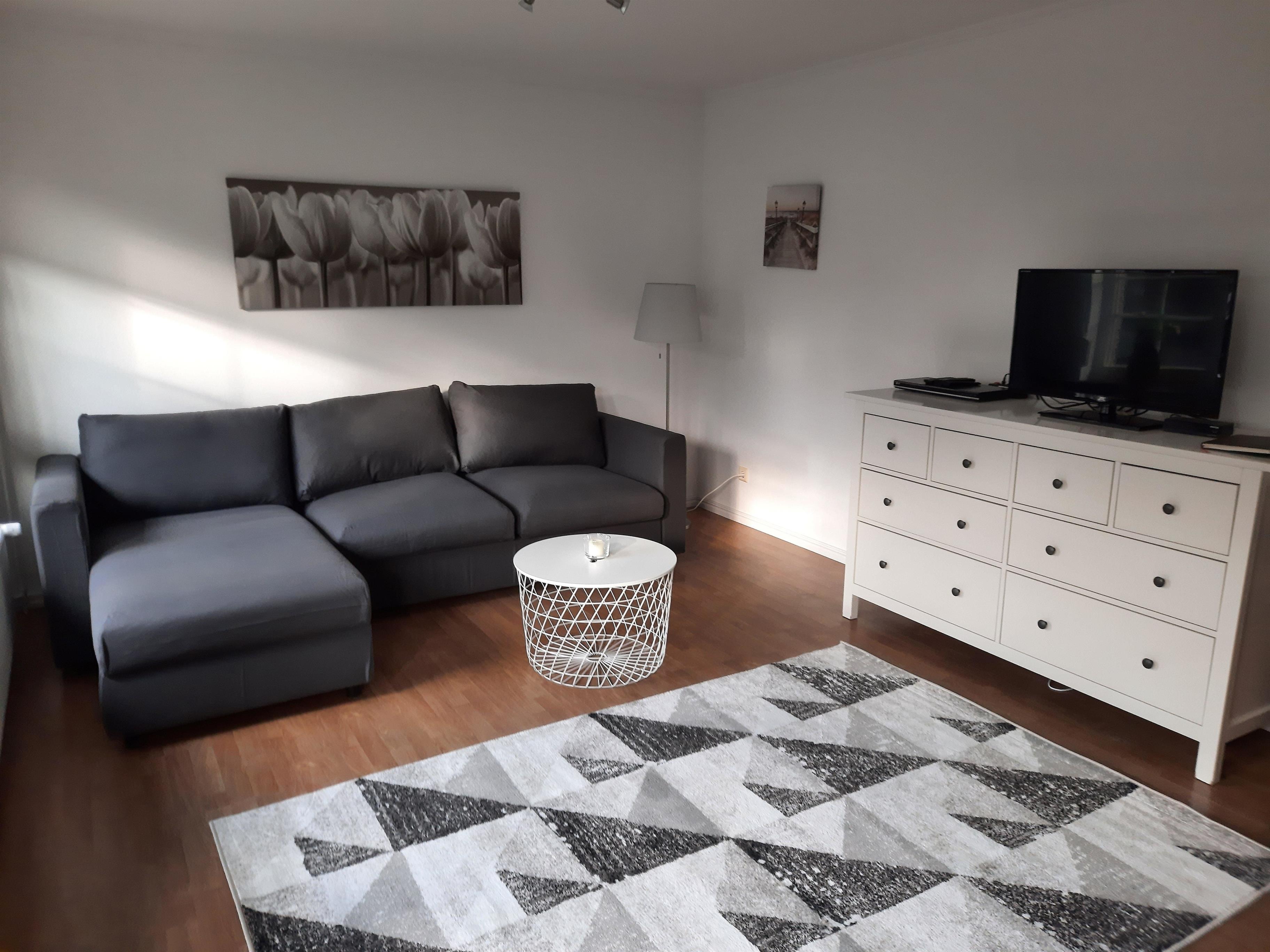 Die Ferienwohnung liegt im Erdgeschoß und ist hell und modern eingerichtet. Hier findet unser Gast auf 54qm alles was man für einen entspannten Urlaub braucht. Die Wohnung verfügt über ein Wohnzimmer mit Schlafcouch, ein Schlafzimmer und ein Badezimmer mit Dusche.Hervorzuheben ist die große Wohnküche die zum langen und genussvollen Frühstück einläd.