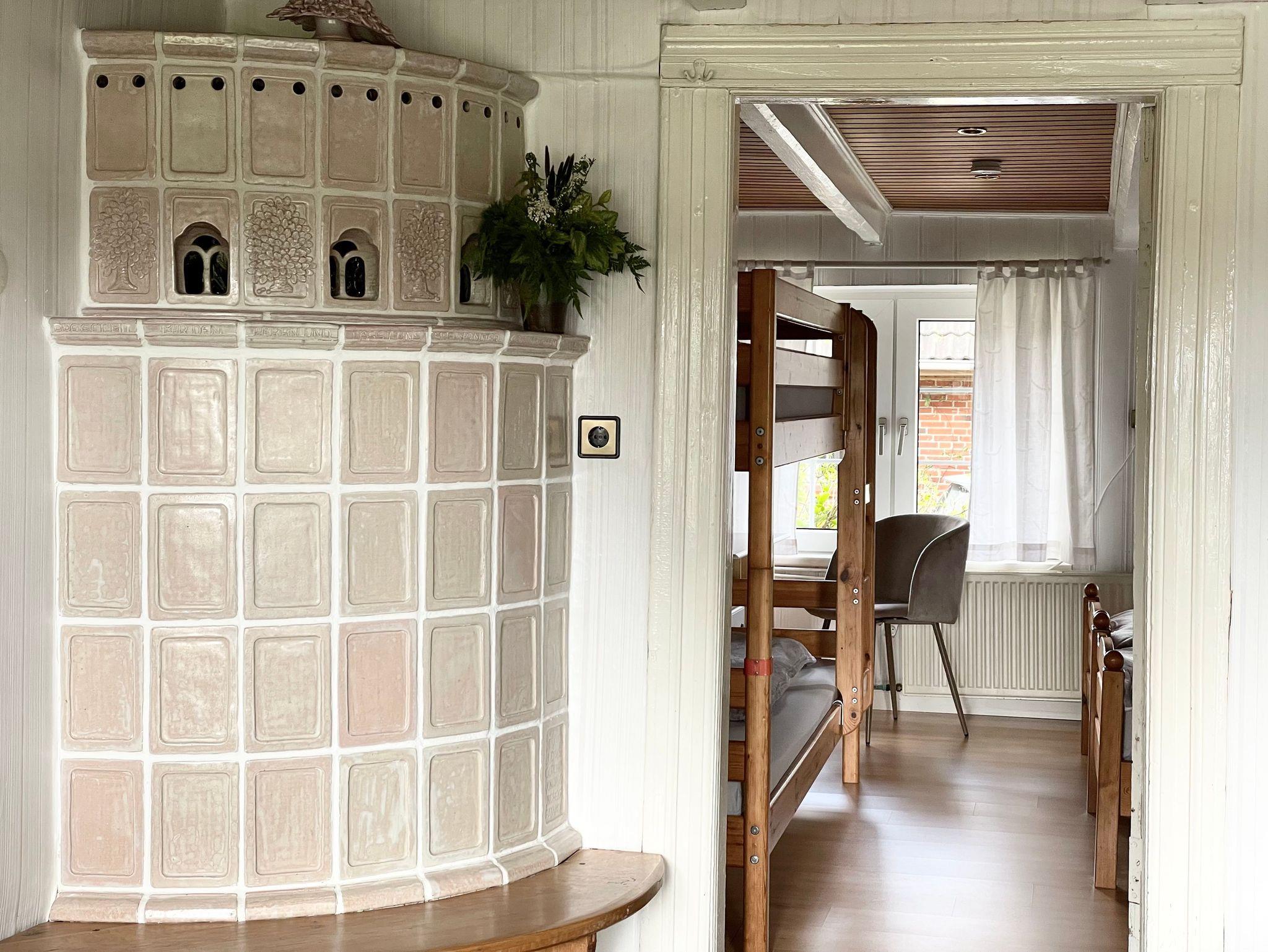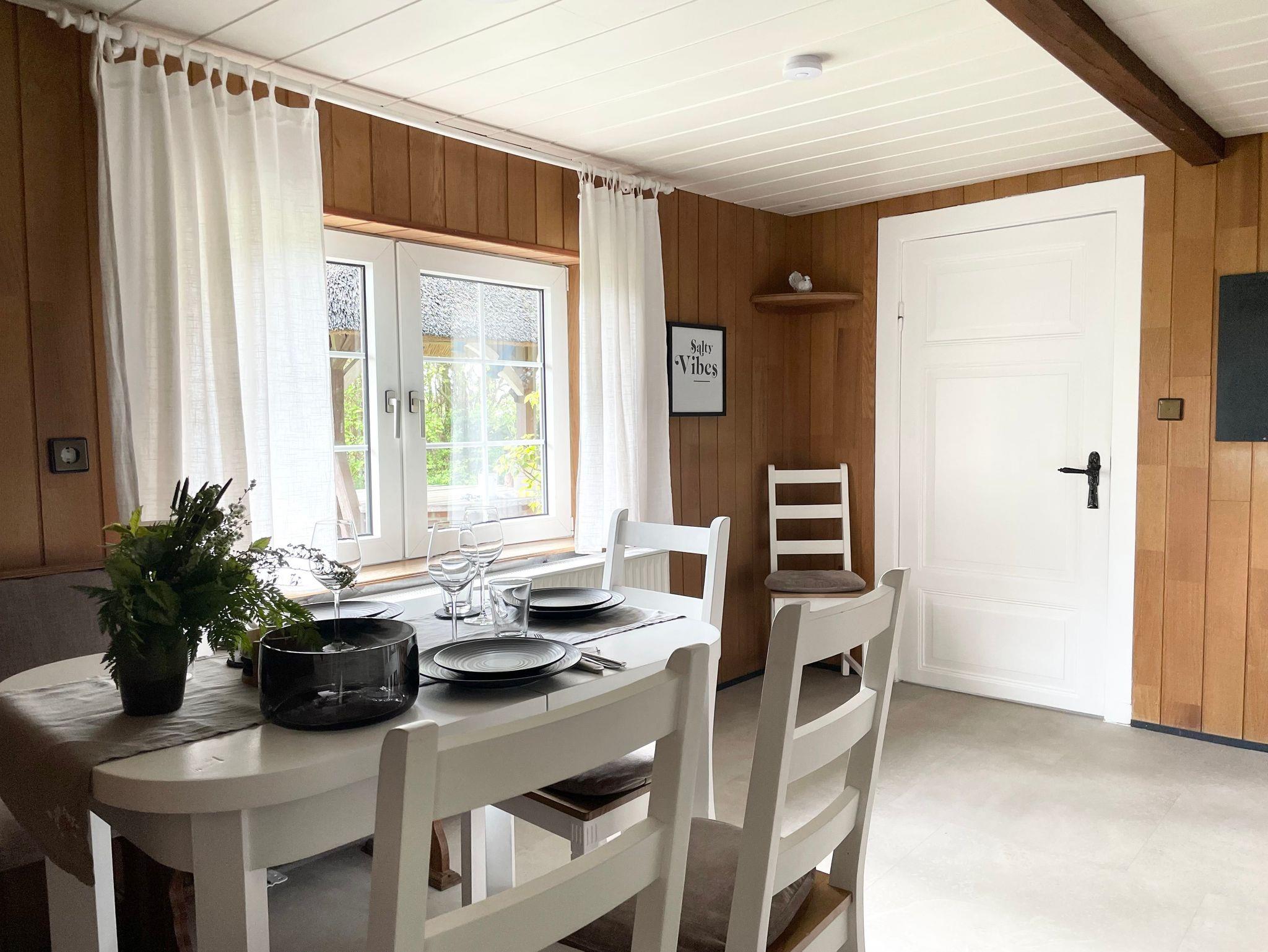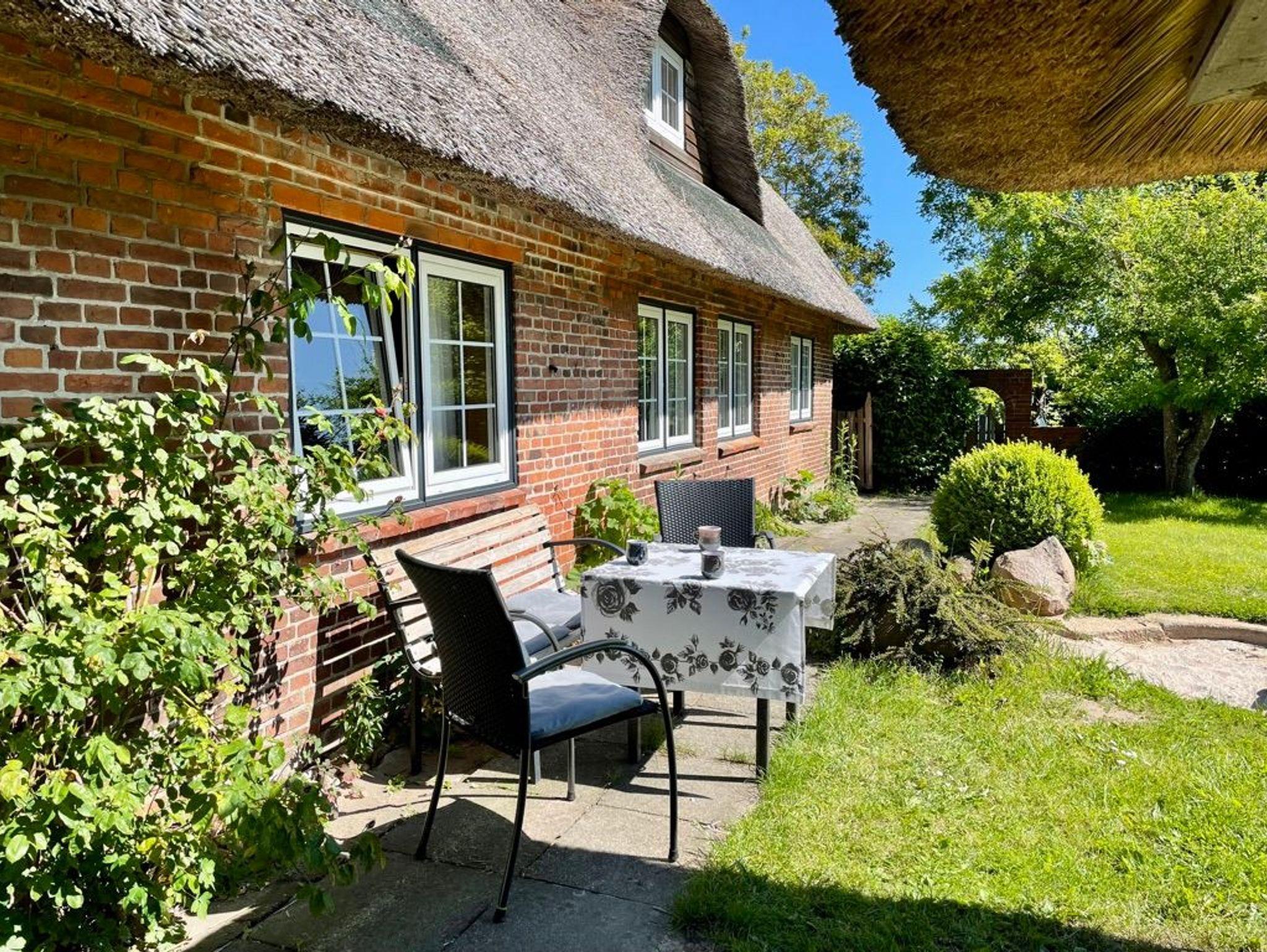 Gemütliche Ferienwohnung in einer schönen Reetdachkate Größe: 70 m², 1 Schlafzimmer (1 Doppelbett und ein Kinderbett), 1 Kinderzimmer (1 Doppelbett + Etagenbett), 1 Wohnzimmer, 1 Wohnküche, 1 Badezimmer mit Dusche und WC.