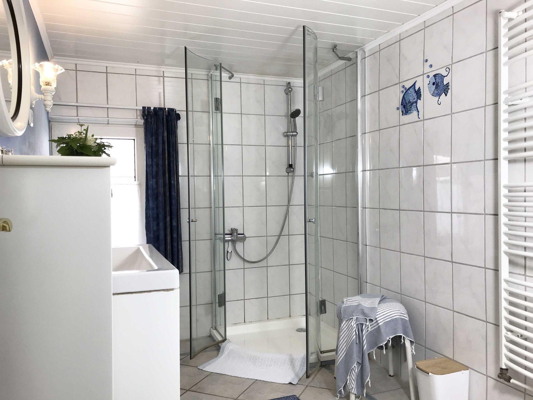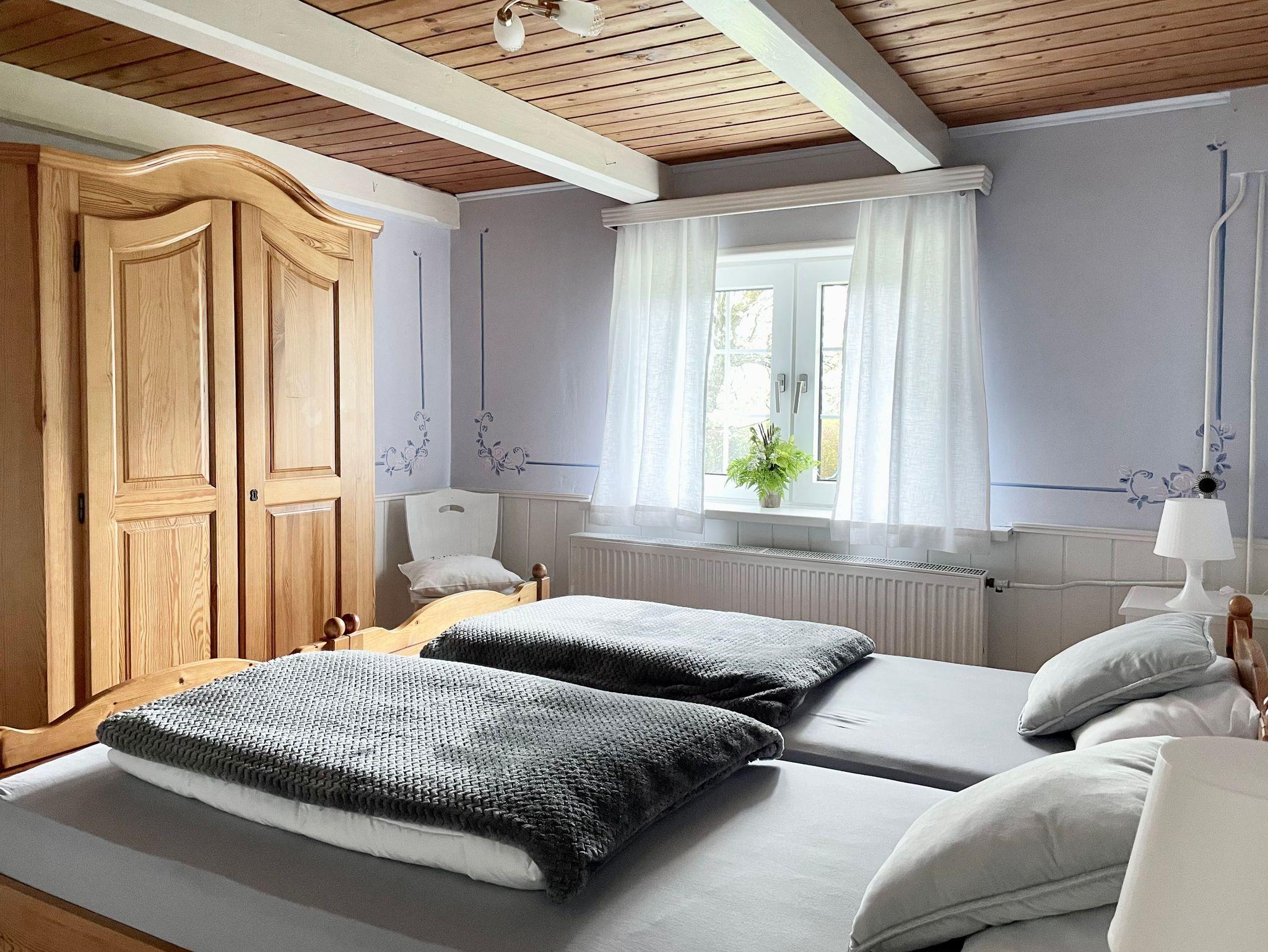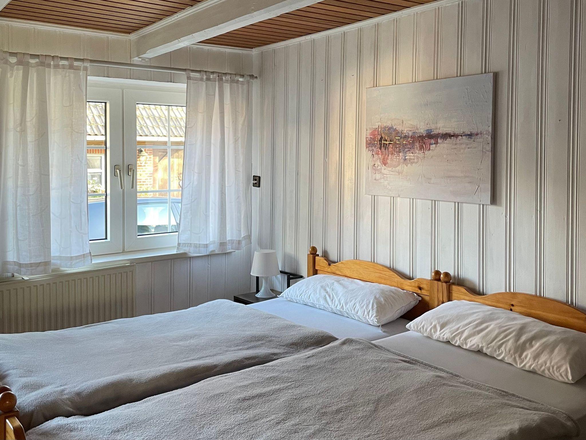 Gemütliche Ferienwohnung in einer schönen Reetdachkate Größe: 70 m², 1 Schlafzimmer (1 Doppelbett und ein Kinderbett), 1 Kinderzimmer (1 Doppelbett + Etagenbett), 1 Wohnzimmer, 1 Wohnküche, 1 Badezimmer mit Dusche und WC.