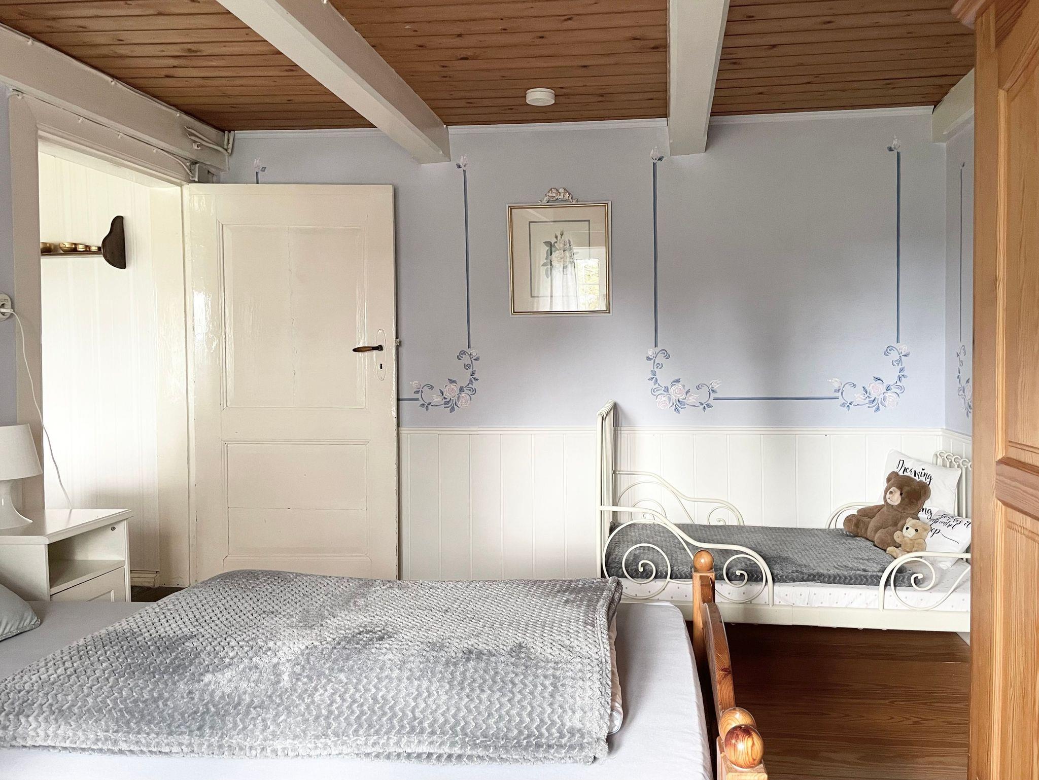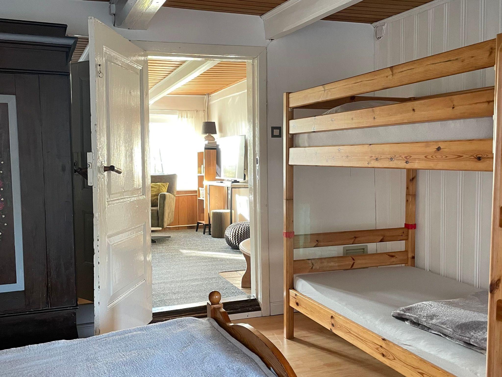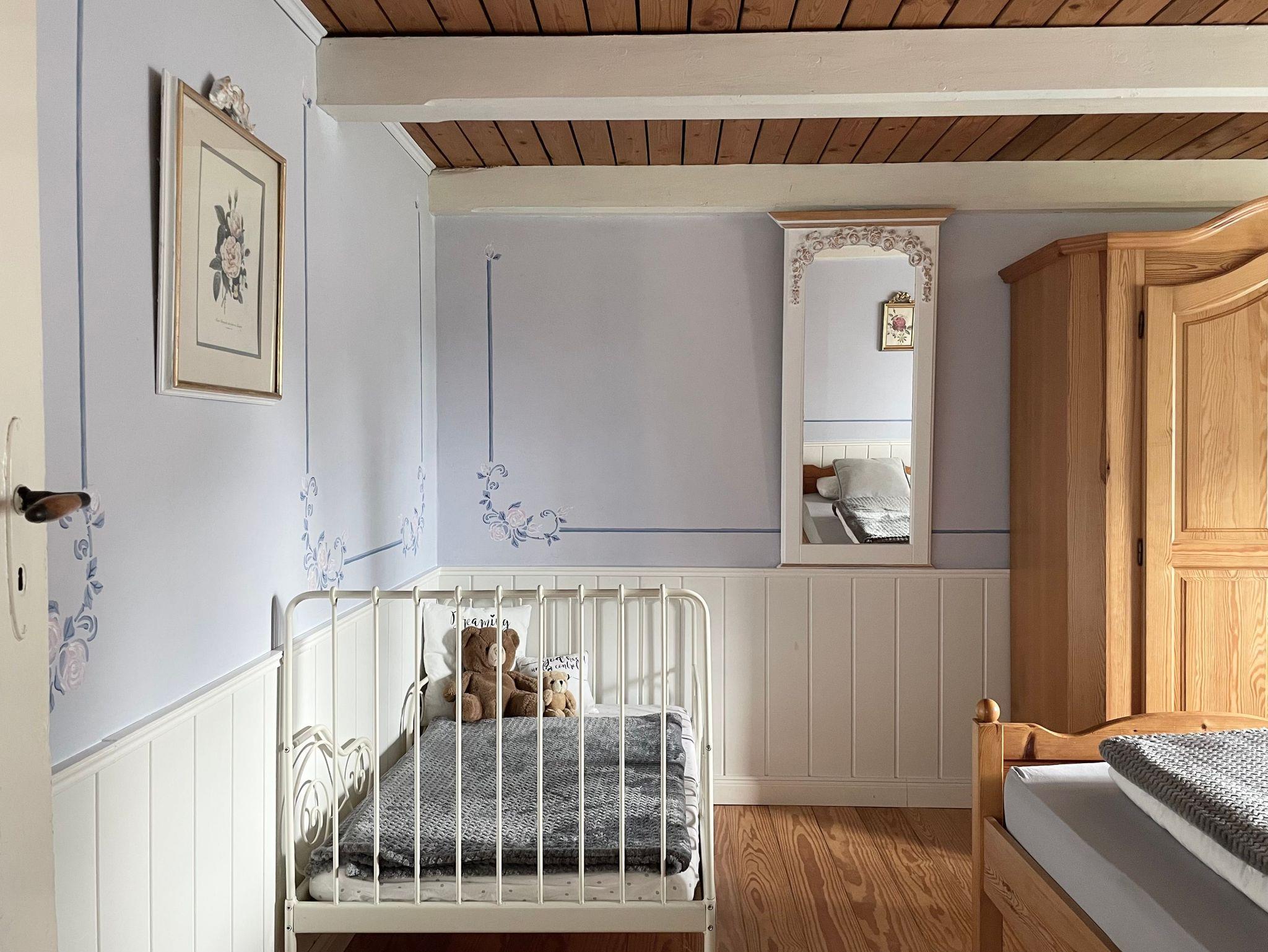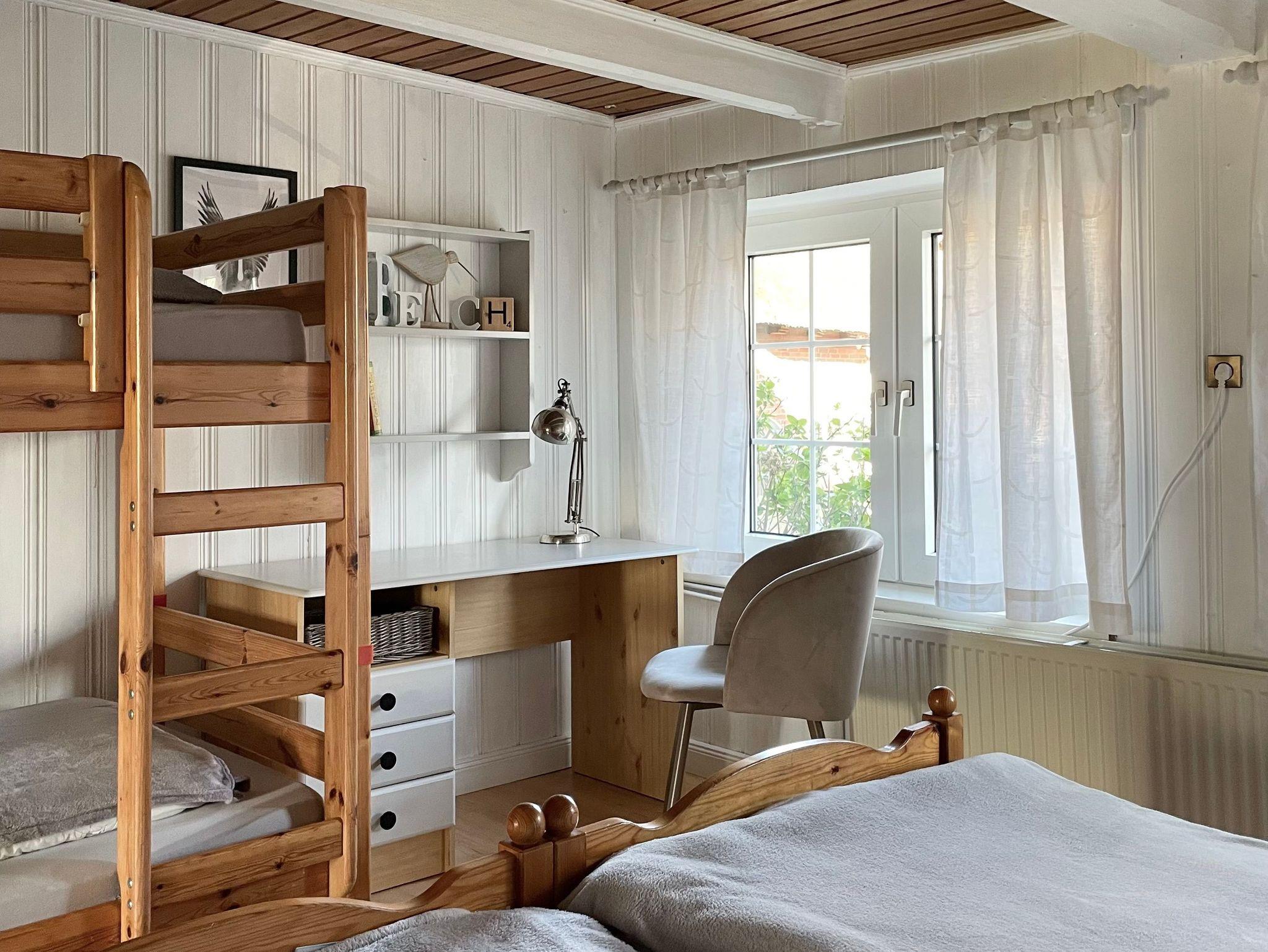 Im „Kinderzimmer“ steht ein Doppelbett, ein Etagenbett und ein Schreibtisch. Im 2. Schlafzimmer ein Doppelbett und ein Babybett.