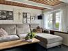 Eine offene Küche mit Tresen und Esstisch, ein Duschbad, 1 Wohnzimmer mit großer Couch, Smart TV. 2 Schlafzimmer, alle Zimmer ebenerdig. Die Deckenhöhe/Balken sind niedrig, da das Haus über 200 Jahre alt ist.
