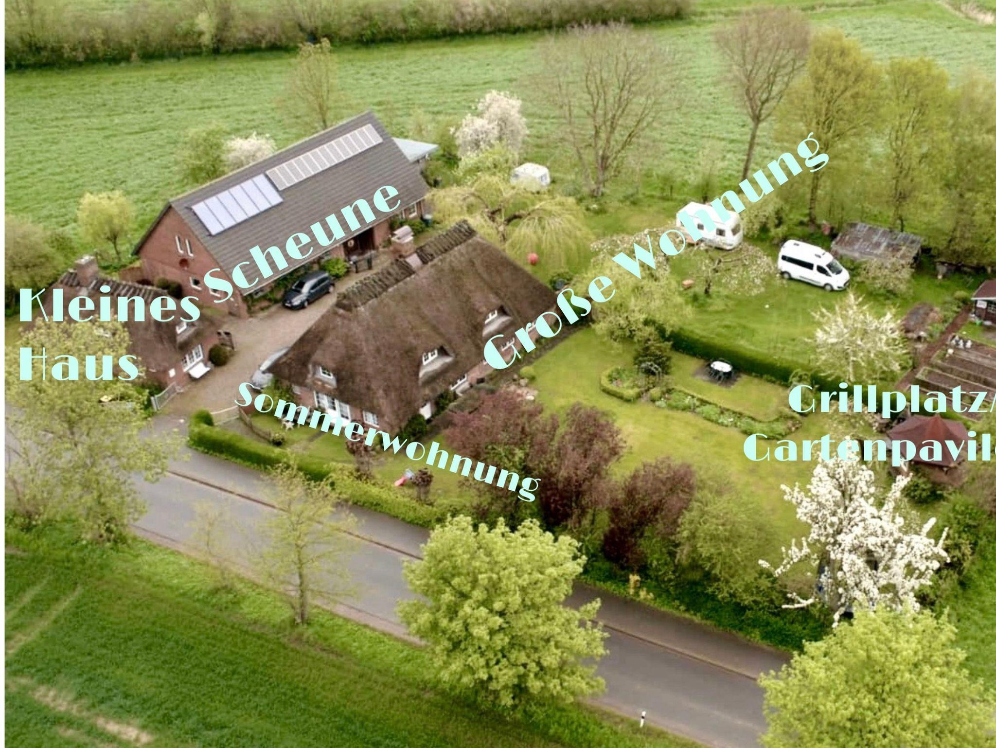 Auf dem Grundstück befindet sich ein weiteres Reetdachhaus mit einer Ferienwohnung und eine große Scheune.