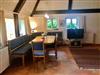 Das Haus ist aufgeteilt in eine große Wohnhalle mit Essecke und Kamin. Vom großen Esstisch aus blicken Sie auf weite Felder, über die das eine oder andere Reh zieht.