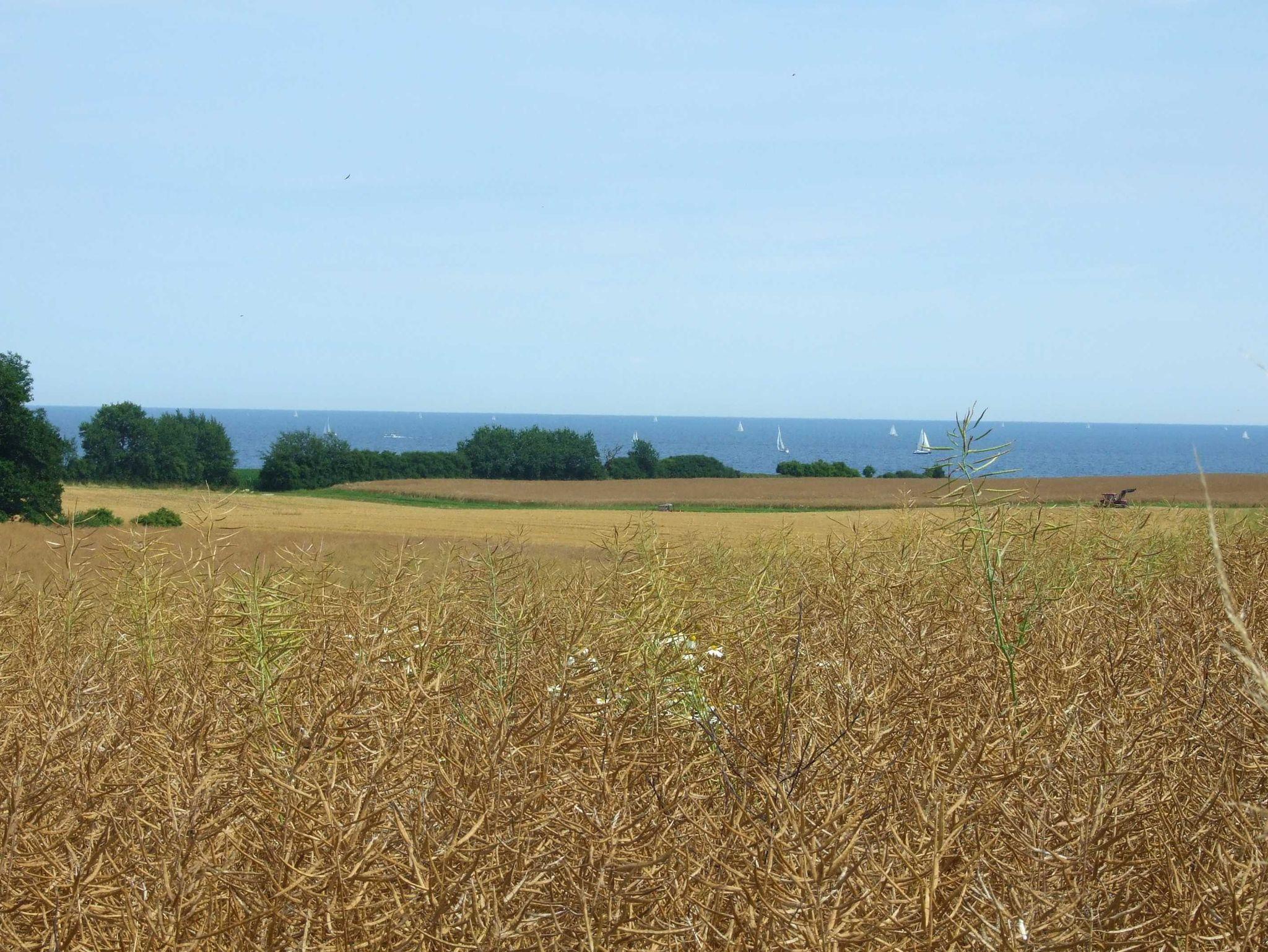 Auf einem kleinen Privatweg fahren Sie vorbei am größten Bauern des Dorfes mit seiner modernen großen Offenstallanlage für Milchkühe (mit Milchtankstelle!) und seinem beeindruckenden Fuhrpark. Am Ende des etwa 500m langen Weges erreichen Sie die eigentliche Idylle, das kleine Strohdachhäuschen, in Alleinlage, und was somit ideal für Gäste ist, die Ruhe und Erholung suchen. Das Haus ist letztendlich umgeben von Wiesen und Feldern, der ca. 2000m² große, nicht umzäunte Garten hat viel Rasenfläche und einen alten Baumbestand.