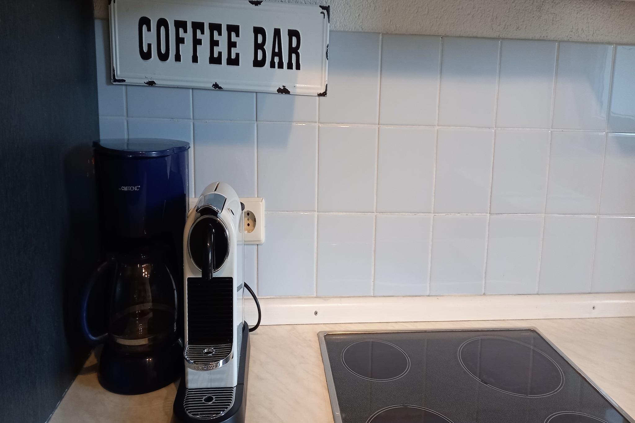 Stueetage: (Indgang , Køkken(brødrister, komfur(Komfur med fire kogeplader, glaskeramisk, elektrisk), kaffemaskine(kopper, kaffetragt), ovn, køleskab(+ fryser)), stue / spisestue(Fjernsyn(fladskærm, parabol), spisebord(4 personer), stereoanlæg), soveværelse(dobbeltseng), Børneværelse(køjeseng), badeværelse(bruser, håndvask, toilet)) tremmeseng, varme(central), terrasse(privat, overdækket), have(deles med andre gæster, delvist indhegnet, 60 m2), cykelopbevaring, havemøbler, grill(på anmodning), parkering, liggestole, Parasol, legeredskaber, bordfodbold, barnestol, strygejern, Ladestation til el-biler