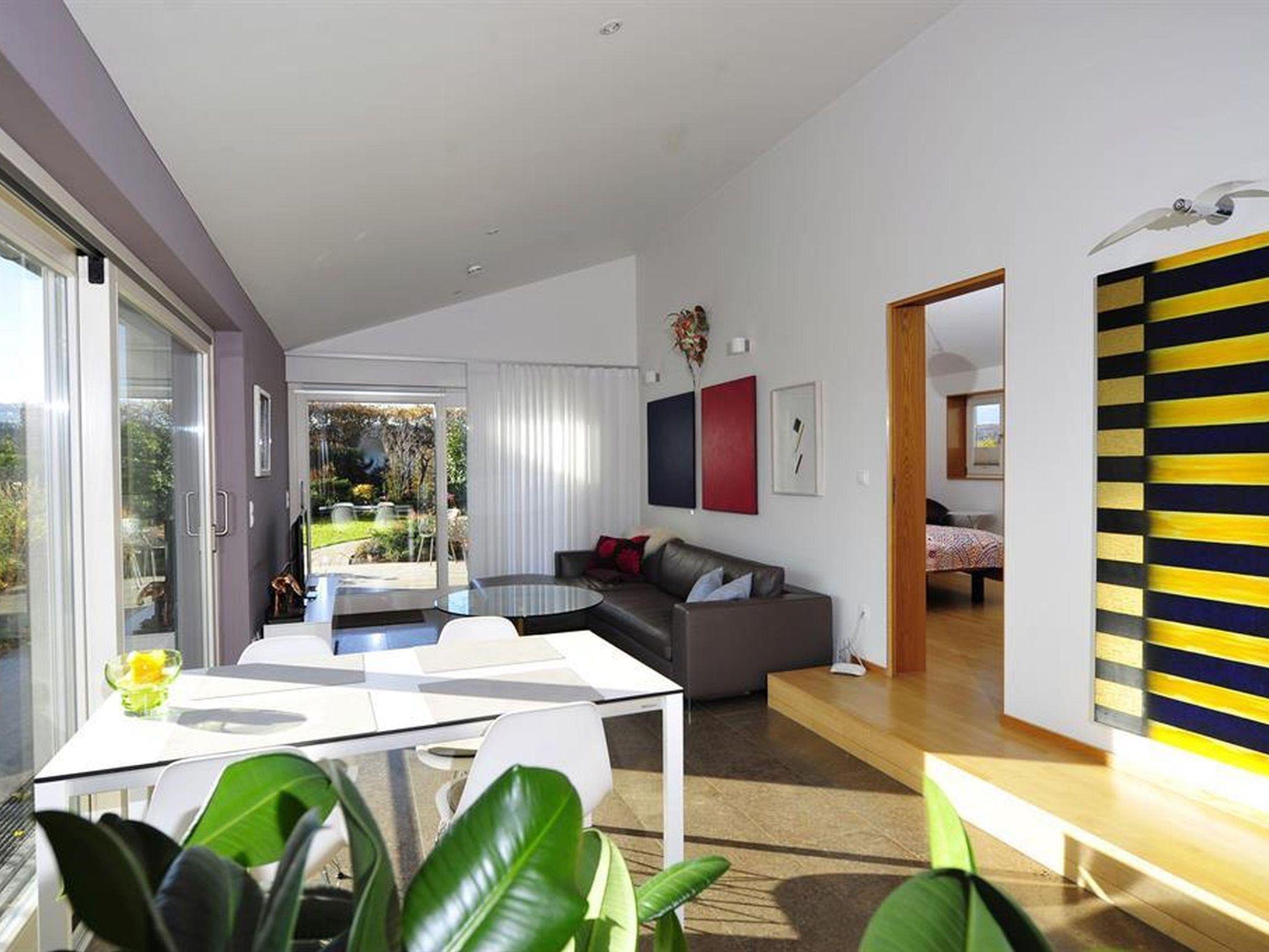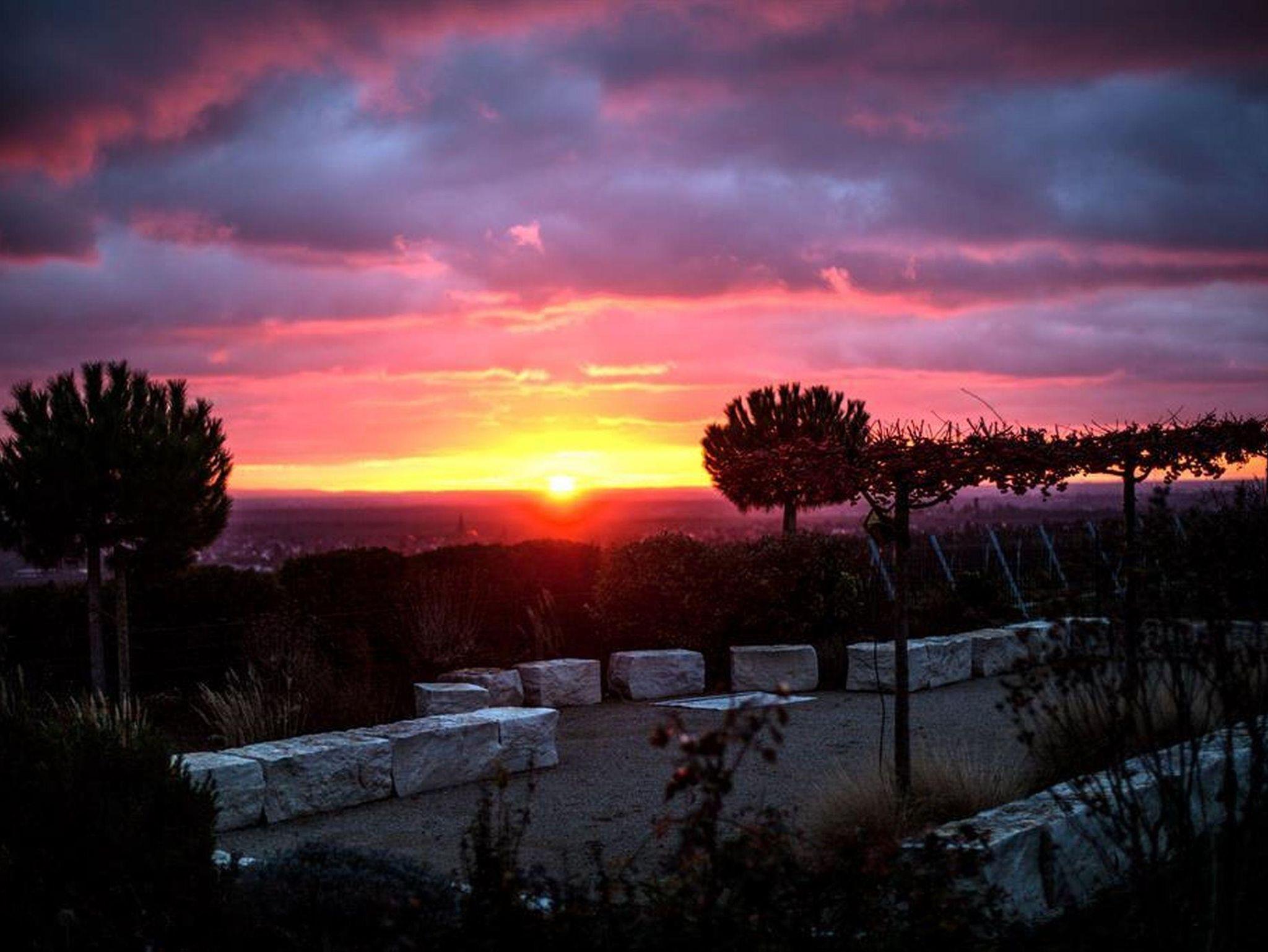 Unsere ****Wohnung Gewürztraminer (klassifiziert für 4 Personen) im Obergeschoss ist über eine Treppe zu erreichen und verfügt über zwei separate Schlafzimmer und zwei Bäder mit Du/WC, großzügigem Wohn-/Essbereich mit moderner Küchenzeile. Kleine Terrasse, Gartennutzung mit Gartenliegen. Panoramablick in die Weinberge.