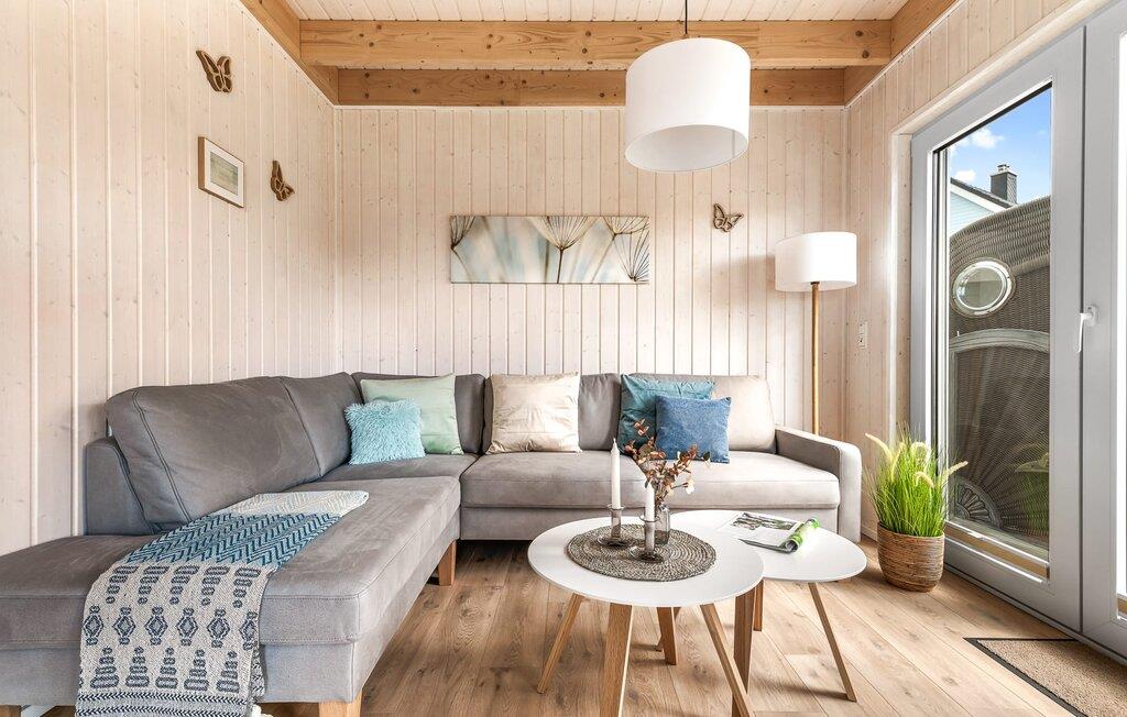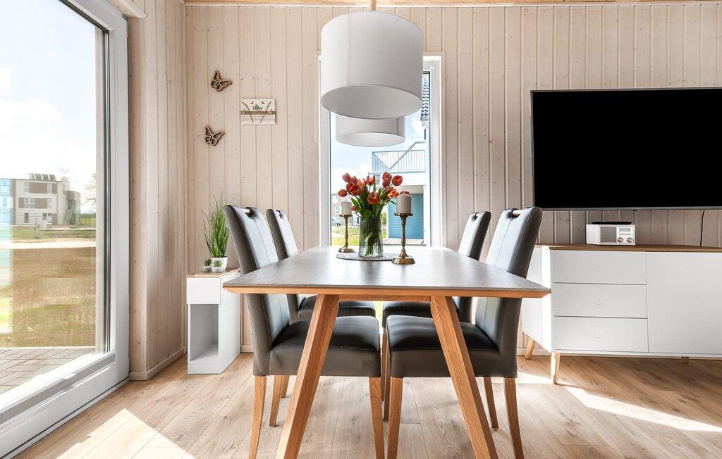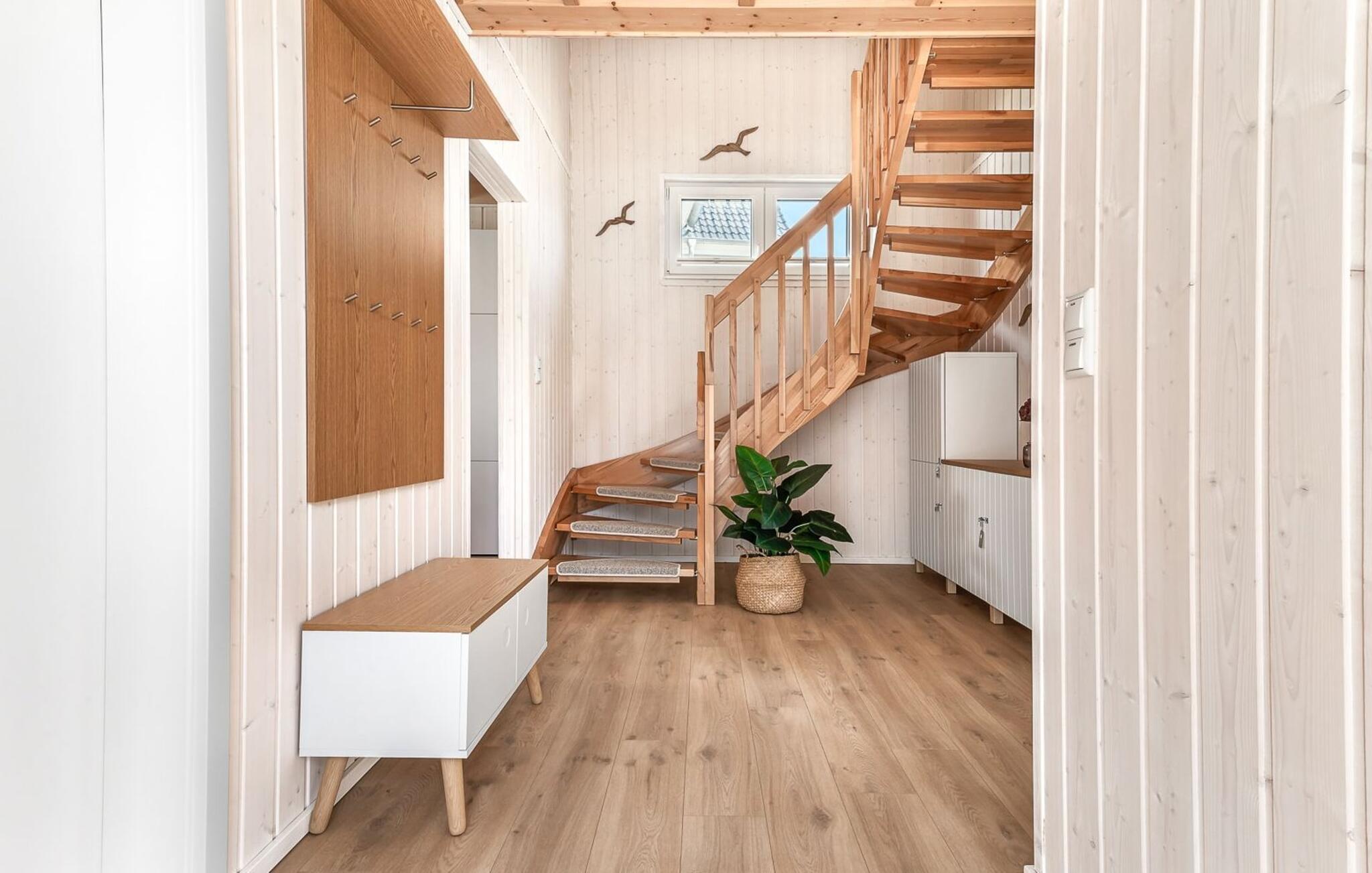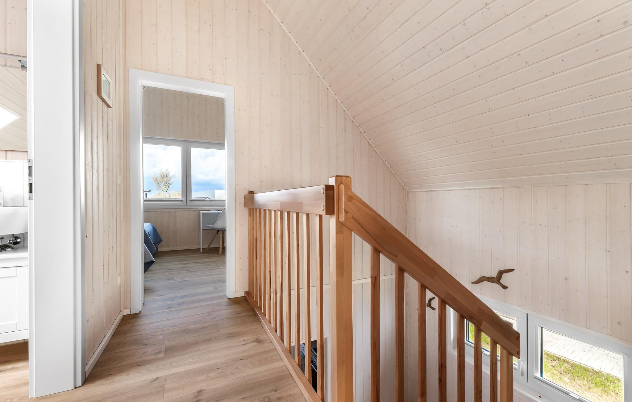 Det rummelige, fritliggende feriehus i to etager er indrettet med elegante møbler i nordisk stil og har en god rumdeling samt masser af komfort. Sandstranden Weidefelder med kiosk, restaurant og strandstole er inden for gåafstand, og den travle havnepromenade i feriestedet Østersøen er et fantastisk sted at slentre og beundre havnebiografen.