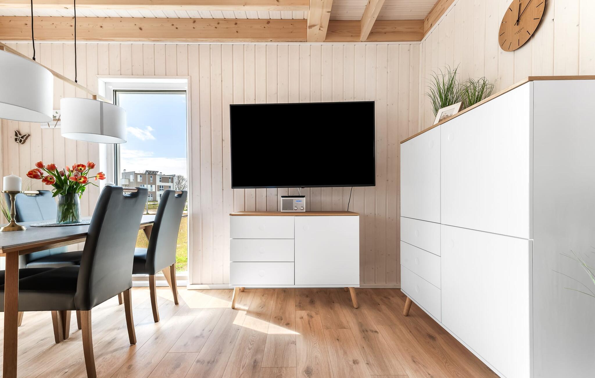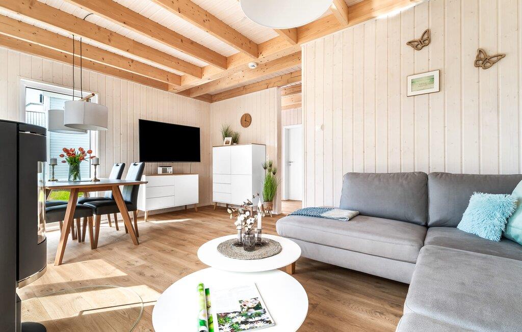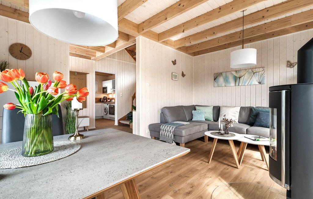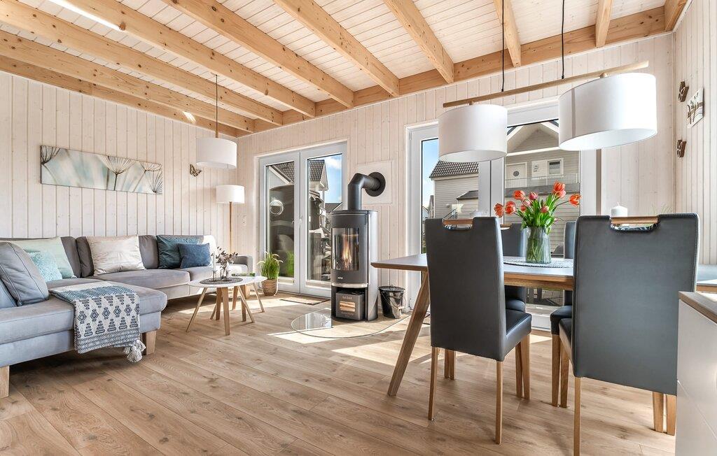 Det rummelige, fritliggende feriehus i to etager er indrettet med elegante møbler i nordisk stil og har en god rumdeling samt masser af komfort. Sandstranden Weidefelder med kiosk, restaurant og strandstole er inden for gåafstand, og den travle havnepromenade i feriestedet Østersøen er et fantastisk sted at slentre og beundre havnebiografen.