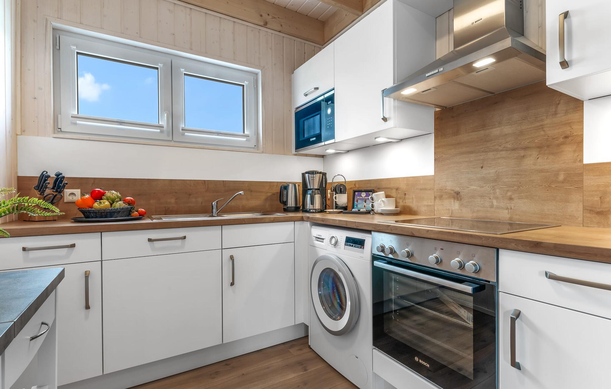 Når I træder ind i sommerhuset, begynder feriefølelsen fra første øjeblik. Den åbne planløsning og spiseplads i stueetagen er feriehusets centrum. Uanset om det er til fælles måltider eller sociale spilleaftener, samles hele familien her for at nyde ferien sammen. Køkkenet er også perfekt udstyret og vil få amatørkokkenes hjerter til at slå hurtigere. Der er også en Nespresso-maskine, så I kan lave jer en god kop morgenkaffe.