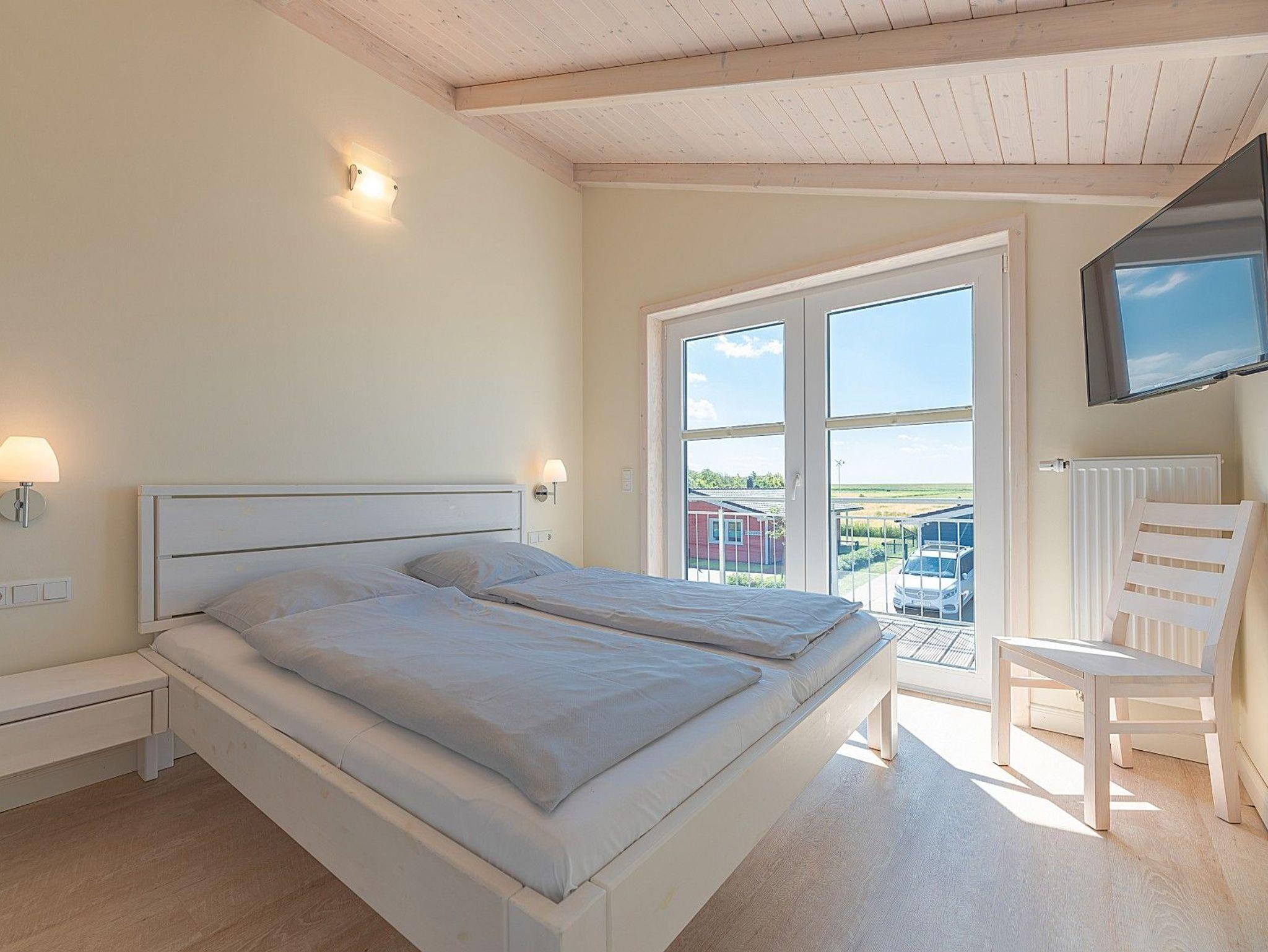 Im Obergeschoss erwarten Sie zwei weitere Schlafzimmer und ein großzügiges Wellnessbad mit Sauna und XXL-Badewanne für zwei Personen. Vom Balkon lässt sich die frische Nordseeluft genießen, während die teilweise überdachte Terrasse mit Grill zu entspannten Stunden im Freien einlädt.