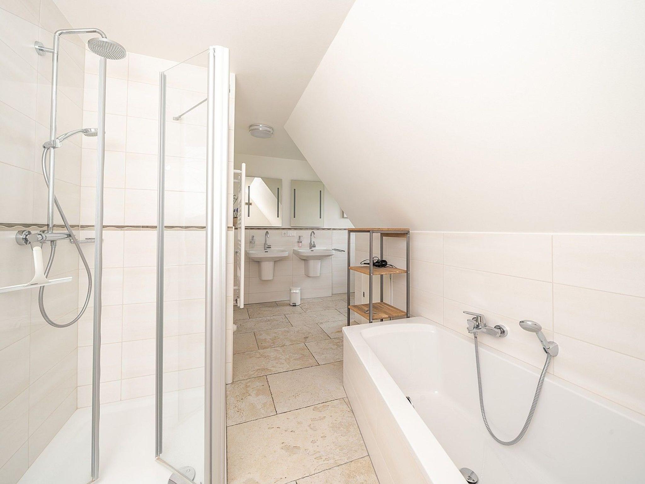 • 2 Badezimmer (1x OG mit Badewanne und Sauna, 1x EG mit Dusche)