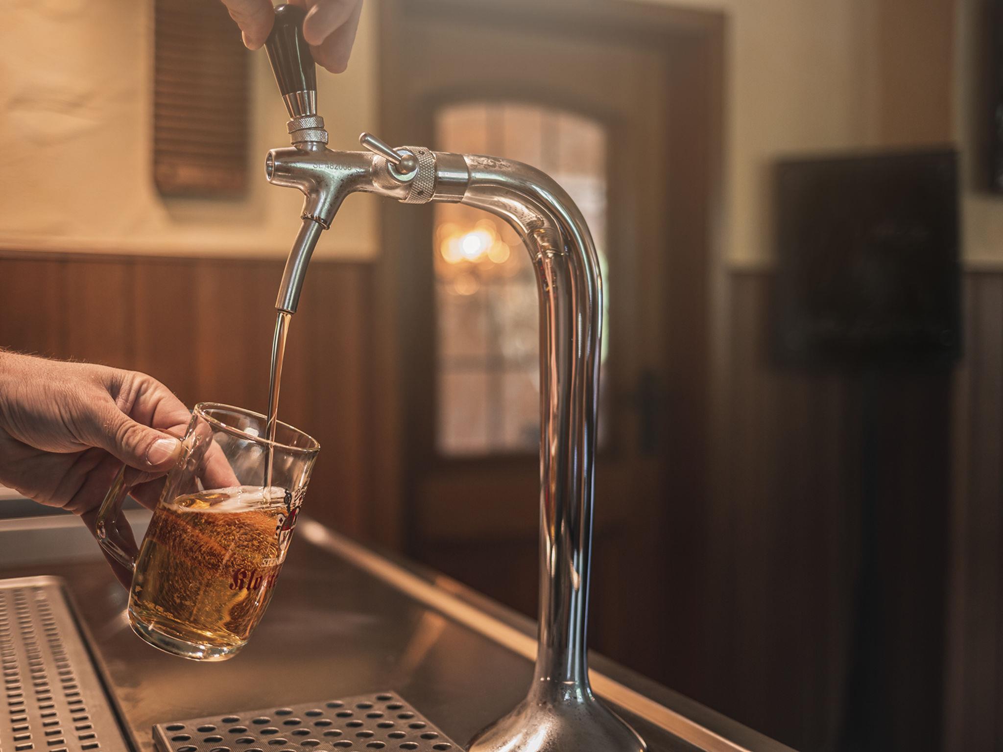 Directly adjacent is the equally cosy former beer bar with beer tap.