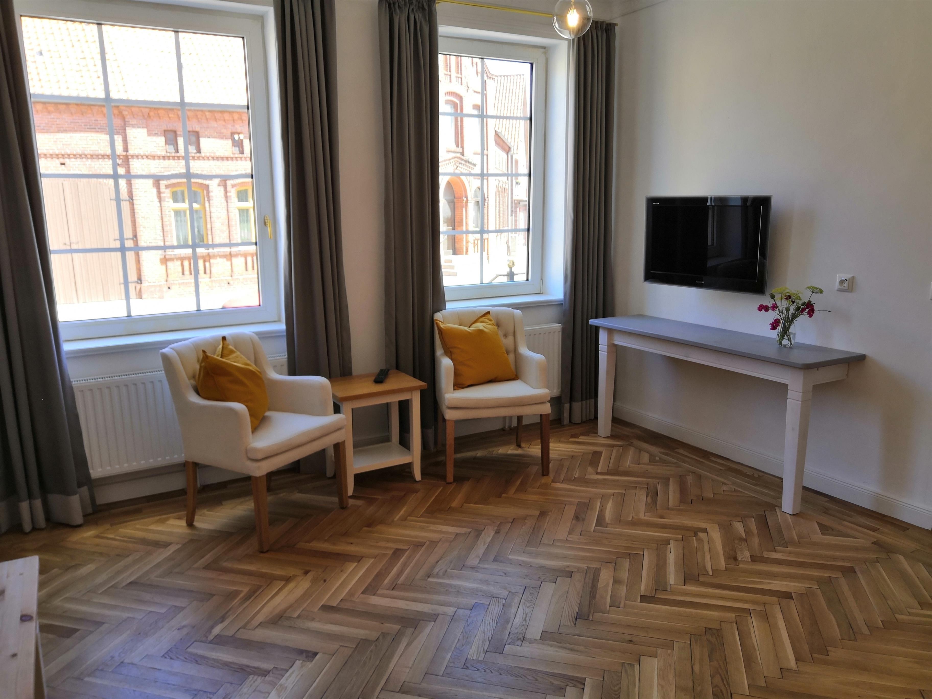 Das alte Rathaus wurde im Jahr 2020 saniert und verfügt über ein Apartment mit großem Doppelbett, eigener Küche und Bad. Es ist ein Denkmal geschütztes Gebäude und befindet sich im Ortsteil Dahlenburg, ca. 6 km vom Ferienhof Trapp Ellringen entfernt.