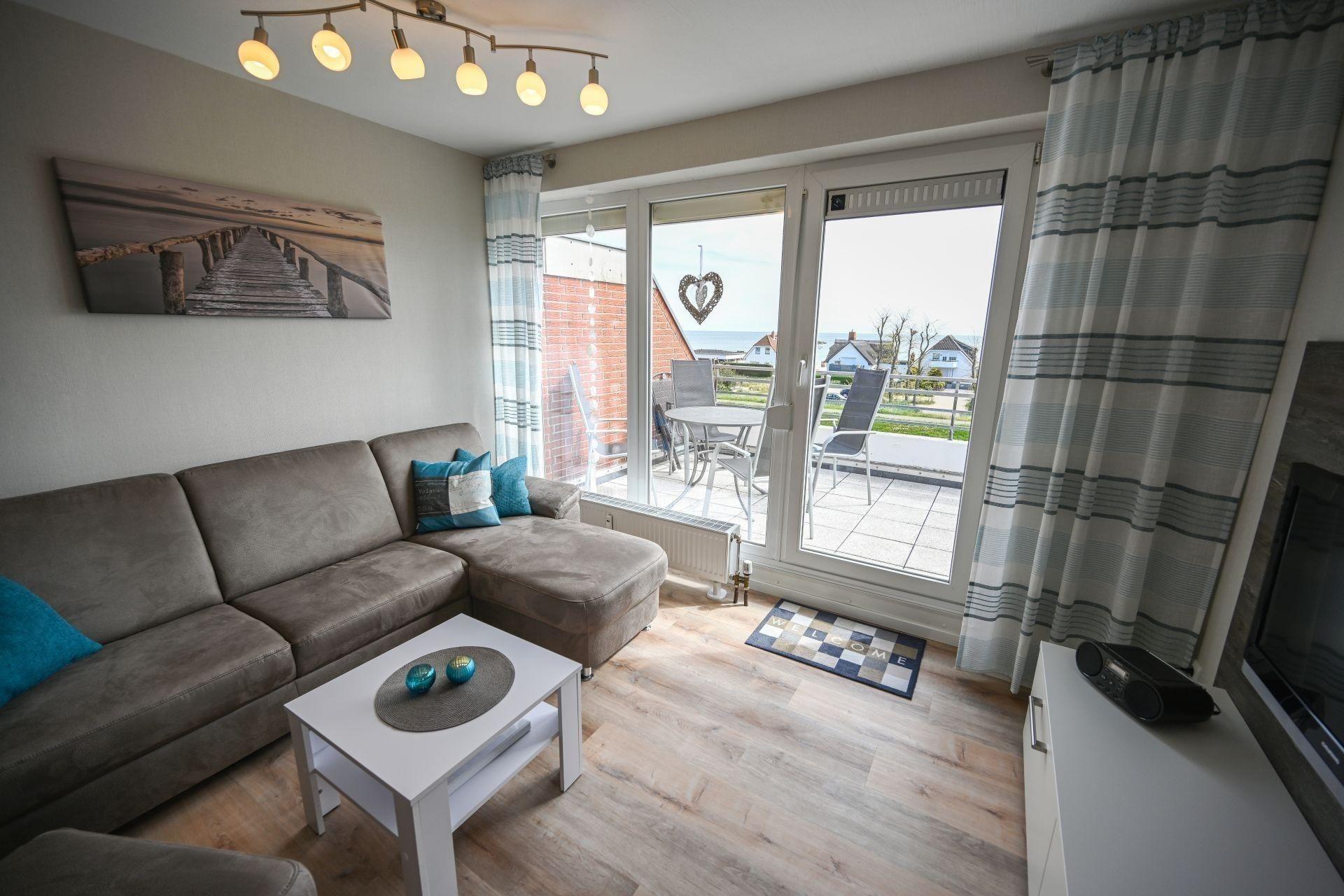 Ferienwohnung im 3. OG mit Meerblick vom Balkon! Ein Schlafzimmer, Wohnzimmer mit Schlafcouch helles Tageslichtduschbad und Küchenzeile. Waschmaschine und Trockner im Haus gegen Gebühr. Garagenstellplatz vorhanden. Ohne Fahrstuhl.