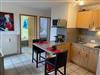 Die offene Küche als zentraler Ort mit Esstheke und zwei Barhockern ist bestens ausgestattet. Angrenzend befindet sich der Essbereich mit Tisch und 4 Stühlen.