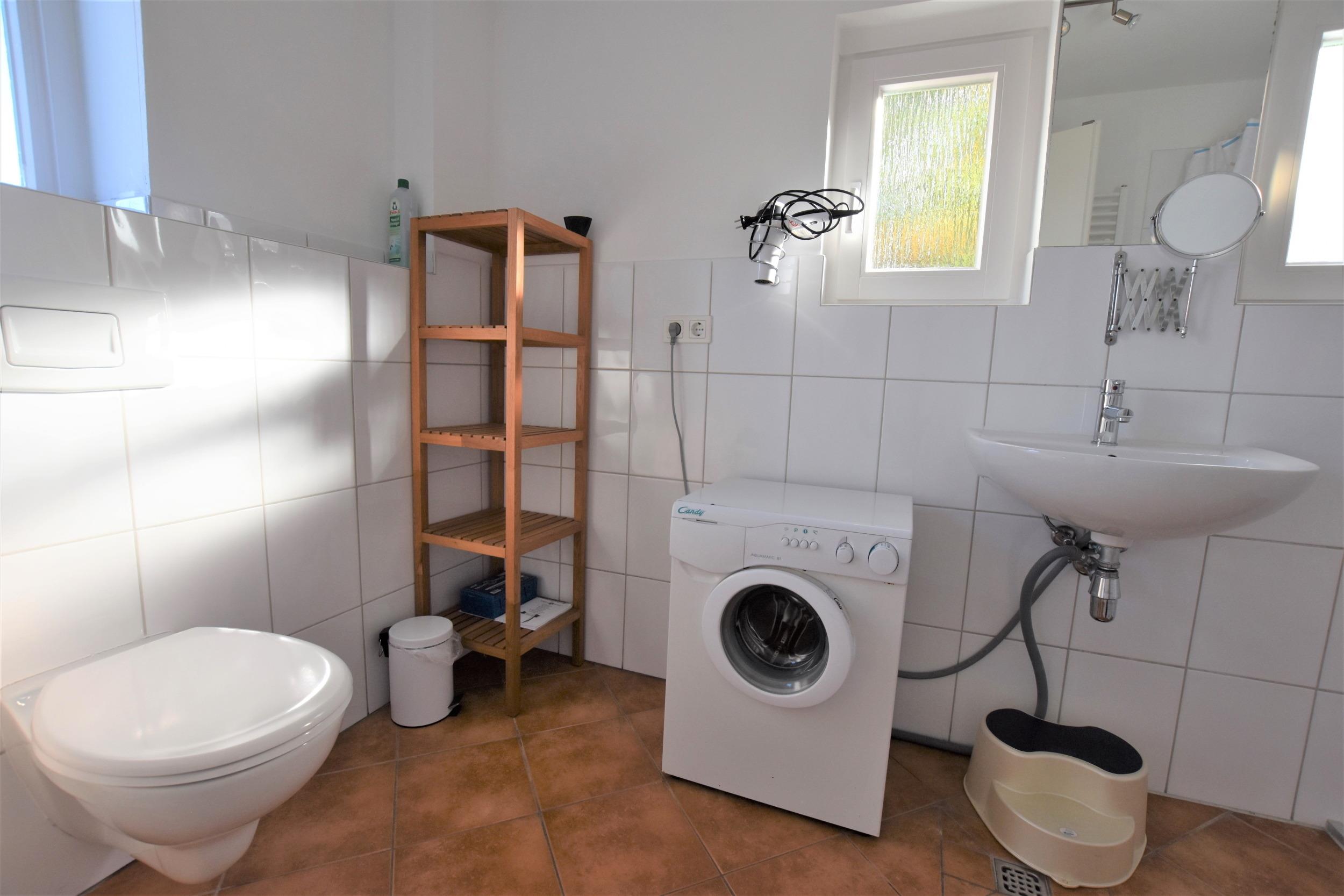 Aufteilung Erdgeschoss: Flur, Tageslichtduschbad mit Waschmaschine, separate Küche mit Geschirrspüler und vielem mehr. Wohn-/Esszimmer mit direktem Zugang zur bestuhlten Ost-Südterrasse, welches das Essen bei gutem Wetter ermöglicht. Die Abendstunden lassen sich im großen Garten gemütlich ausklingen.
