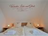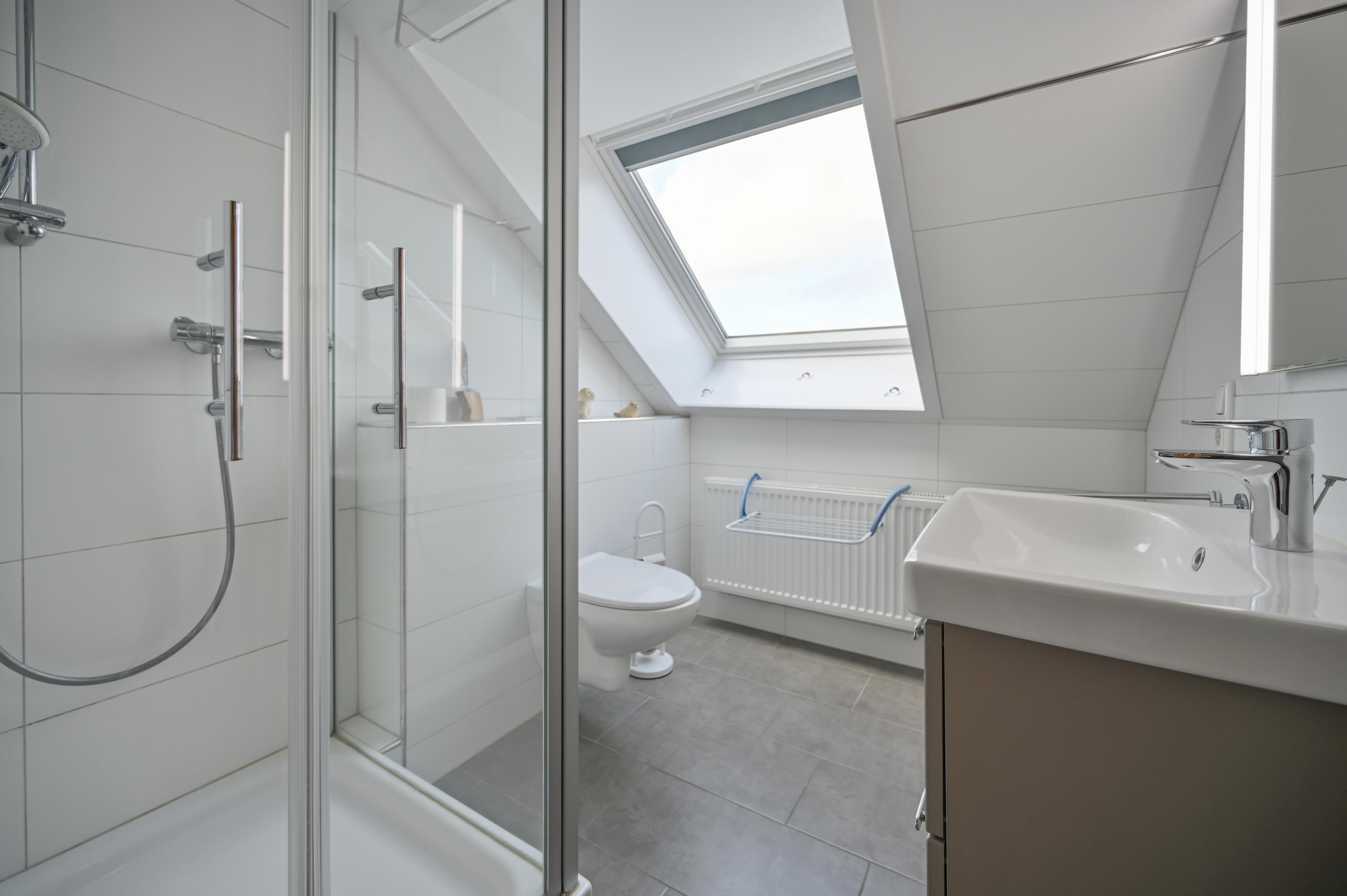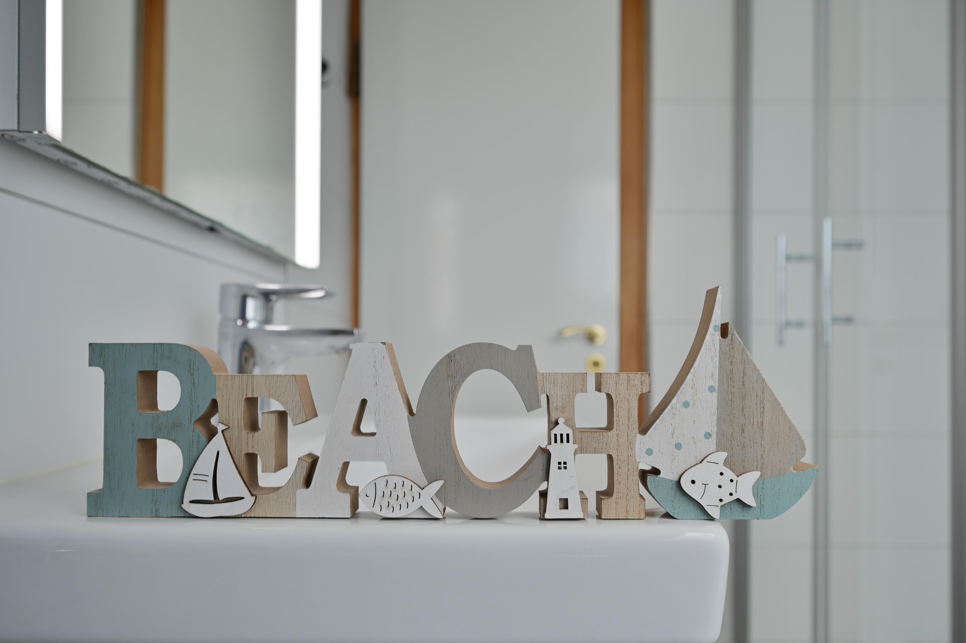 Das große Schlafzimmer besteht aus einem Doppelbett mit zwei Nachttischen und Kleiderschrank, dass zweite Schlafzimmer verfügt über zwei Einzelbetten mit Kleiderschrank. Sollte ein Kleinkind mitreisen, steht ein Kinderreisebett und ein Hochstuhl bereit. Das Badezimmer verfügt über ein Außenfenster zum Lüften und besteht aus einer Dusche mit Glastüren und einem WC.