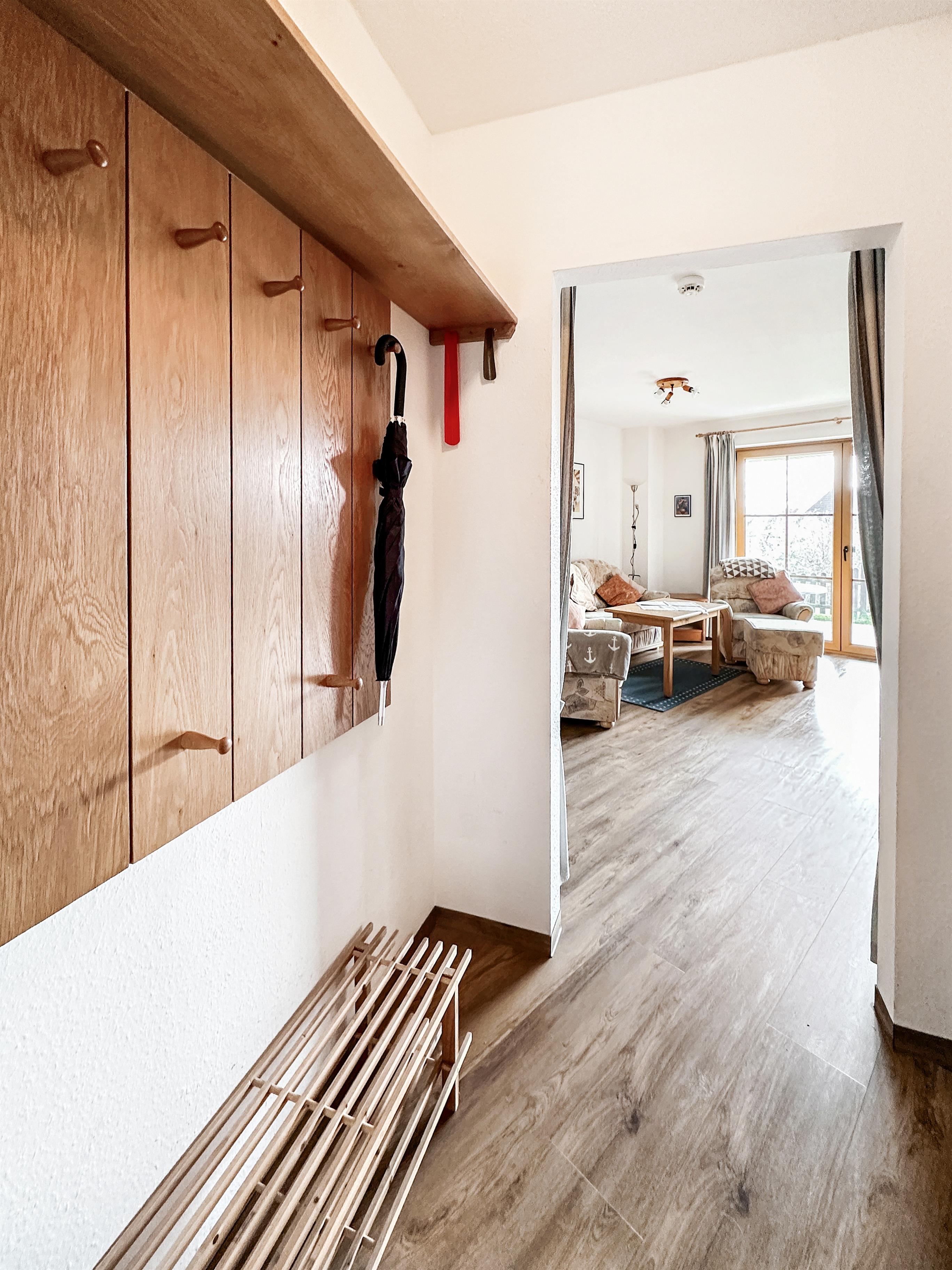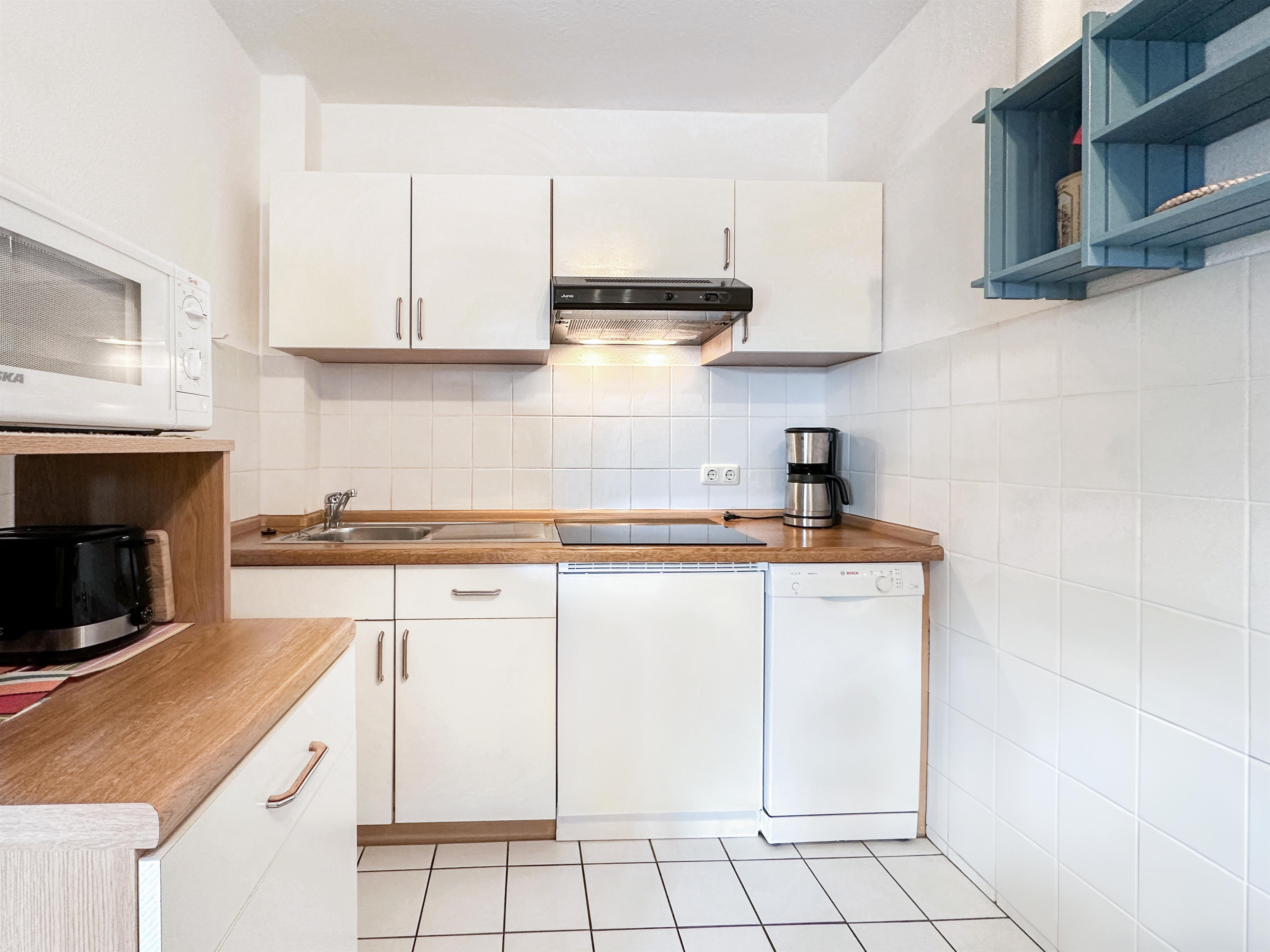 Hier erwartet Sie auf ca. 45m² eine schicke Ferienwohnung für bis zu 4 Personen mit W-LAN, einem Wohn-/Schlafzimmer mit offener Küche, einem Schlafzimmer mit Doppelbett und einem Etagenbett. Terrasse ist nach Süd/Ost ausgerichtet.