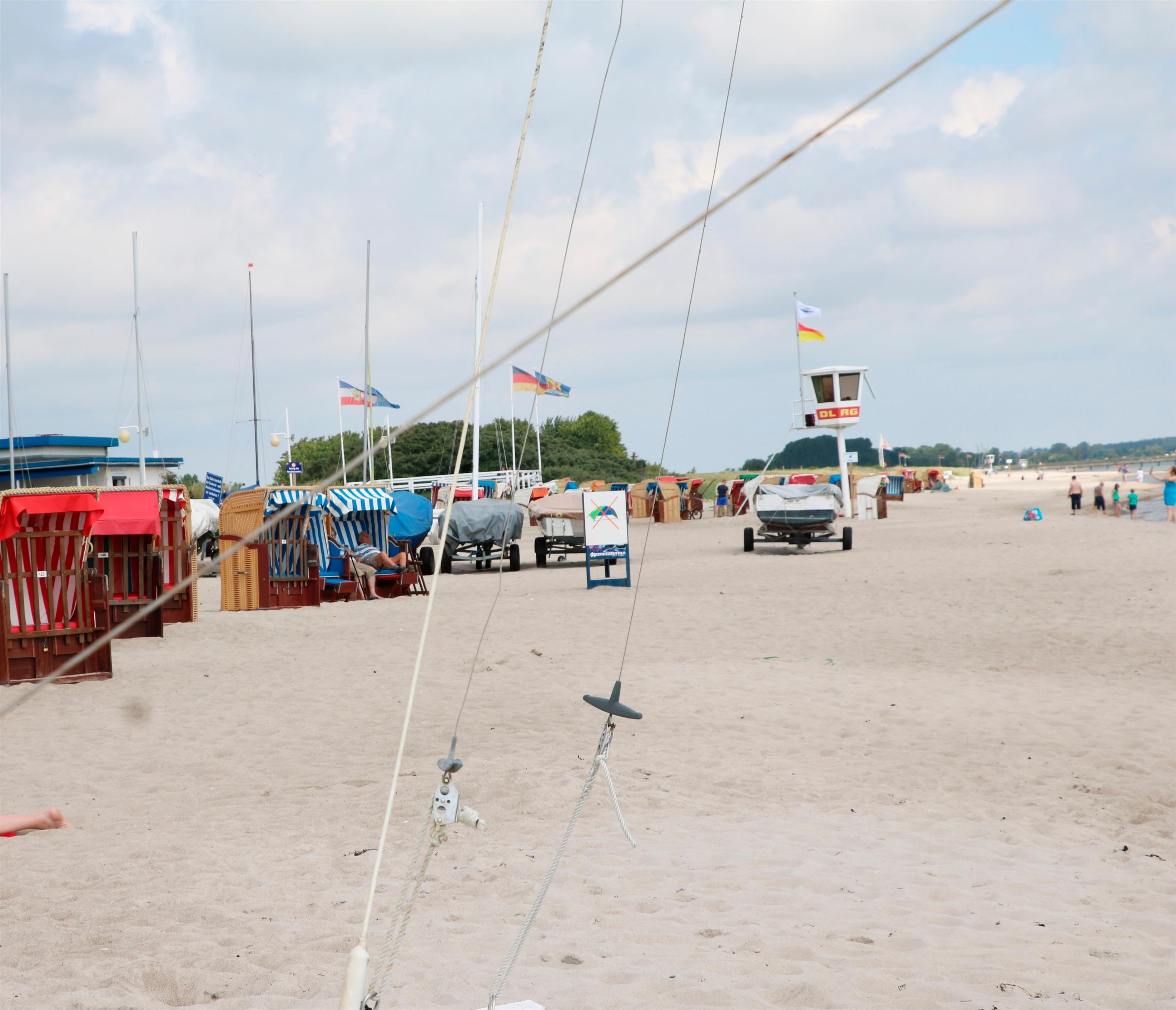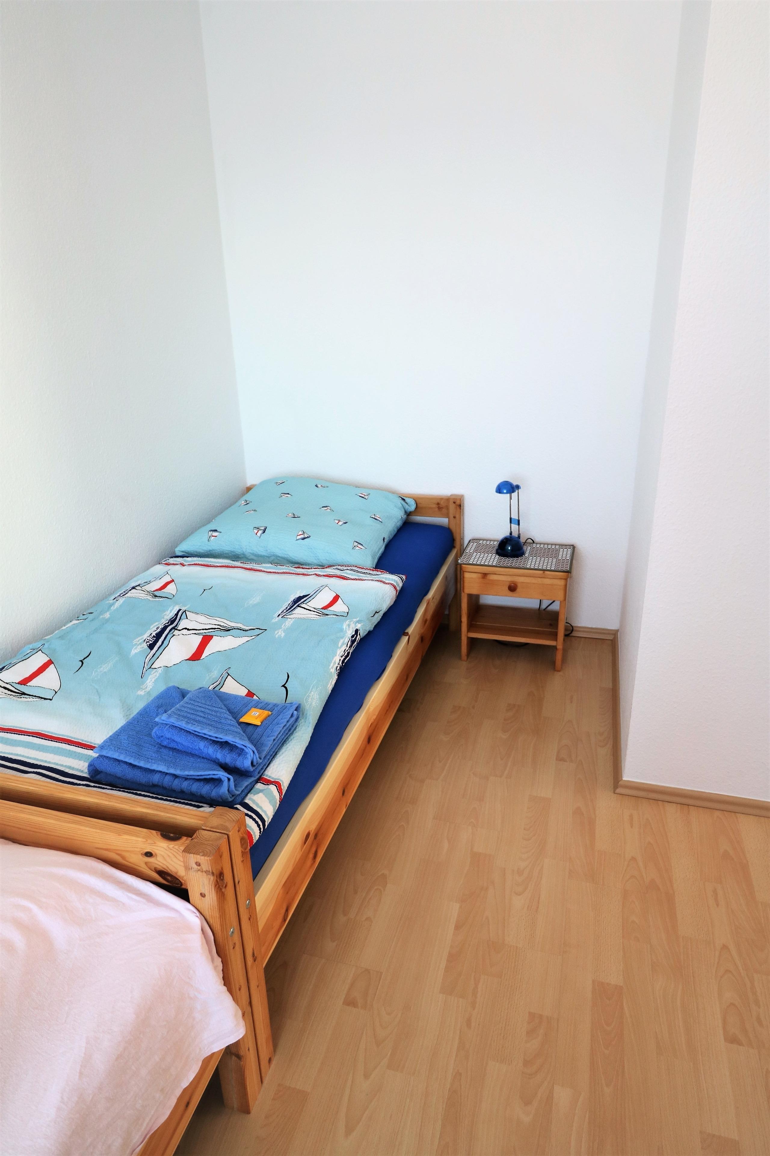 Unsere strandnahe Ferienwohnung 2 liegt im 1. Stock bietet Platz für bis zu 4 Personen. Sie verfügt dabei über 2 Schlafräume, einen Wohnraum mit integrierter neuer Küche in Holzoptik, einem Eßtisch sowie ein Badezimmer mit Dusche und WC.