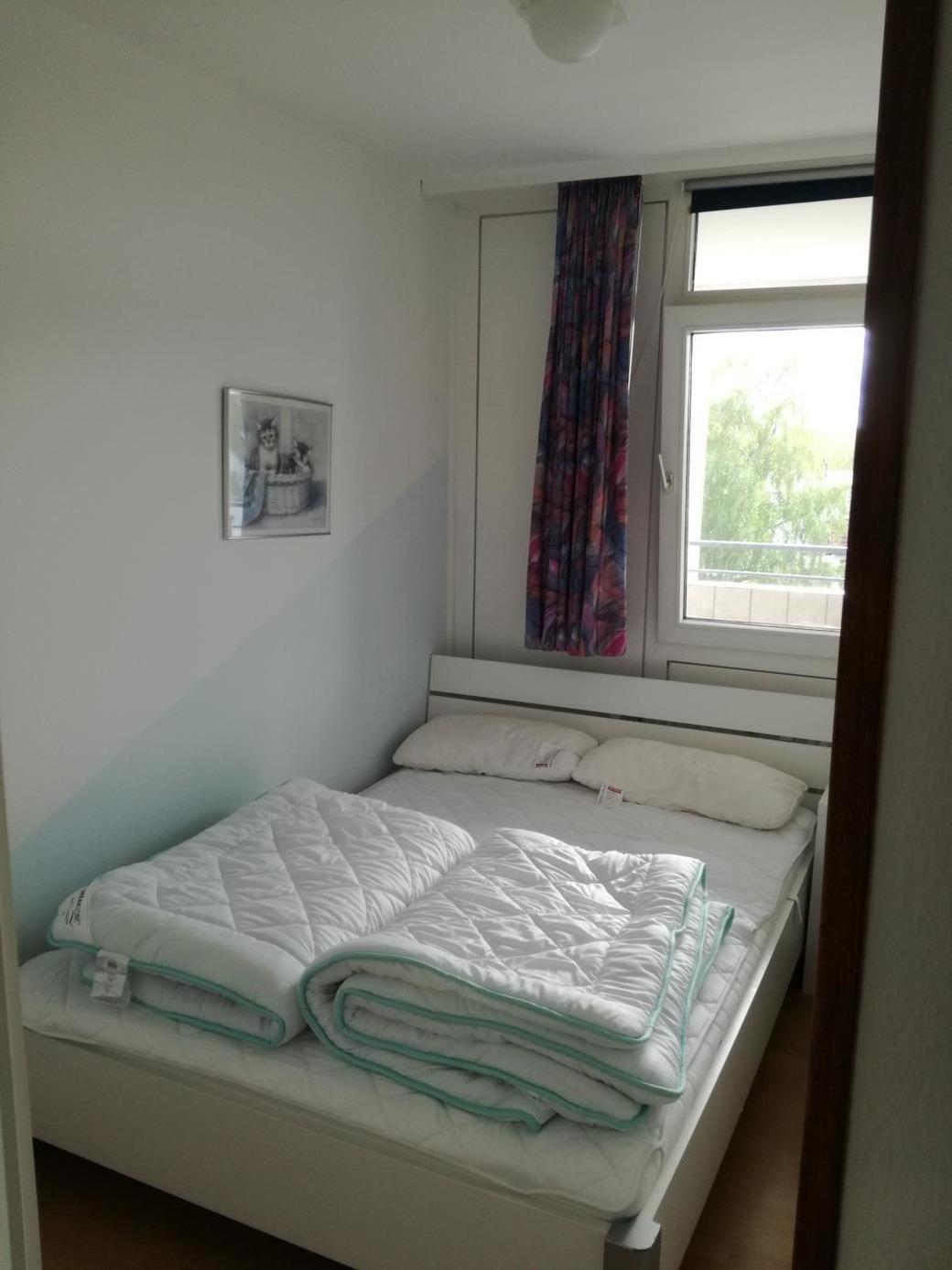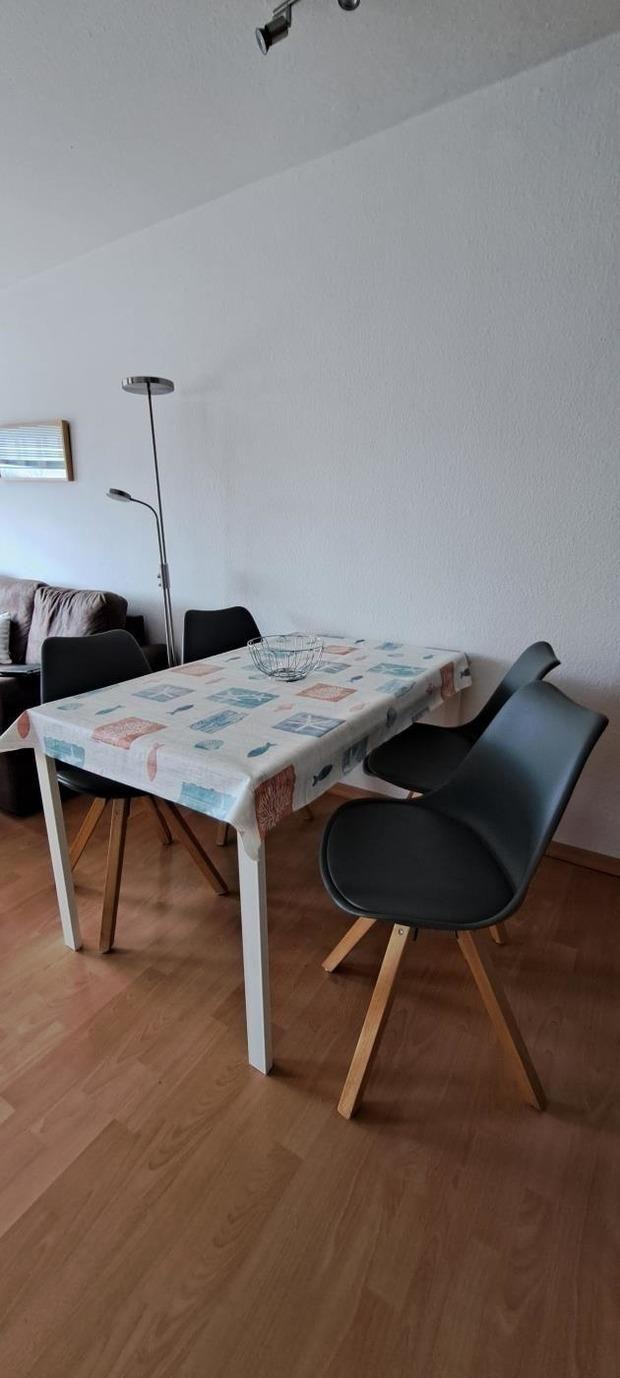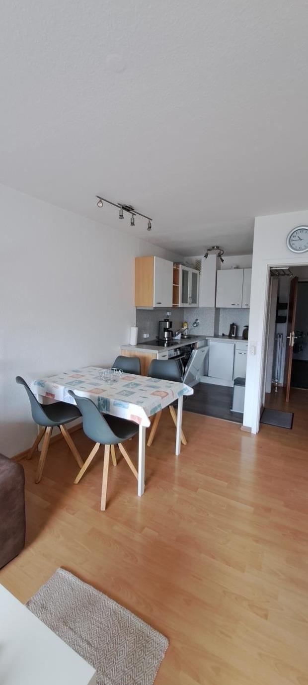 Mit dem Fahrstuhl kommen Sie bequem in die 3. Etage. Hier ist die Ferienwohnung 24. Sie hat einen Wohnschlafraum mit Schlafsofa, Schlafzimmer mit 1 Bett (140x200cm), Küche mit Geschirrspüler und Backofen, Essecke für 4 Personen, Farb-TV mit USB-Anschluss, Dusche, WC.