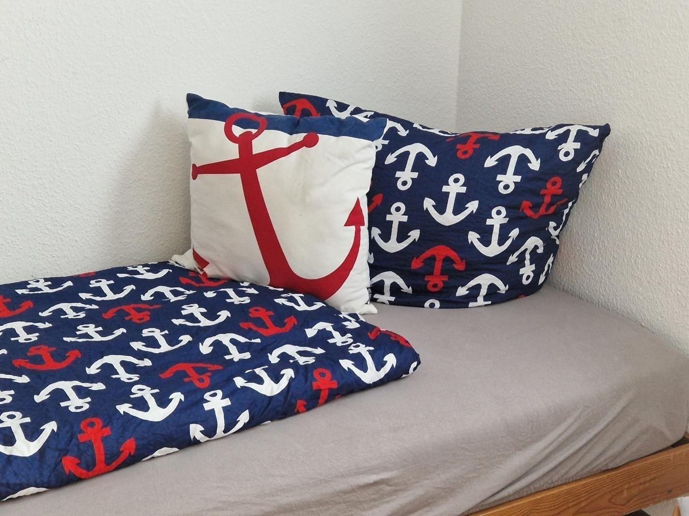 Die Wohnung besteht aus drei Zimmern. Die Wohnung verfügt über zwei Schlafzimmer. Das eine ist mit einem Doppelbett ausgestattet und das Andere mit zwei Einzelzimmern. Die Küche ist mit allem ausgestattet, was sie brauchen, damit sie auch im Urlaub ihre Kochkünste unter Beweis stellen können. Eine Waschmaschine und ein Trockner stehen all unseren Gästen zur Verfügung (5 Euro/Wasch- oder Trockengang). Die Anlage verfügt über W-Lan.