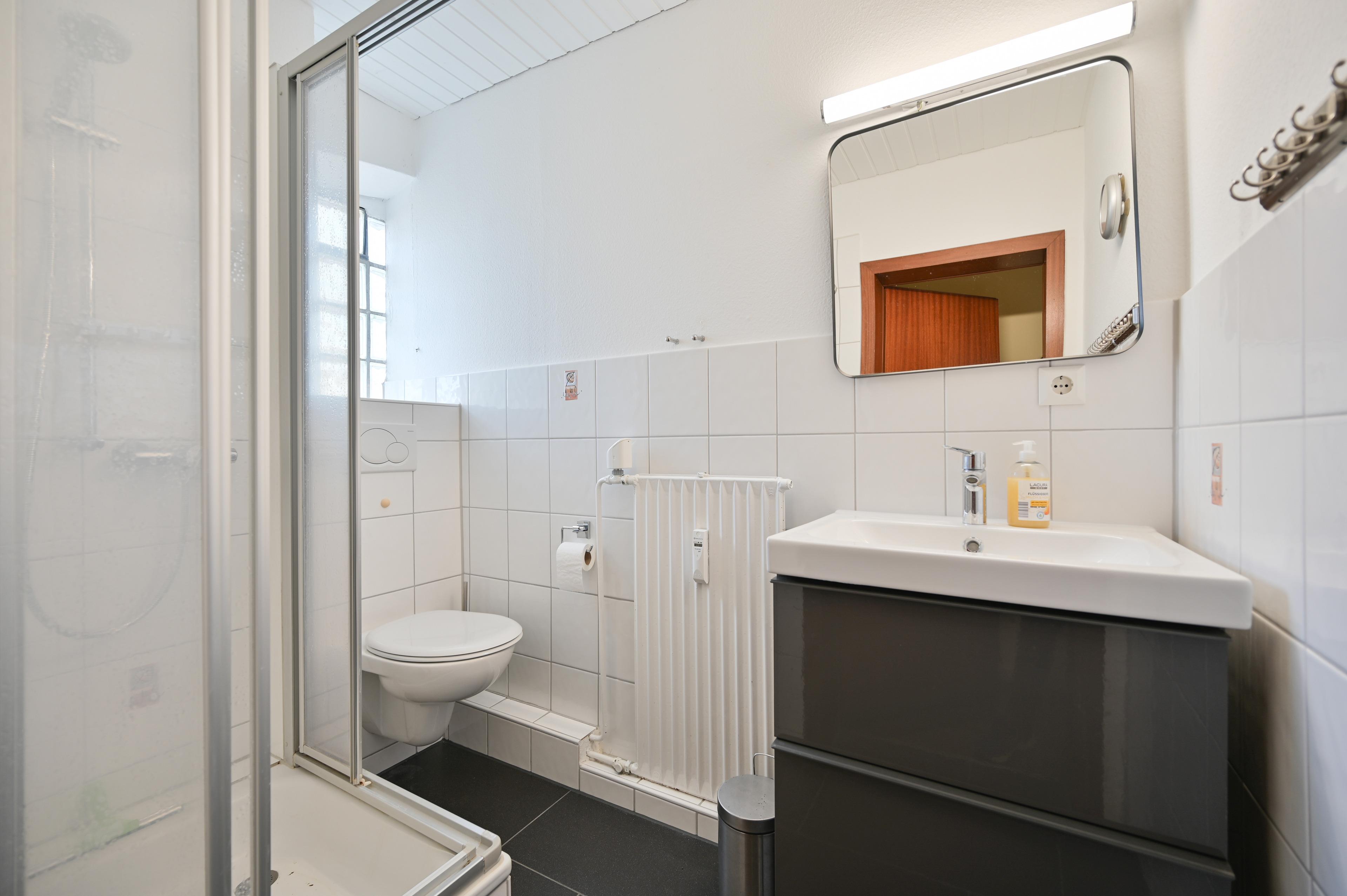 Sie betreten den große Wohn-, Schlaf- und Essraum. Dort hat die Familie Platz zum kochen und essen. Das Schlafsofa bietet einen Schlafplatz für 2 Personen. Dann kommen Sie in das Schlafzimmer mit Doppelbett und Kleiderschrank. Dann geht es weiter über einen kleinen Flur in das Kinderzimmer mit Etagenbett. Und in das Badezimmer mit Dusche und WC.