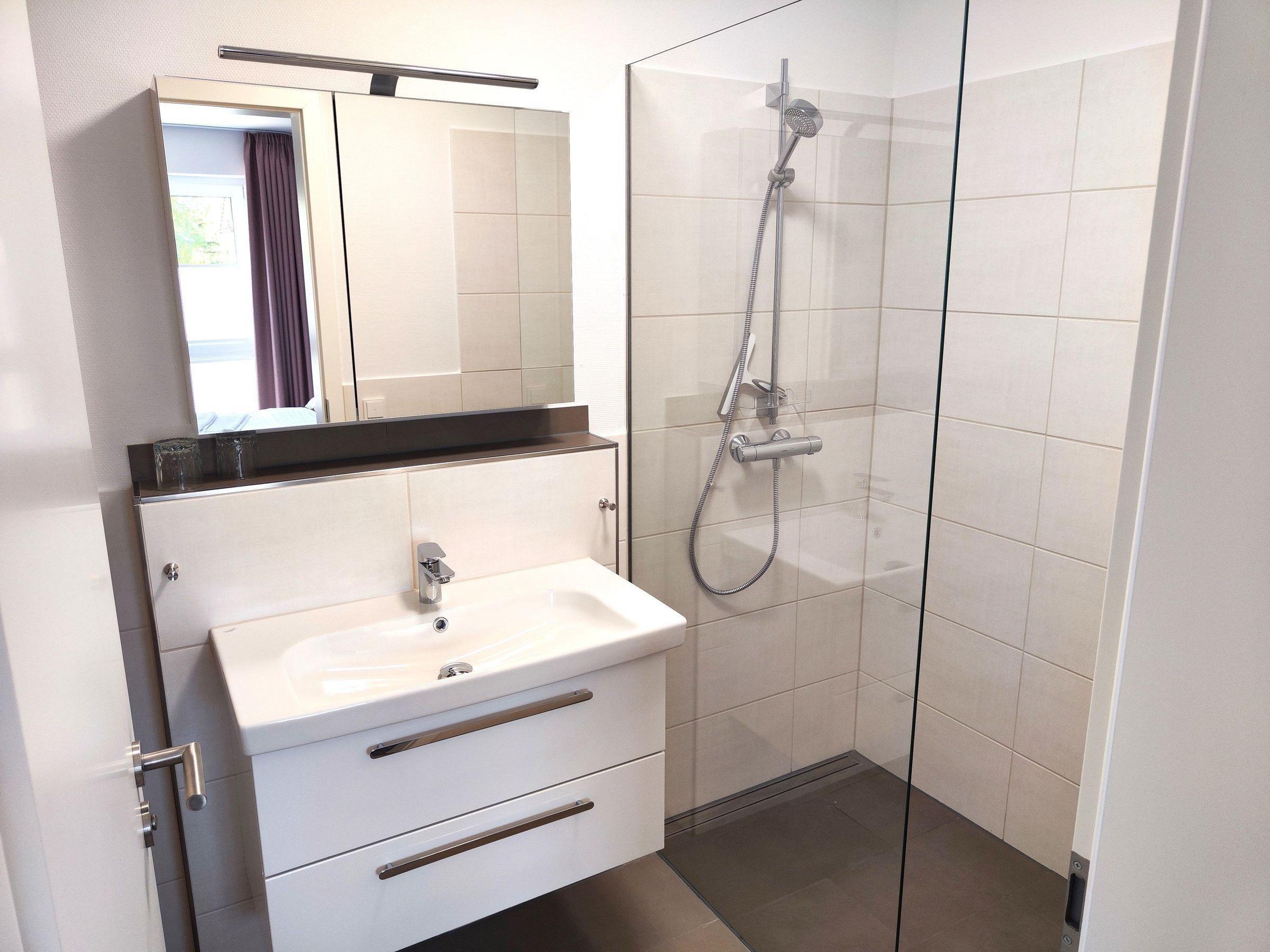 direkter Zugang zum dazu gehörendem Badezimmer mit Dusche und WC