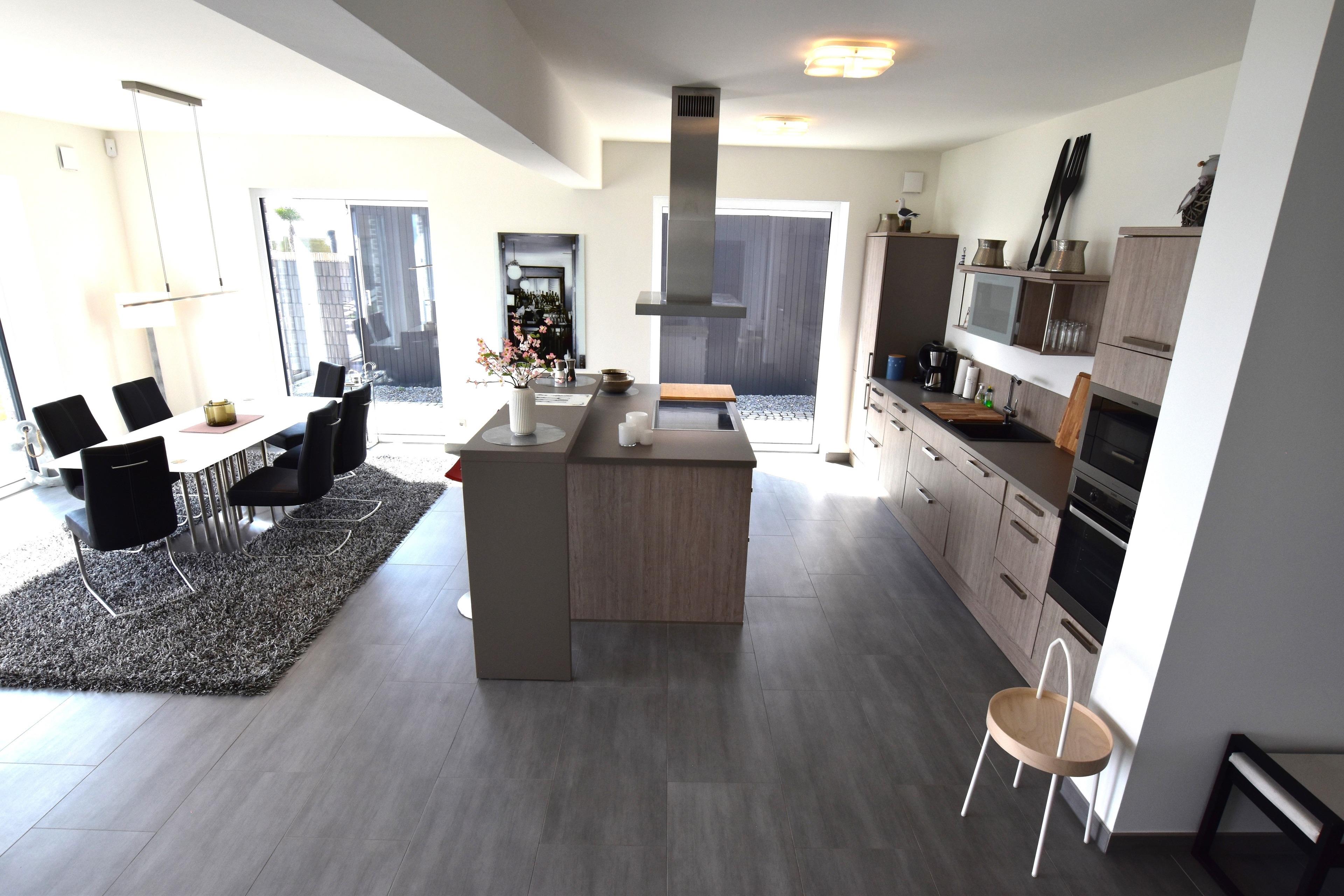 Im Erdgeschoss erwartet Sie ein großzügiger, lichtdurchfluteter Küchen-, Ess- und Wohnbereich mit hohen Decken und bodentiefen Fenstern, die einen direkten Blick auf die Ostsee ermöglichen. Hier können Sie entspannen und die Meeresbrise genießen. Zusätzlich stehen Ihnen ein Gäste-WC mit offener Dusche, ein Hausanschlussraum mit Waschmaschine und Trockner sowie eine Garderobe mit Einbauschrank zur Verfügung.